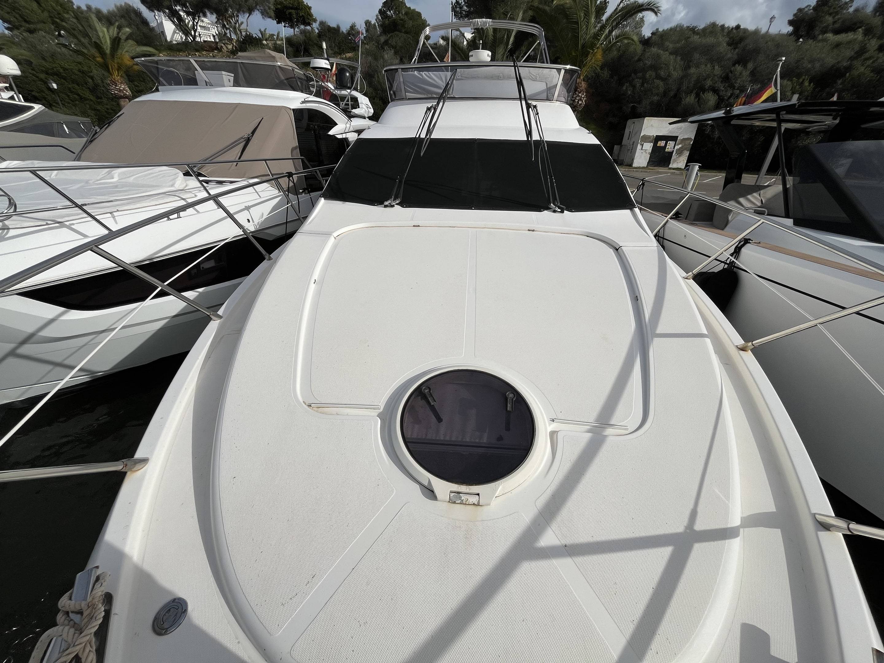 2009 Azimut 43 Flybridge in great condition fitted with Twin cummins 425hp diesel engines on shaft drive. Currently running with approx 520 engine hours. She has all the med spec options and a long list with some highlights including: Hydraulic passerelle / Teak laid bathing platform and cockpit / Custom sun shade to cockpit / Cockpit cantilever teak table / Fusion audio throughout / Upgraded ray marine navigation plotter / Raymarine radar / Raymarine autopilot / Bow and stern thrusters / Anchor chain counter / Trim tabs / Generator / Air conditioning / Saloon fitted with deep pile carpets / Television to saloon / Galley with hob, Microwave, sink and fridge / 2x guest cabins / 2x heads... and so much more. She is displayed in great condition and low engine hours, EU Tax Paid and ready to go. For more information or to arrange a viewing please contact Boats.Co today! (more pictures coming soon...)