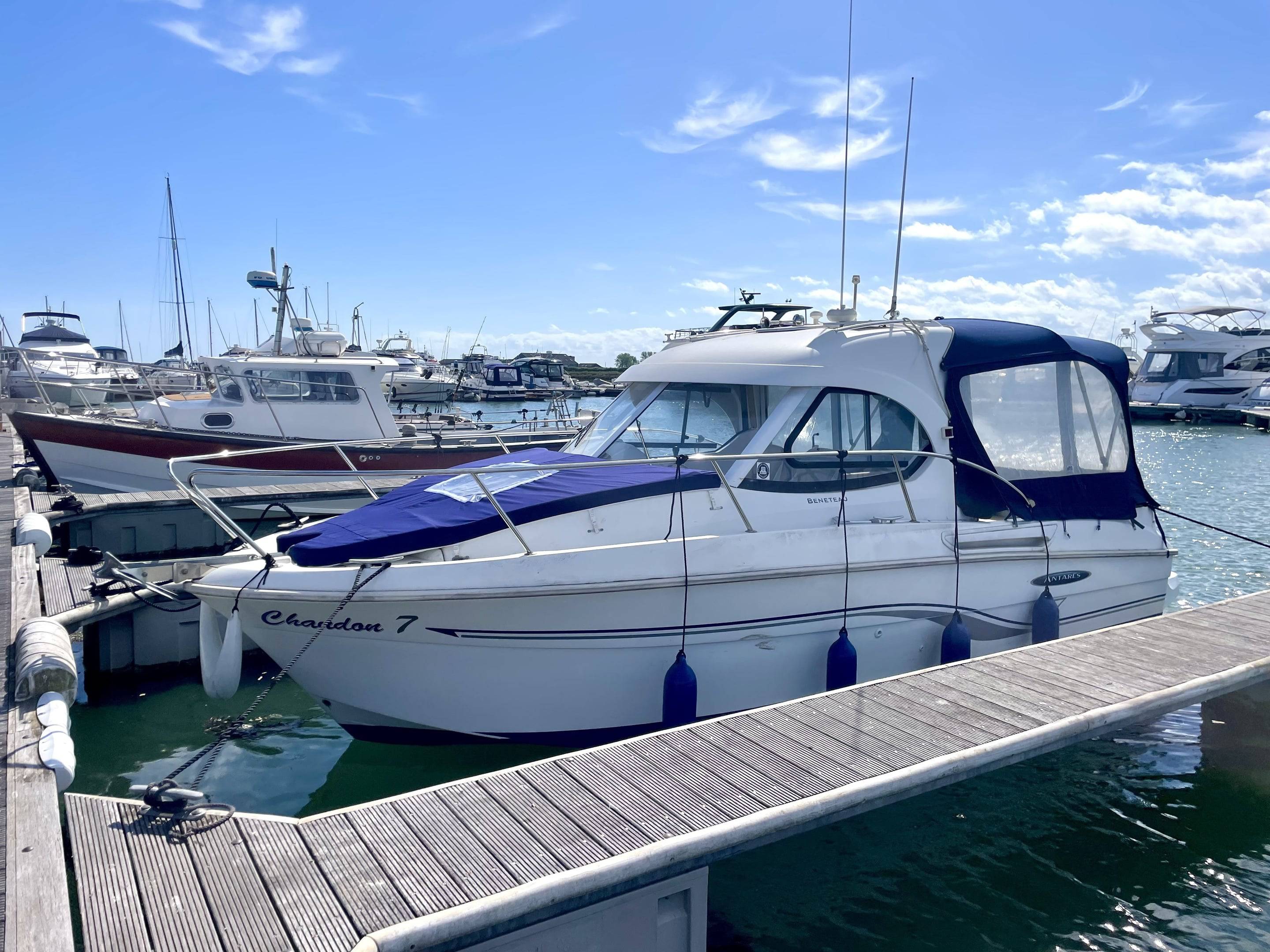 Boats.co.uk are delighted to present this 2007 Beneteau Antares 7 - a sought-after weekender and fishing boat, perfect for coastal cruising and relaxed days on the water. Powered by the more desirable Nanni 155hp inboard diesel engine with shaft drive & bow thruster, this vessel has been fully serviced and has logged only approximately 200 hours. Step inside and you’ll find a well-designed cabin featuring: Twin forward-facing helm seats // Compact galley area // Enclosed head Spacious V-berth seating area with upholstery, easily converting for overnight stays // Recent Upgrades Include: New Simrad Cruise 9 GPS/Chartplotter // New Simrad VHF DSC Radio // New Fusion Bluetooth stereo system. This Antares 7 is presented in great condition and is fully equipped, making her ready to step aboard and enjoy immediately. Whether you're looking for a dependable fishing platform or a comfortable weekend cruiser, this boat ticks all the boxes. Contact Boats.co.uk to arrange a viewing: 01702 258885 or email: sales@boats.co.uk