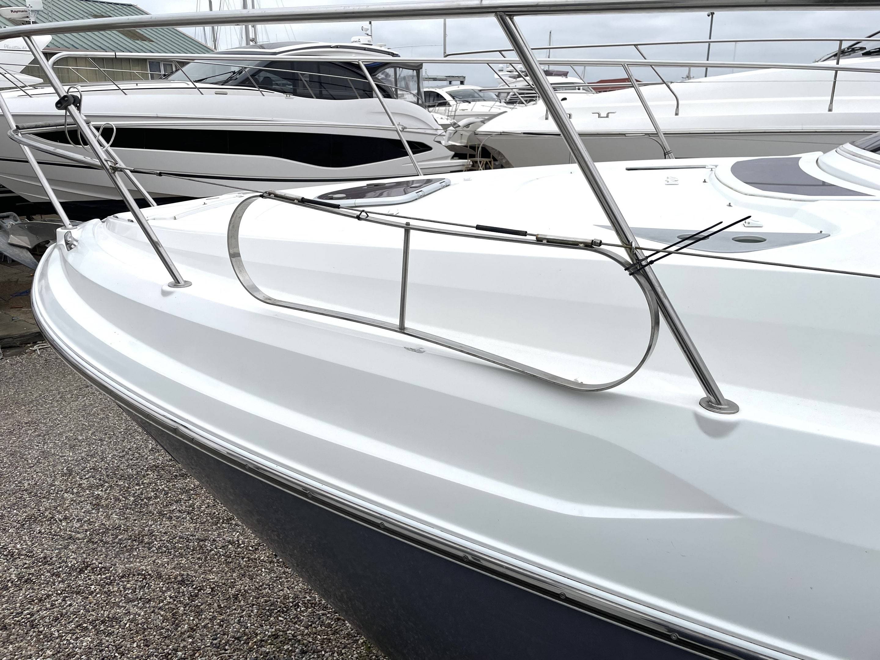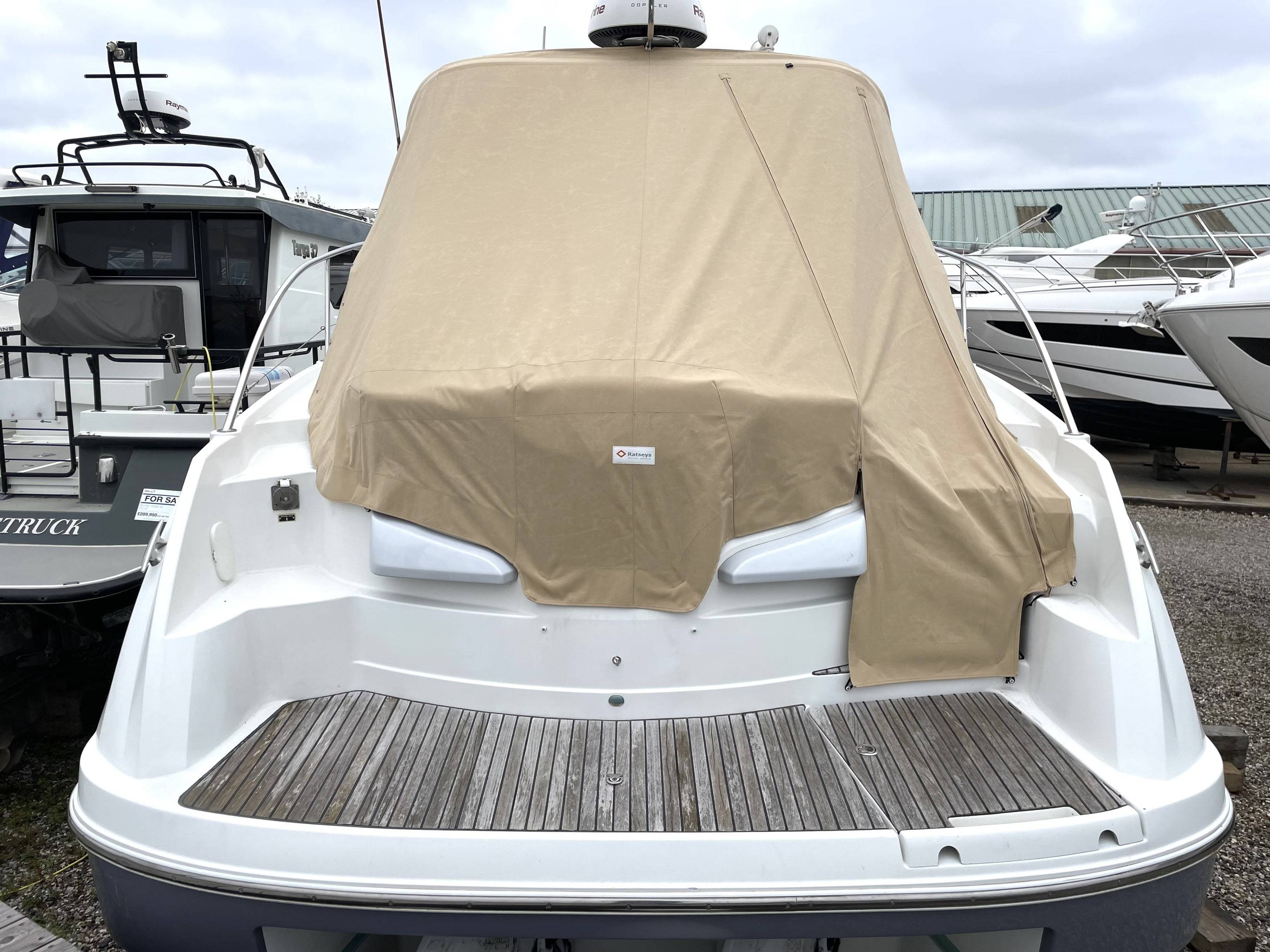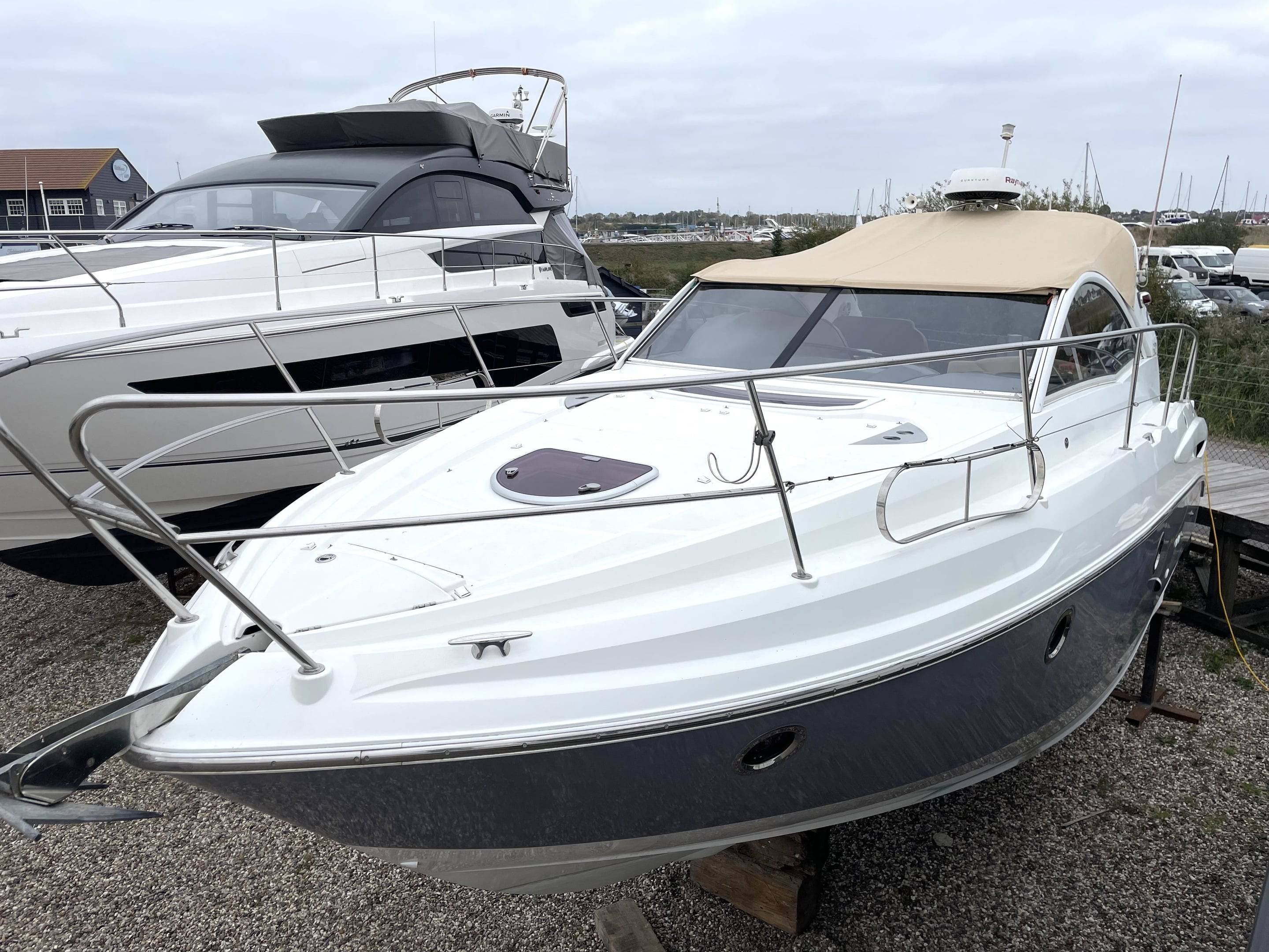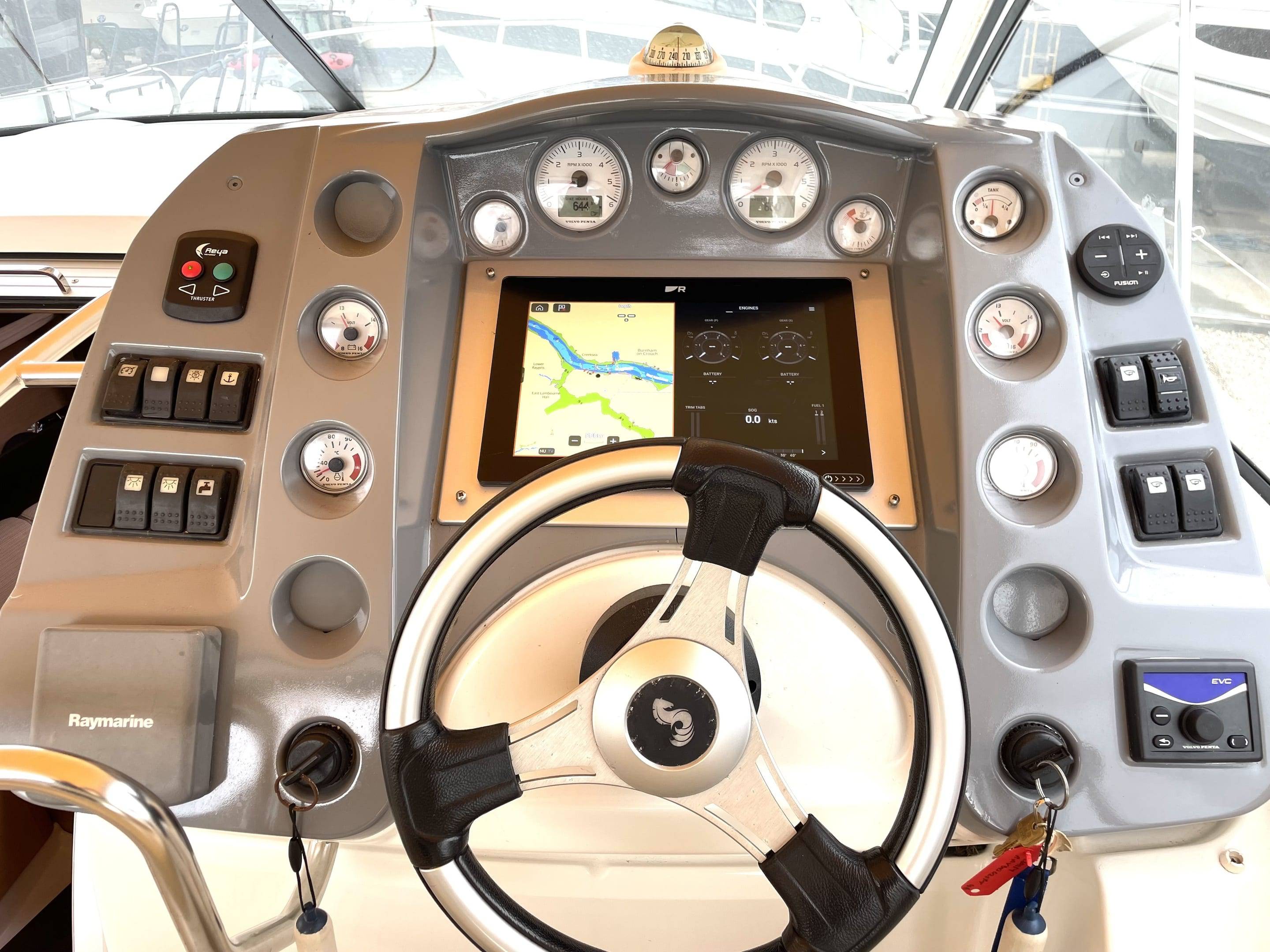 Performance & Engines • Twin Volvo Penta D3 engines, recalibrated to 230hp each (originally 190hp) – only 660 hours • Stainless steel duo props (fully refurbished) with Volvo Penta DPS-A stern drives • Cruising speed: 24 knots | Top speed: 34 knots • Professionally serviced and maintained by Volvo Penta main dealer (Dale Sailing Ltd) Recent Major Works (2023–2025): • 2x Reconditioned DPS-A stern drives • 4x New hydraulic arms for stern drives • 2x New starter motors & 2x New alternators • 2x New turbos, cambelts, water pumps, seawater pumps & tensioners • 2x Reconditioned heat exchangers • 4x New batteries (July 2025) • Full Volvo Penta dealer engine service • New tachometer (port, 2024) • New anodes (2025) Navigation & Electronics Raymarine (Installed July 2024): • Axiom+12RV 12" MFD with GB & Ireland chart • RealVision RV-312 transducers • Quantum Q24D Doppler Radar • Cam300 Mini Day-Night IP Camera • RNS-5 Network Switch, ST-STNG Converter Kit Starlink fitted 2025 Fusion Marine Audio (Installed July 2024): • Apollo RA770 Stereo with Wi-Fi, DAB+ antenna & remote • Signature Series 3i speakers (white & grey) • Apollo amps, 12” 1400W subwoofer, Fusion lighting control • Professional installation with premium cabling Accommodation • 3 double berths (forward convertible, aft cabin, cockpit conversion) • Comfortable saloon with galley to starboard • Shower / heads to port with new toilet (July 2025) • Cockpit “al fresco” galley with fridge & electric plancha grill Berth Sizes: • Forward double: 198 x 152 cm • Aft cabin double: 195 x 160 cm • Cockpit conversion: 192 x 115 cm Deck & Equipment • Electric Lewmar windlass (with remote) • CQR anchor with 50m chain • Zodiac inflatable dinghy + 6hp Mariner outboard (2024) • Lifted, washed, antifouled & polished (May 2025) Electrical & Construction • 12v system with 240v shore power • New 3.5kw lithium battery bank (July 2025) • Built to CE Cat. B for 8 persons • Patented Beneteau AirStep® hull – fast, stable, safe & efficient
