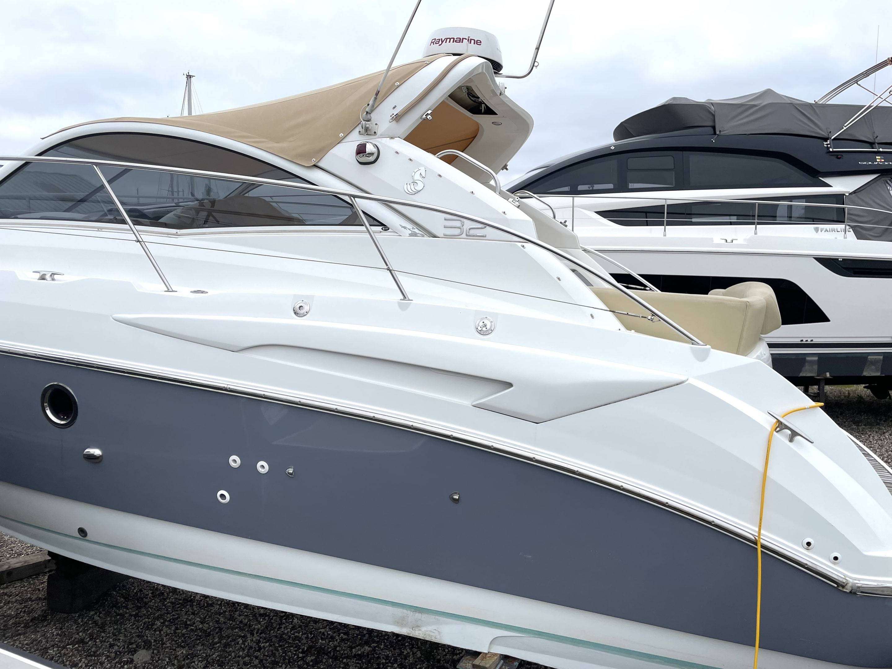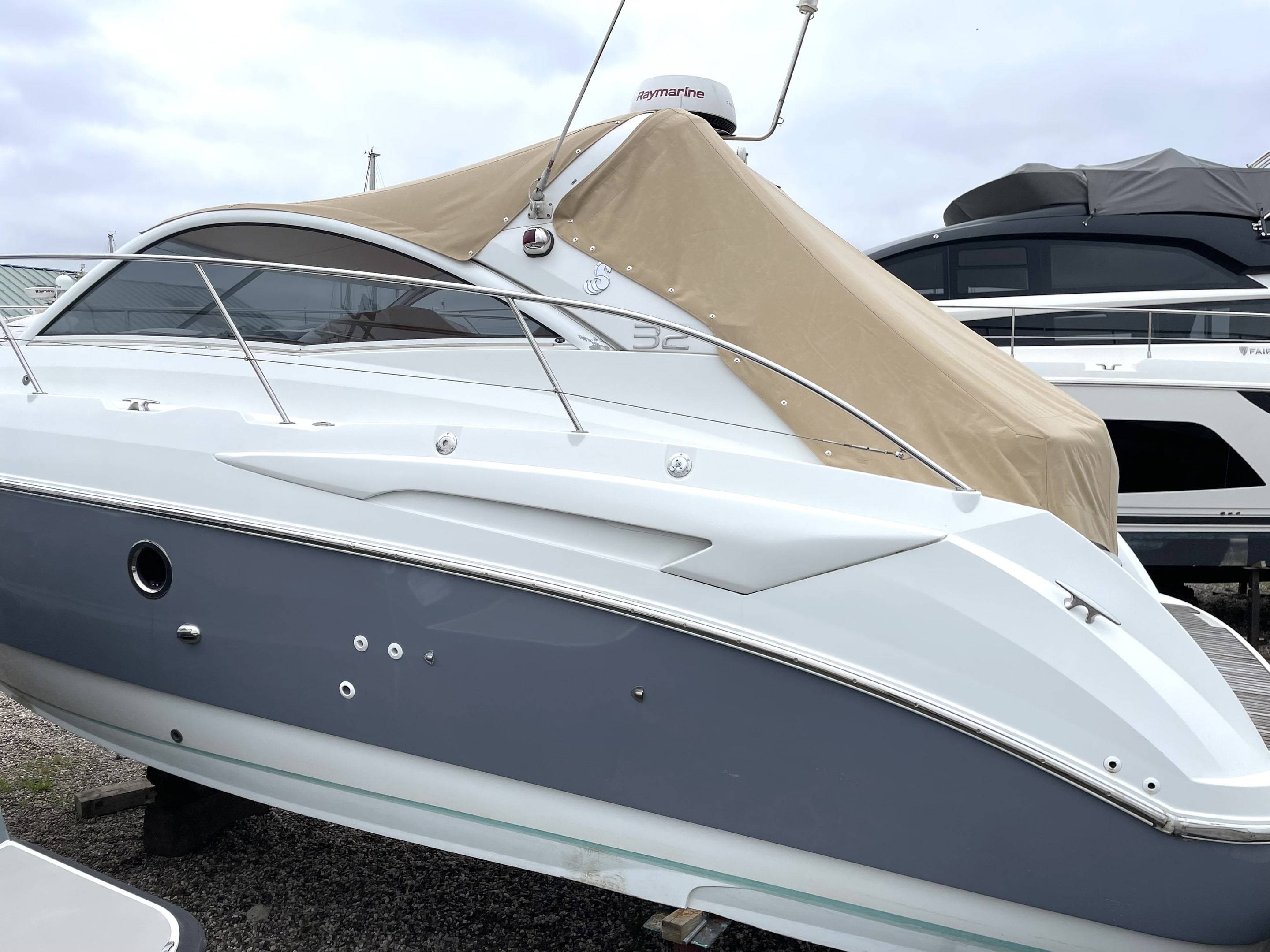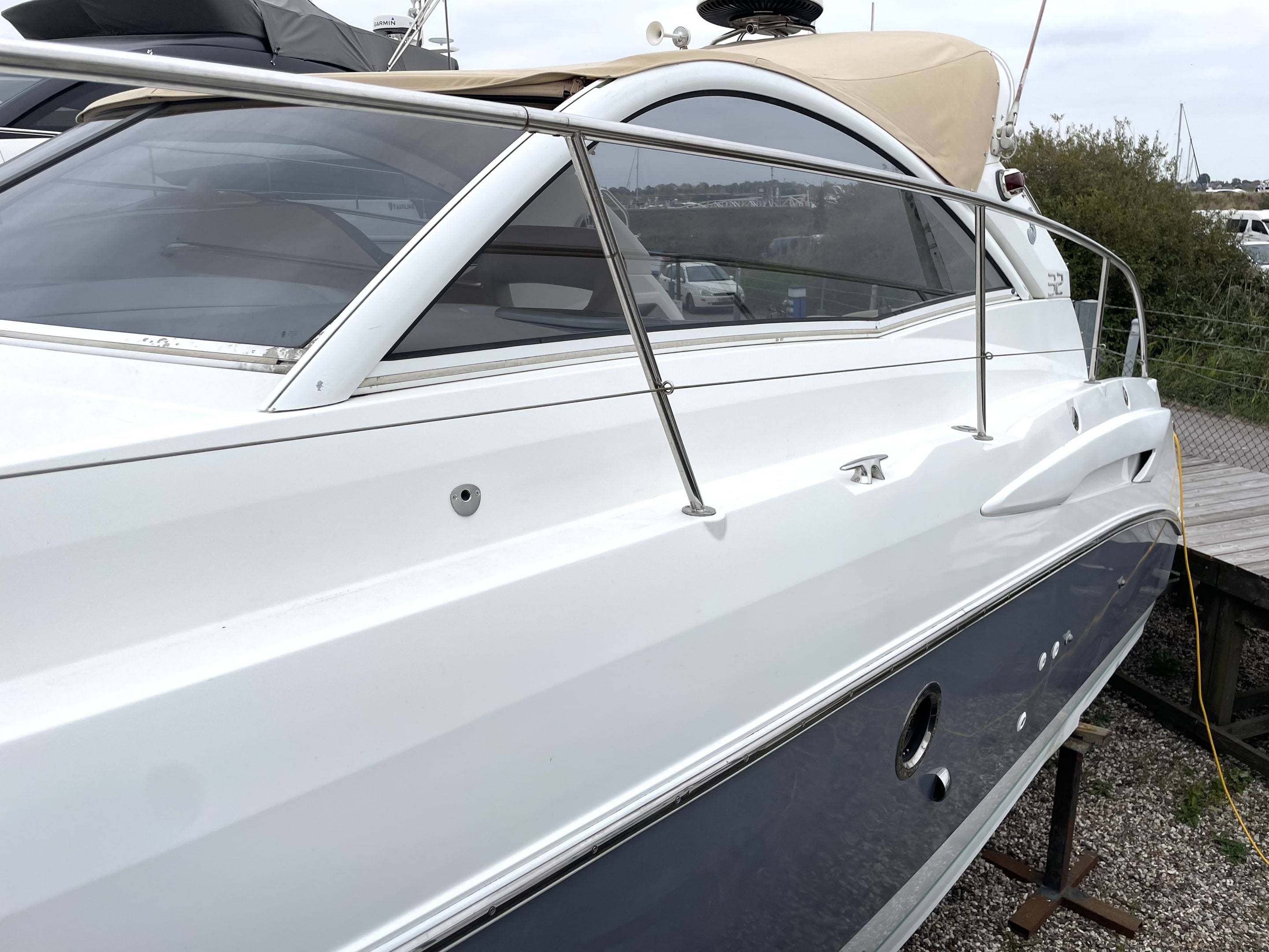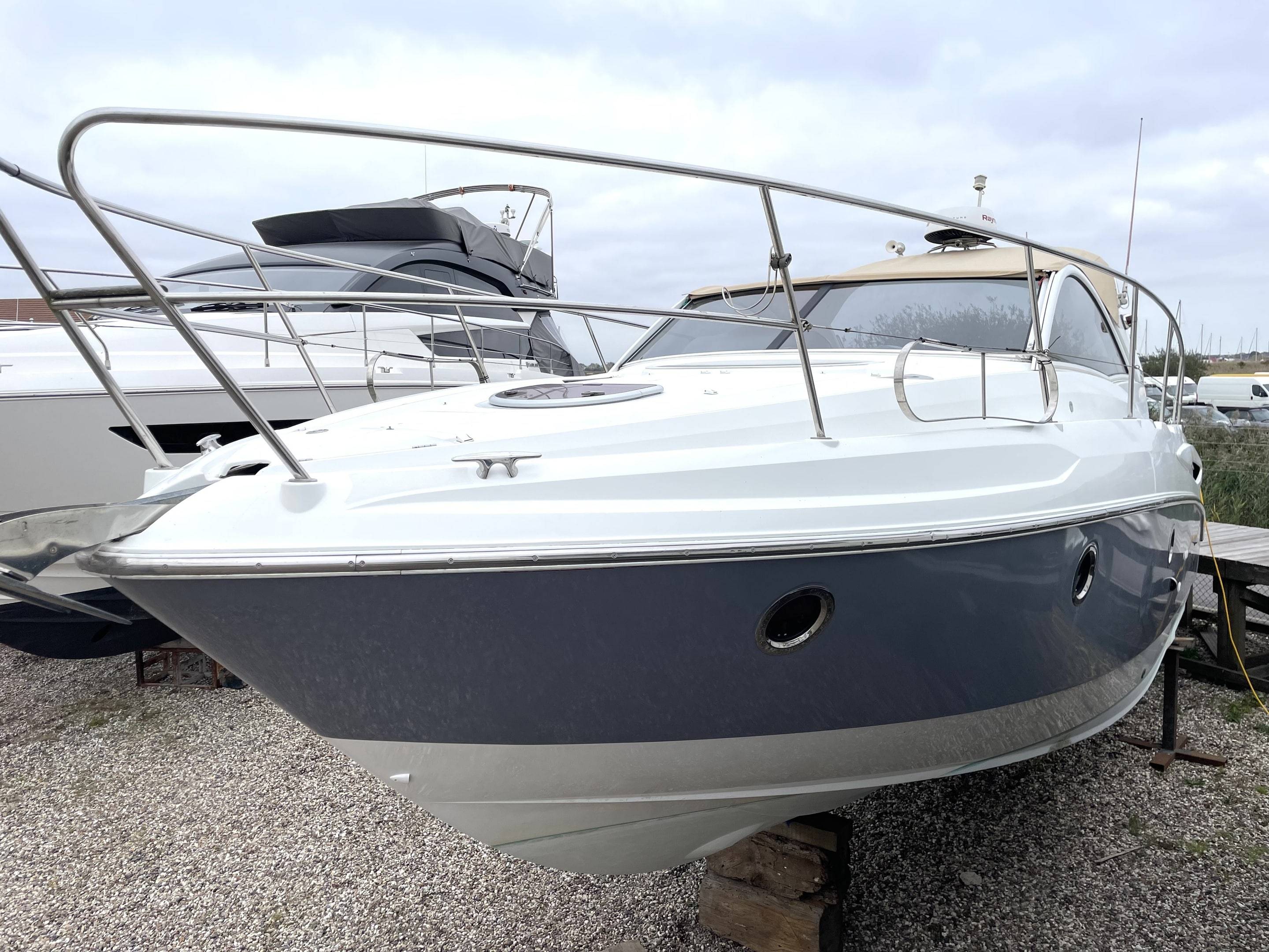 Performance & Engines • Twin Volvo Penta D3 engines, recalibrated to 230hp each (originally 190hp) – only 660 hours • Stainless steel duo props (fully refurbished) with Volvo Penta DPS-A stern drives • Cruising speed: 24 knots | Top speed: 34 knots • Professionally serviced and maintained by Volvo Penta main dealer (Dale Sailing Ltd) Recent Major Works (2023–2025): • 2x Reconditioned DPS-A stern drives • 4x New hydraulic arms for stern drives • 2x New starter motors & 2x New alternators • 2x New turbos, cambelts, water pumps, seawater pumps & tensioners • 2x Reconditioned heat exchangers • 4x New batteries (July 2025) • Full Volvo Penta dealer engine service • New tachometer (port, 2024) • New anodes (2025) Navigation & Electronics Raymarine (Installed July 2024): • Axiom+12RV 12" MFD with GB & Ireland chart • RealVision RV-312 transducers • Quantum Q24D Doppler Radar • Cam300 Mini Day-Night IP Camera • RNS-5 Network Switch, ST-STNG Converter Kit Starlink fitted 2025 Fusion Marine Audio (Installed July 2024): • Apollo RA770 Stereo with Wi-Fi, DAB+ antenna & remote • Signature Series 3i speakers (white & grey) • Apollo amps, 12” 1400W subwoofer, Fusion lighting control • Professional installation with premium cabling Accommodation • 3 double berths (forward convertible, aft cabin, cockpit conversion) • Comfortable saloon with galley to starboard • Shower / heads to port with new toilet (July 2025) • Cockpit “al fresco” galley with fridge & electric plancha grill Berth Sizes: • Forward double: 198 x 152 cm • Aft cabin double: 195 x 160 cm • Cockpit conversion: 192 x 115 cm Deck & Equipment • Electric Lewmar windlass (with remote) • CQR anchor with 50m chain • Zodiac inflatable dinghy + 6hp Mariner outboard (2024) • Lifted, washed, antifouled & polished (May 2025) Electrical & Construction • 12v system with 240v shore power • New 3.5kw lithium battery bank (July 2025) • Built to CE Cat. B for 8 persons • Patented Beneteau AirStep® hull – fast, stable, safe & efficient