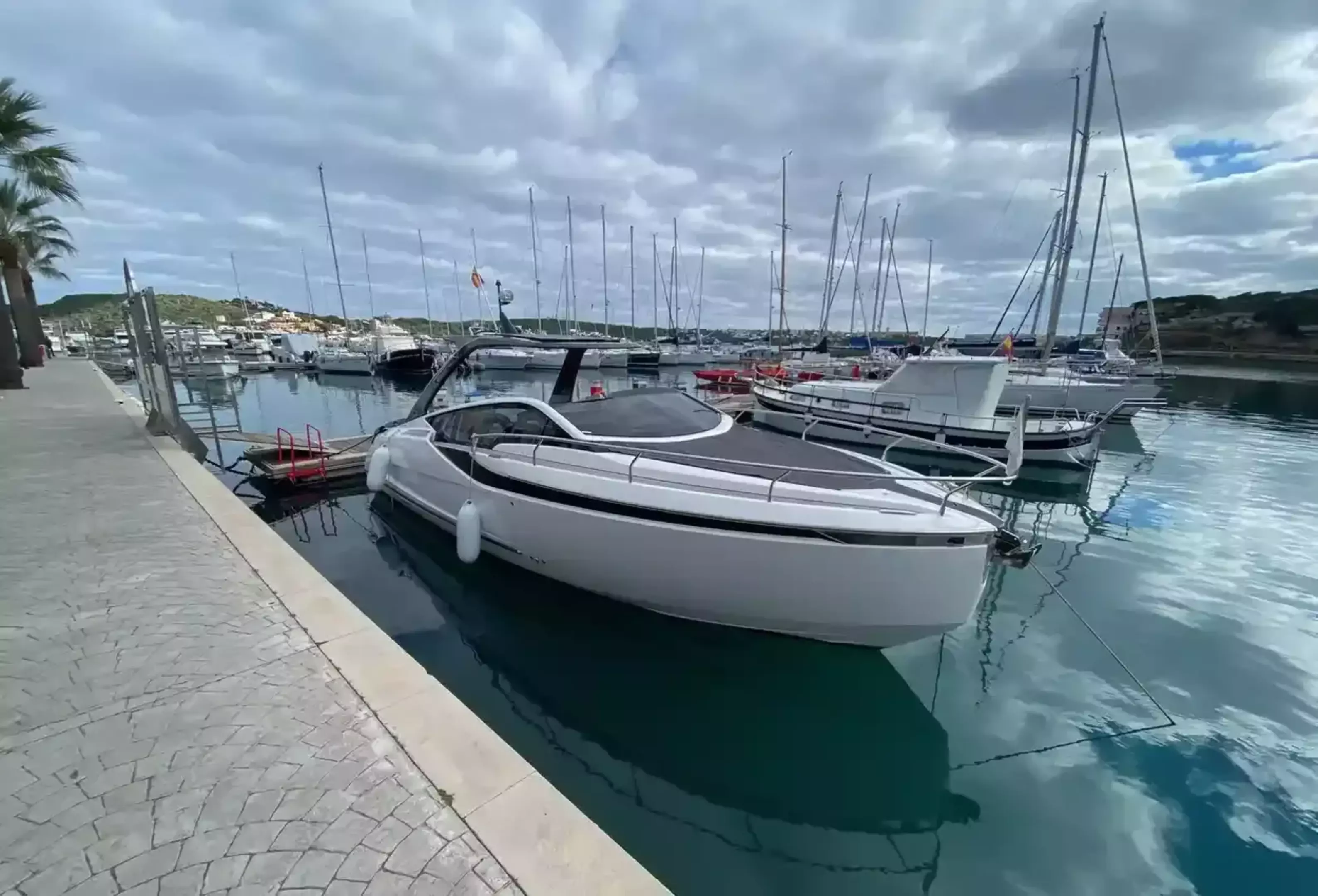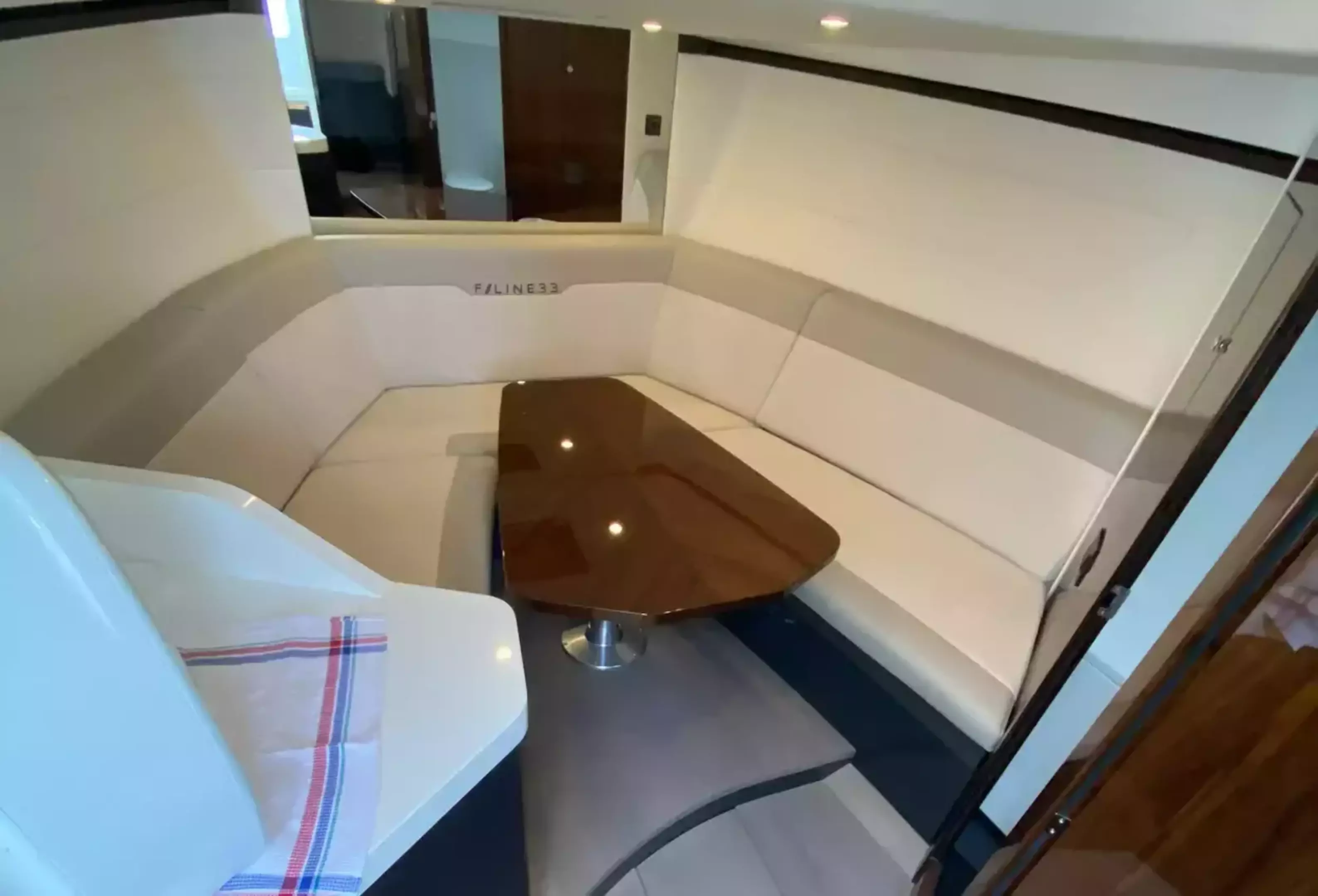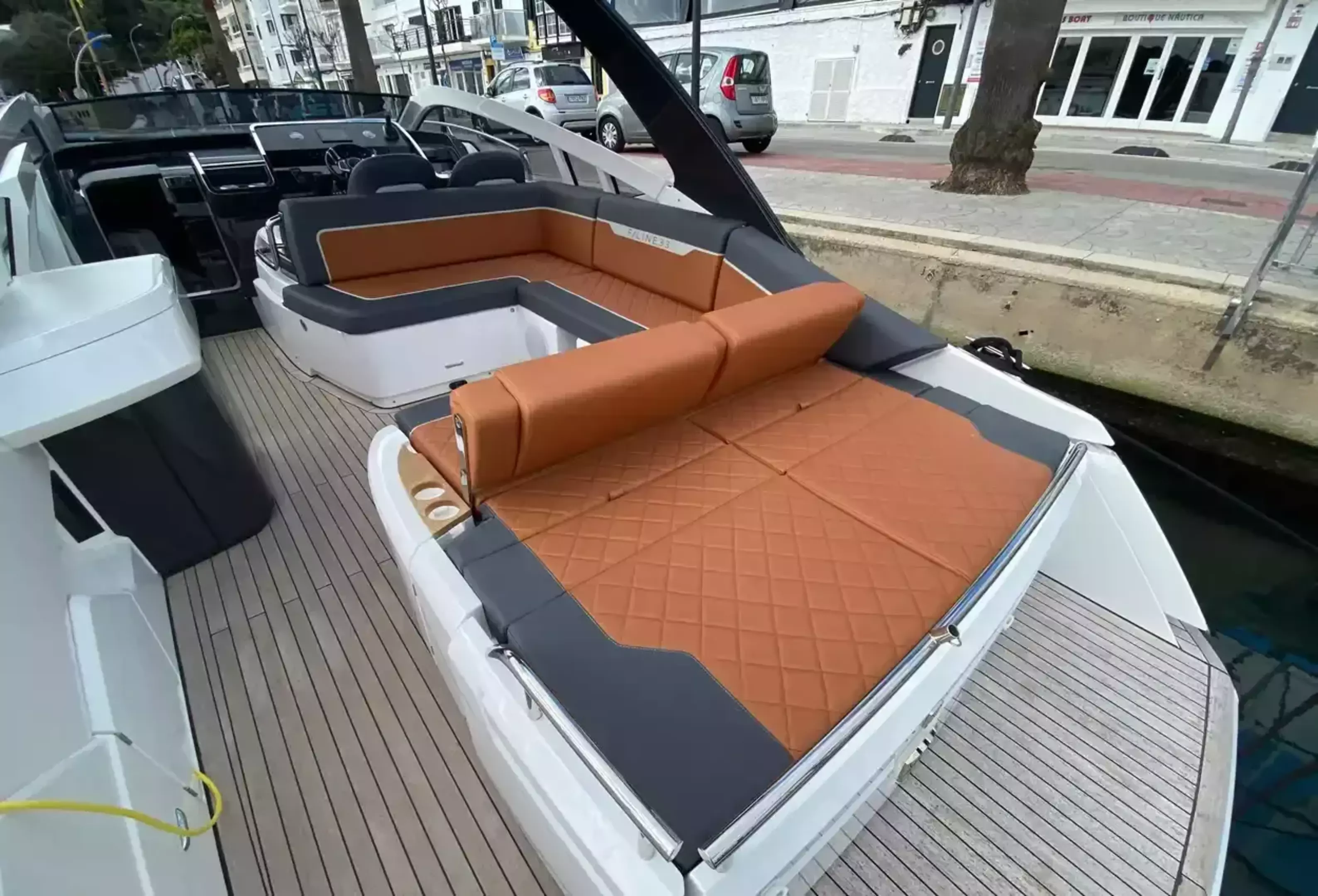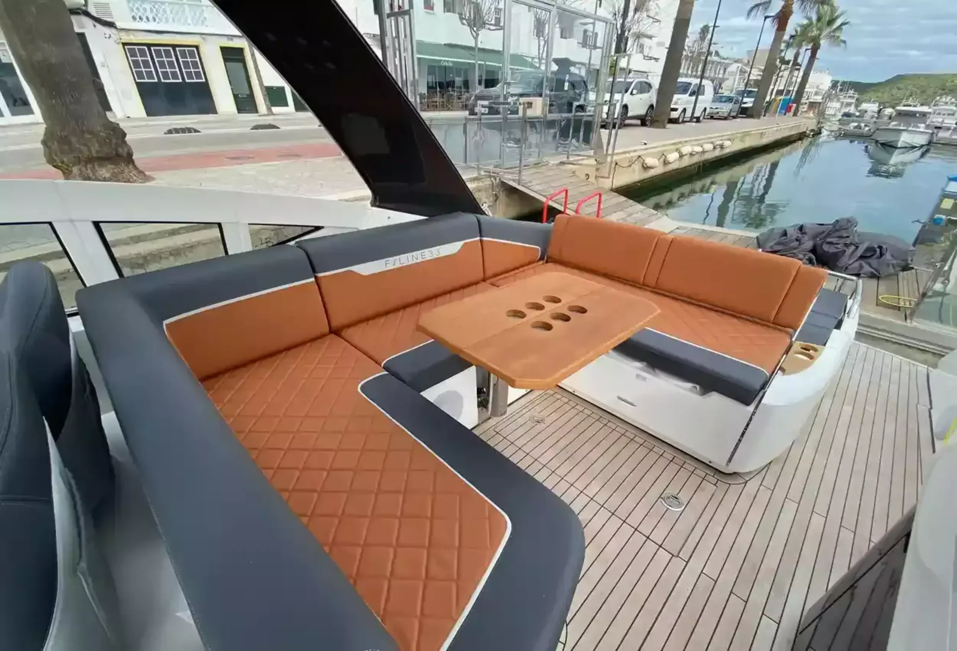 Boat Overview F//Line 33 with under 50 hours is now available, ex tax .With Manufactures warranty.Specifications & FeaturesFairline factory specification & fitted extras: Version 2 layout Hardtop to cockpit White exterior gel coat colour Black antifoul Bow thruster Joystick control Autopilot Wireless phone charger to helm