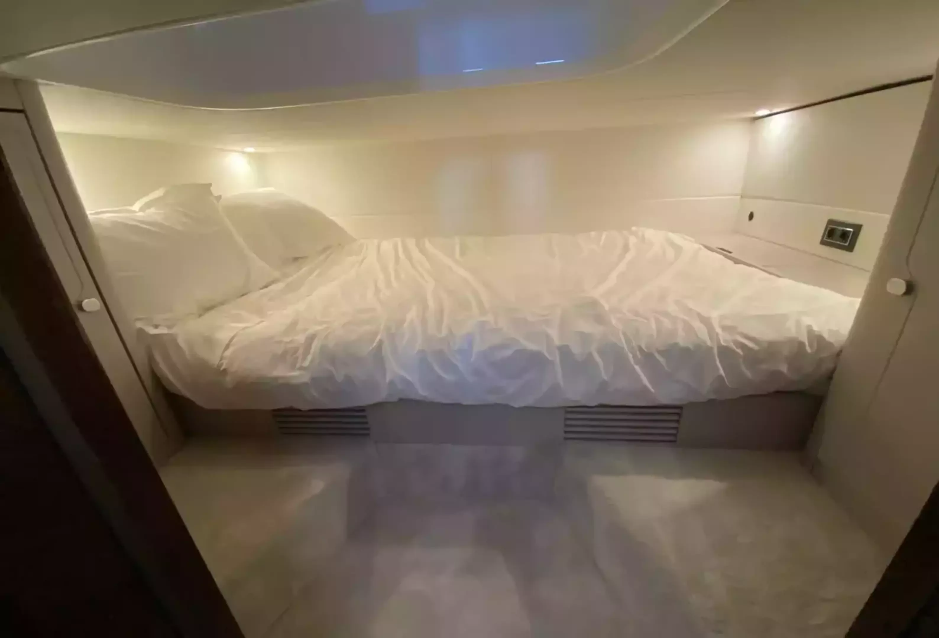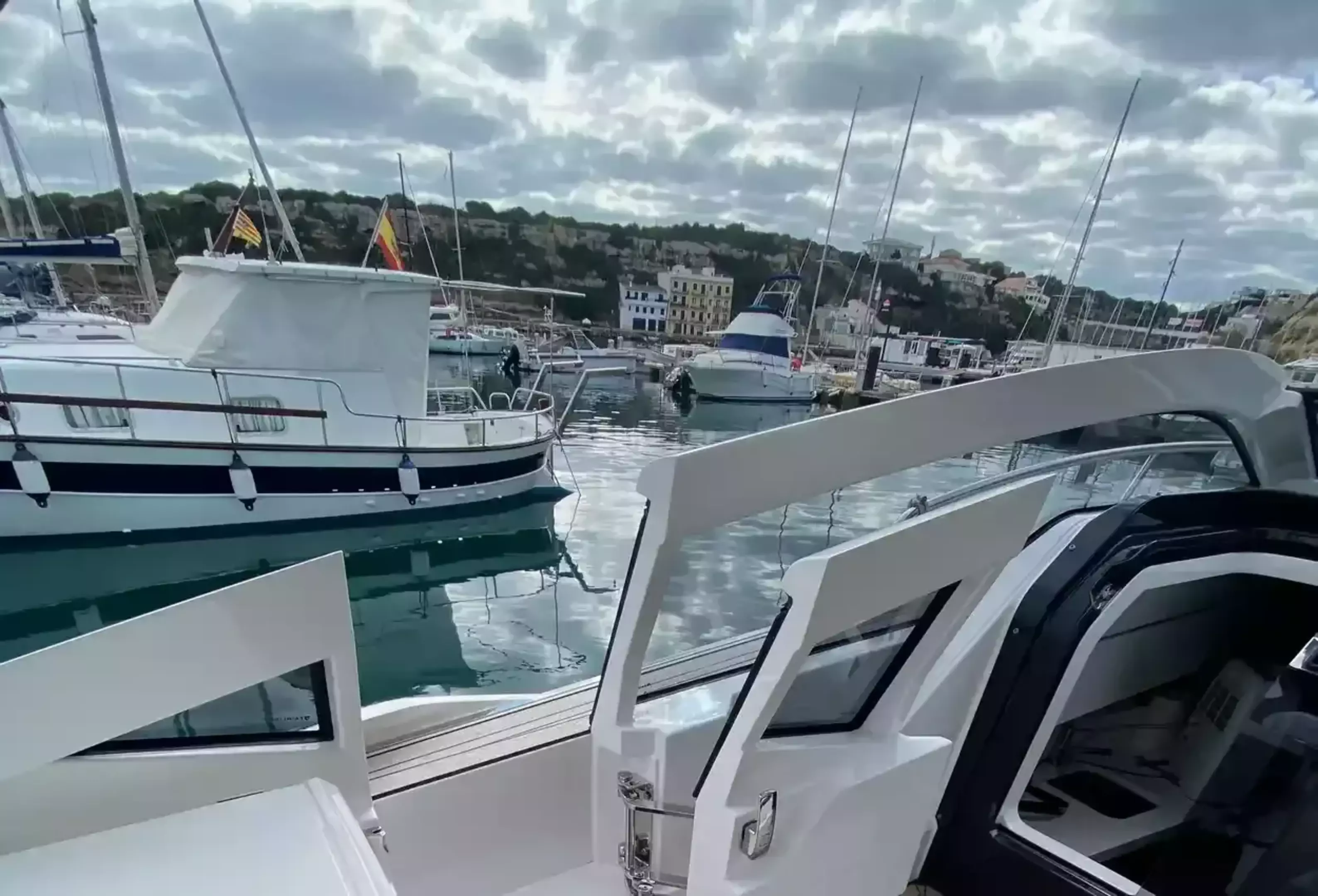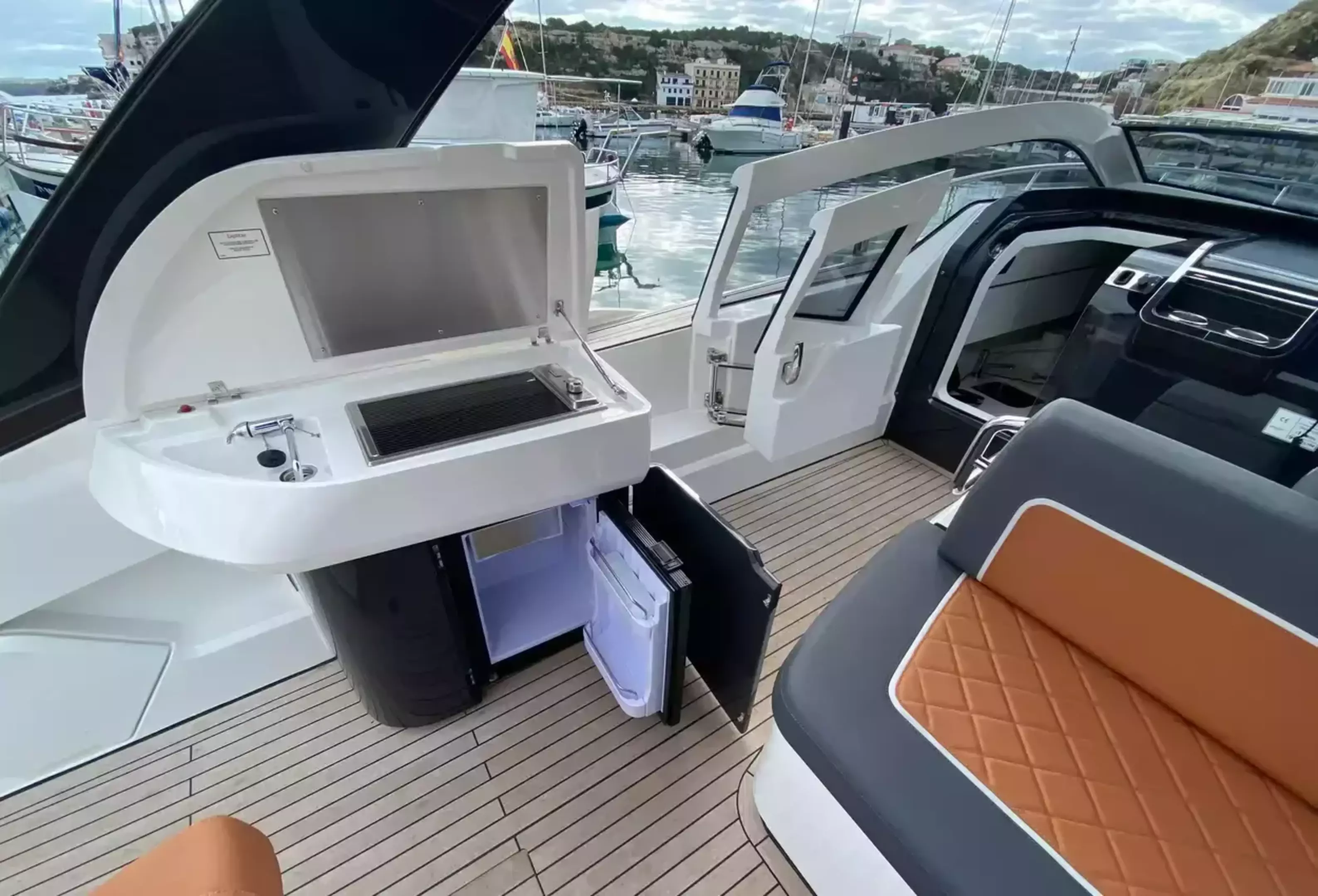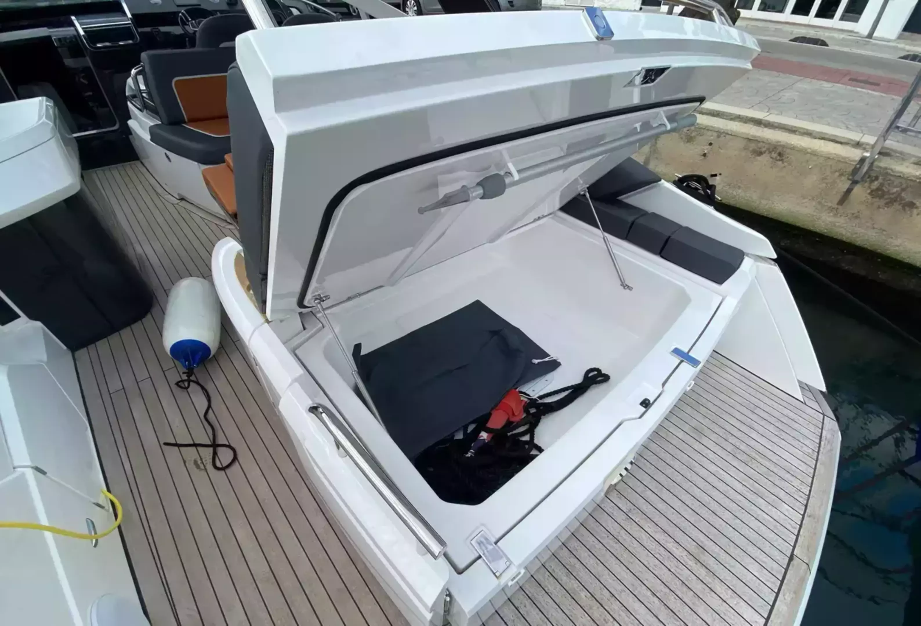 Boat Overview F//Line 33 with under 50 hours is now available, ex tax .With Manufactures warranty.Specifications & FeaturesFairline factory specification & fitted extras: Version 2 layout Hardtop to cockpit White exterior gel coat colour Black antifoul Bow thruster Joystick control Autopilot Wireless phone charger to helm