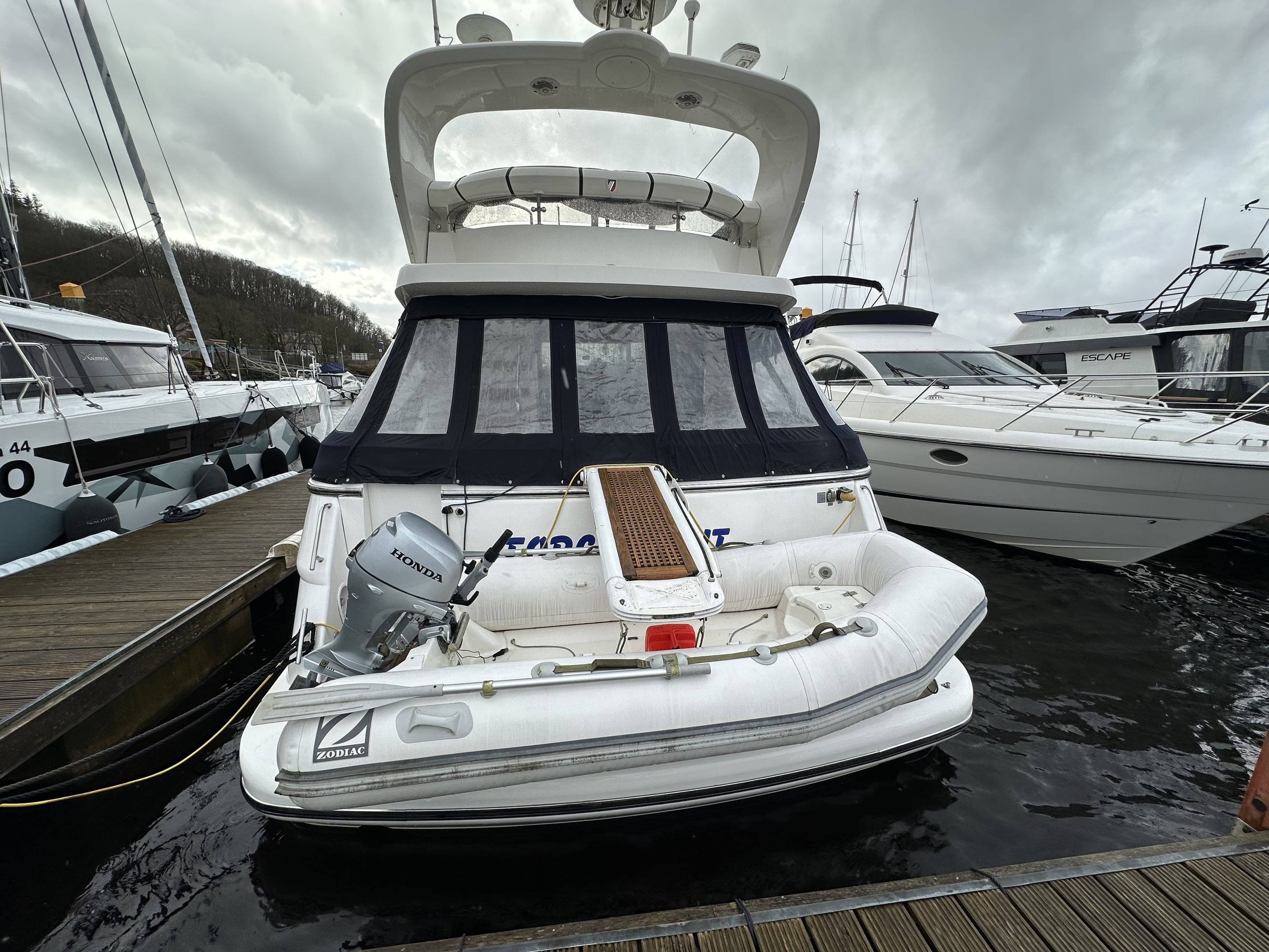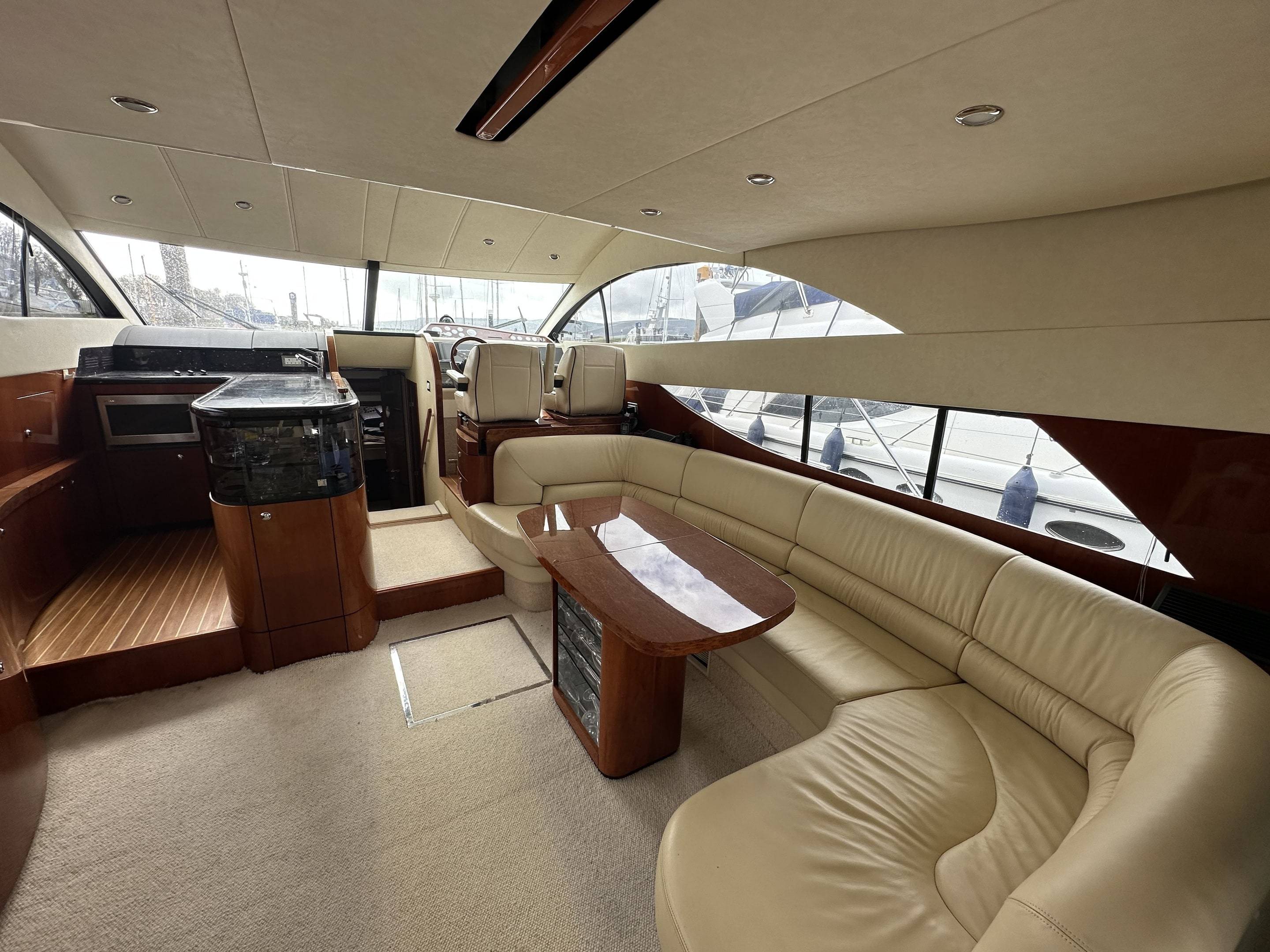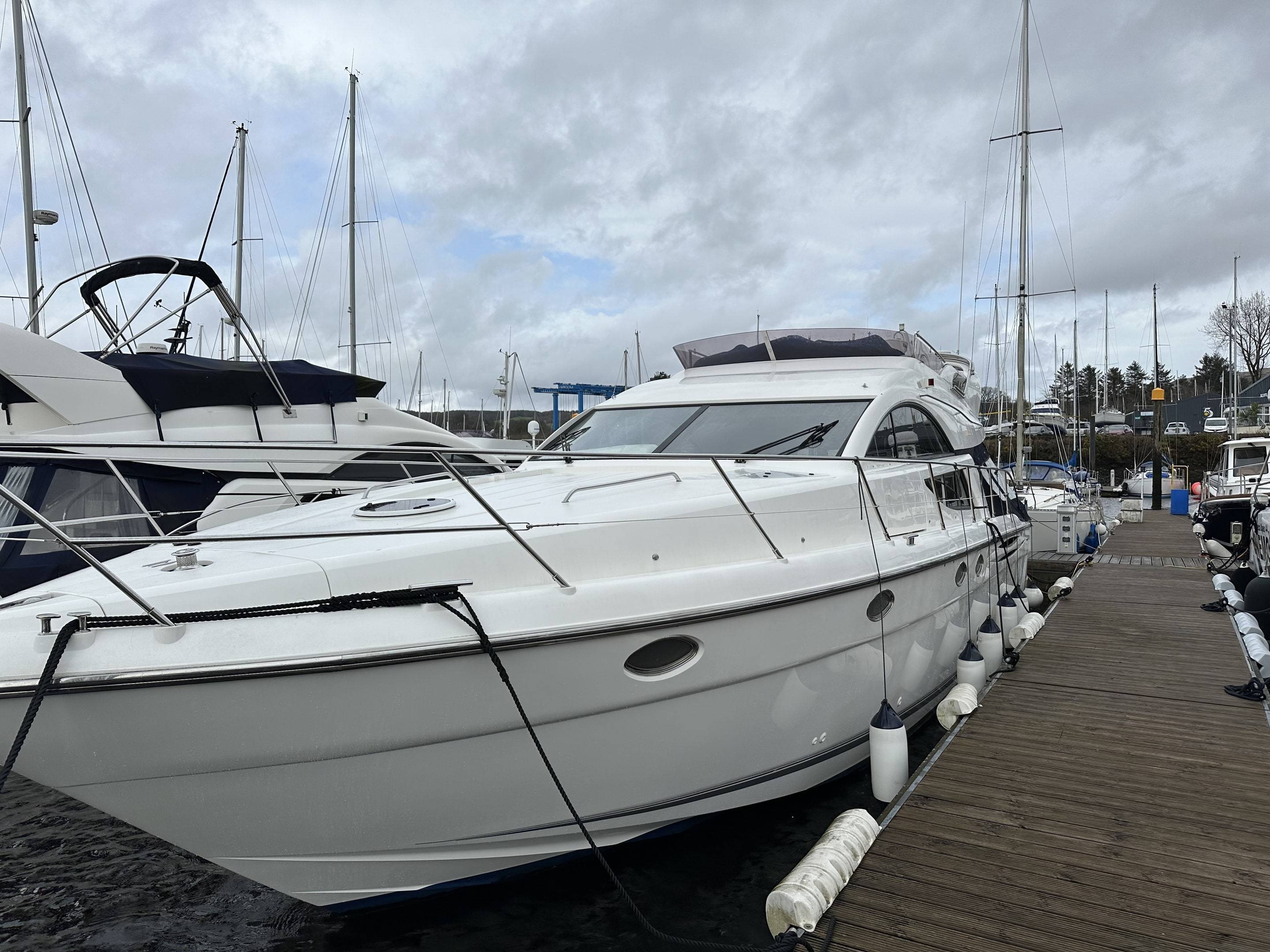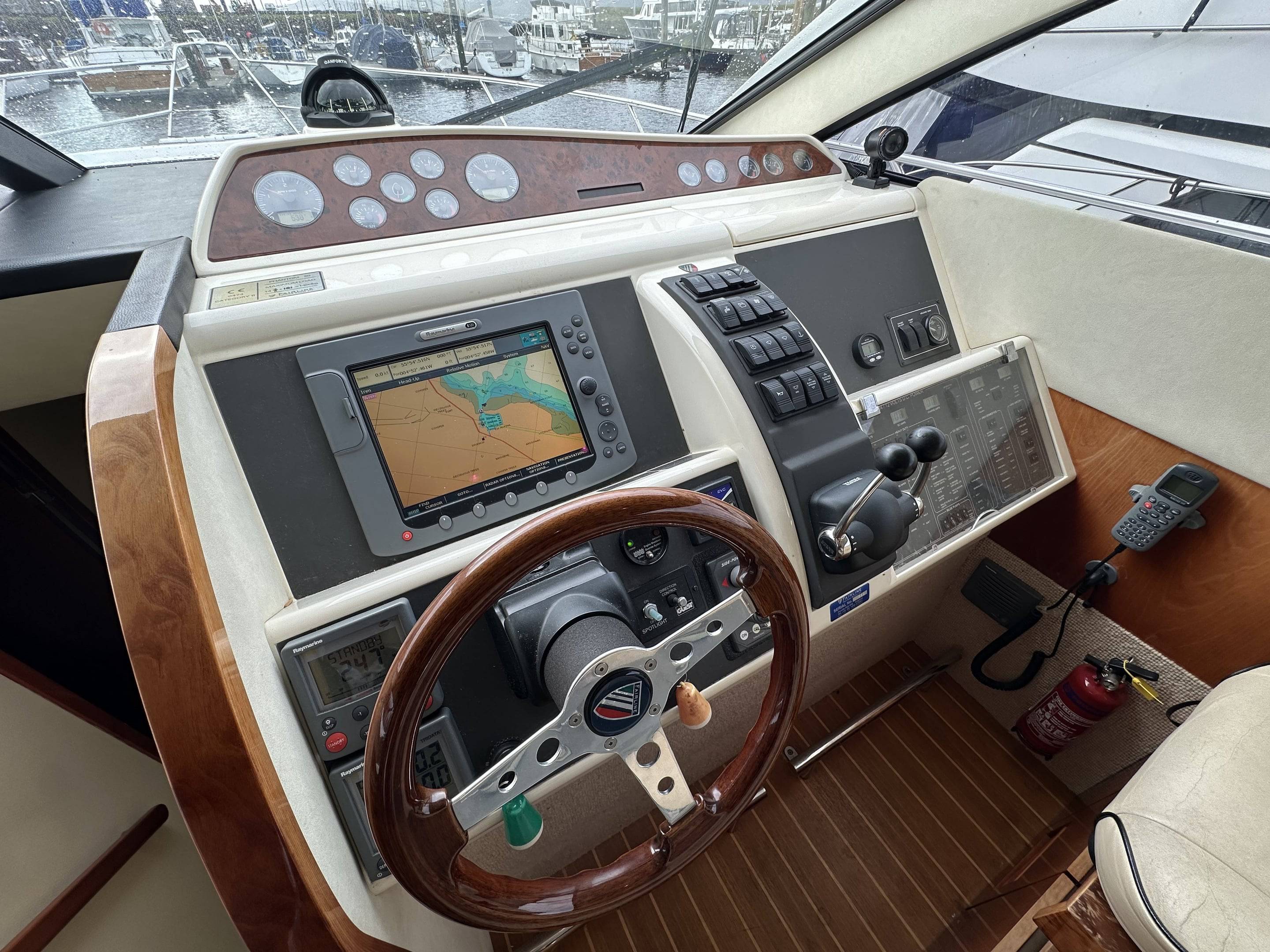 2008 Fairline Phantom 50 fitted with twin Volvo D12 715 EVC Engines - 540 hours use, just one owner from new and supplied by us. Used for day sailing only & Never slept on". Force Eight has been exceptionally maintained by the current owner, from the moment you step onboard the spacious and superbly equipped yacht it is obvious no expense has been spared keeping her in great condition. Specification includes: Bow & stern thrusters // Eberspacher diesel heating // Air Conditioning Reverse Cycle // Generator Upgrade to 17.5 KVA // Fitted Out Aft Cabin // Griddle to Flybridge, Holding Tank with Discharge to Sea & Deck // Additional fridge to galley // Refrigerator to Flybridge // Audio Upgrade BOSE 321 // Bimini Top // Mood Lights // Passerelle // Freezer to service room // Audio upgrade to all cabins // Teak to Flybridge // Under water lights // Fridge/Freezer to upstairs cupboard // Raymarine E120 // Raymarine Radar // Raymarine Autopilot // Dingy with 10hp Honda outboard // Washing machine - For more information please contact Boats.co.uk on 01702 258885 or email sales@boats.co.uk