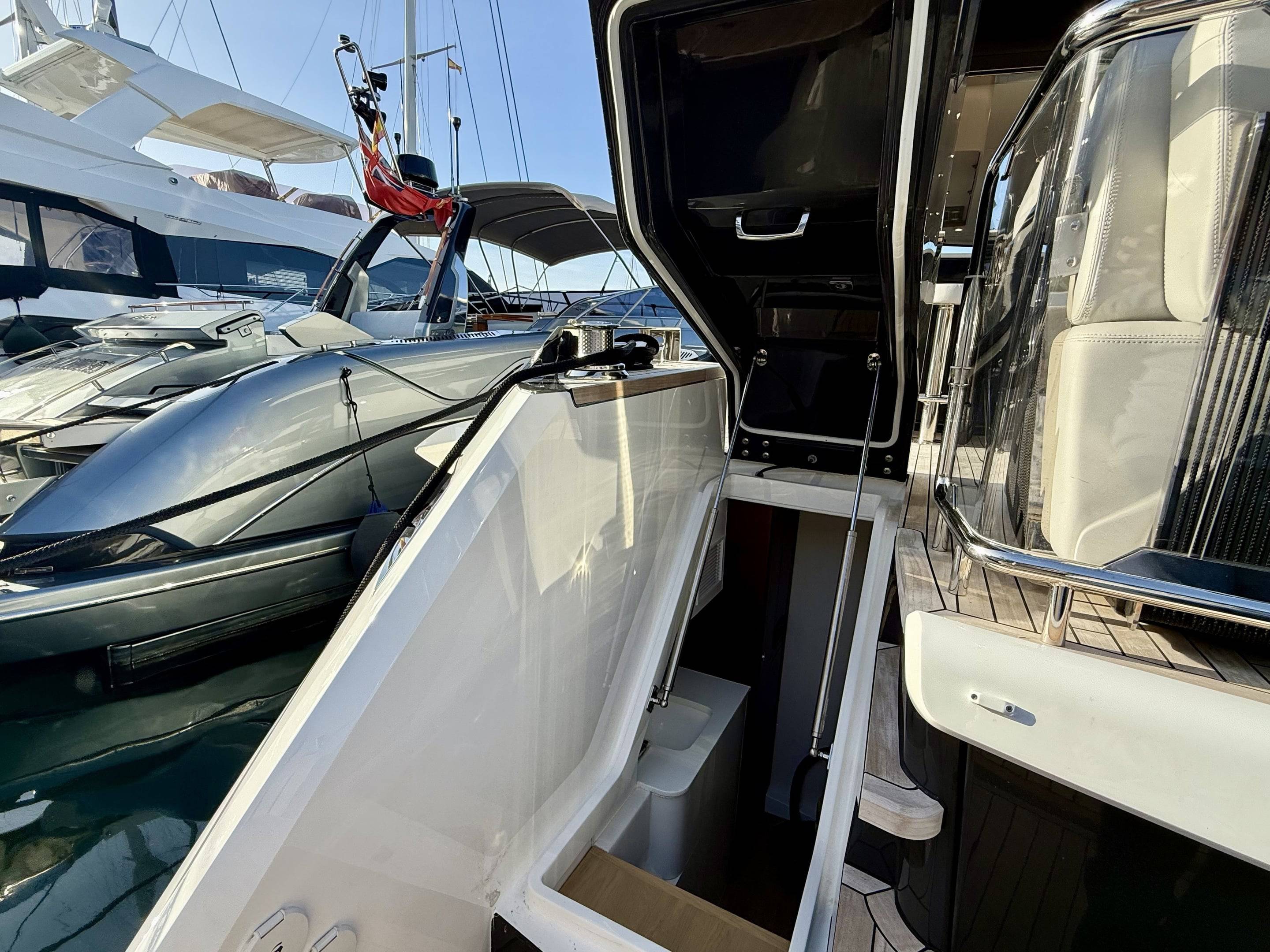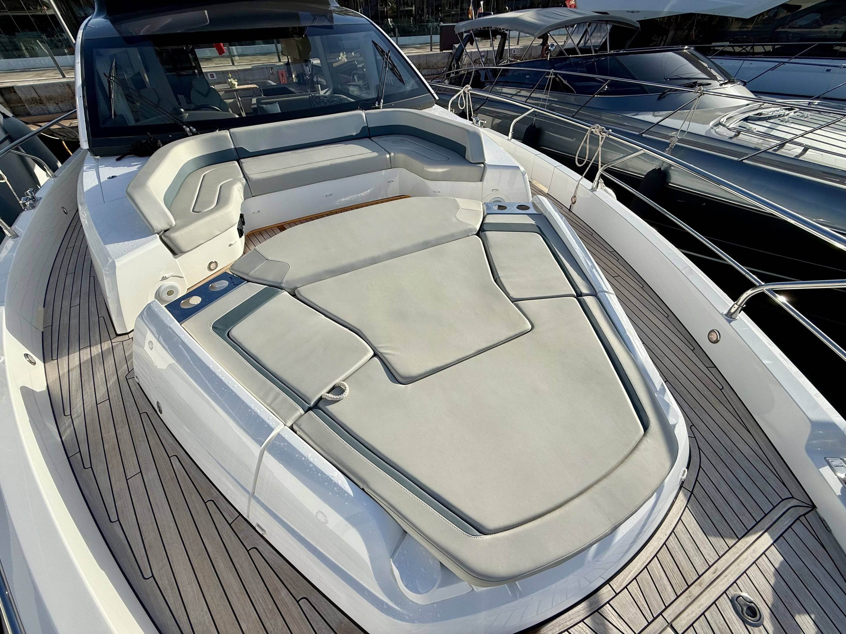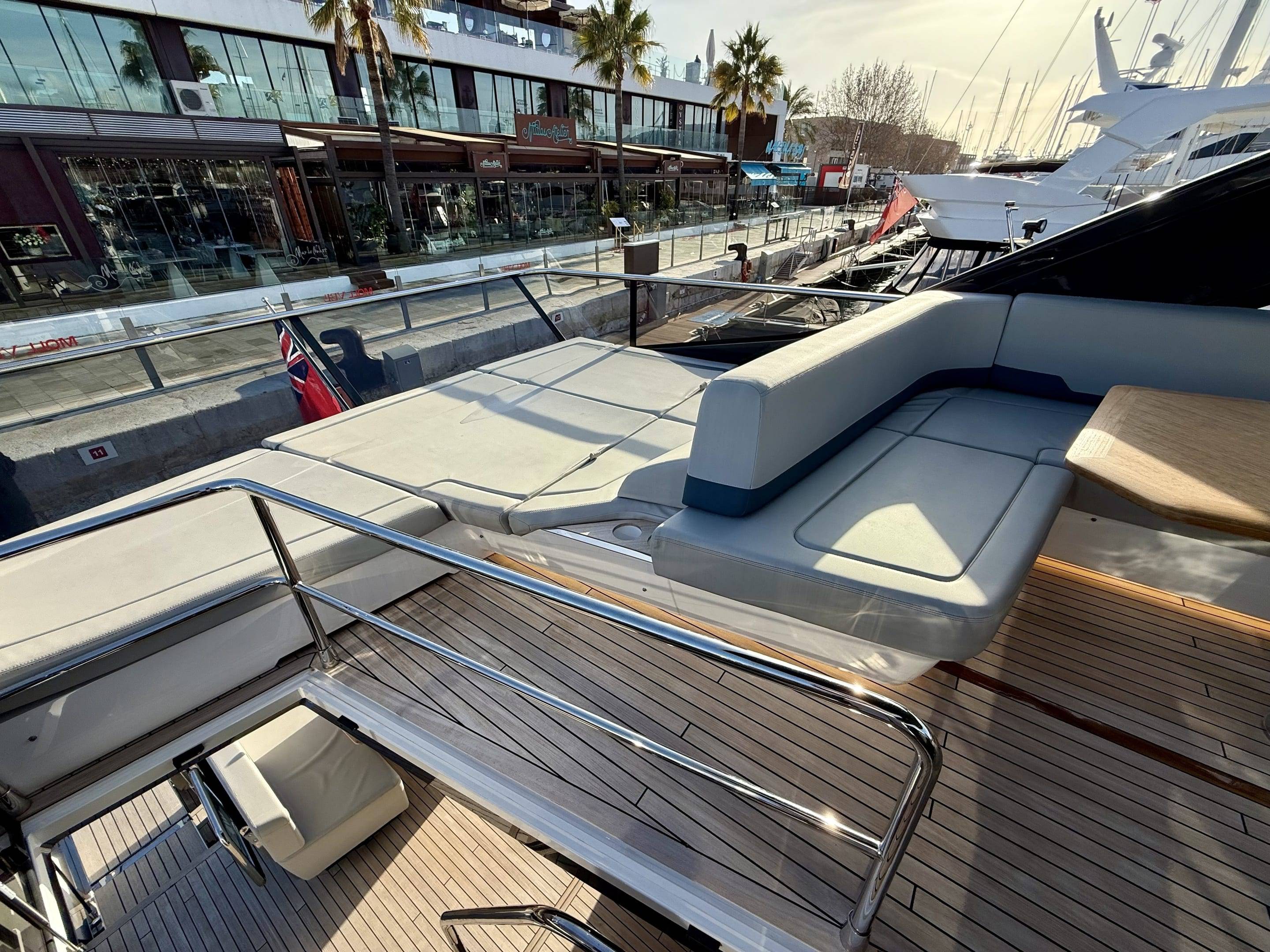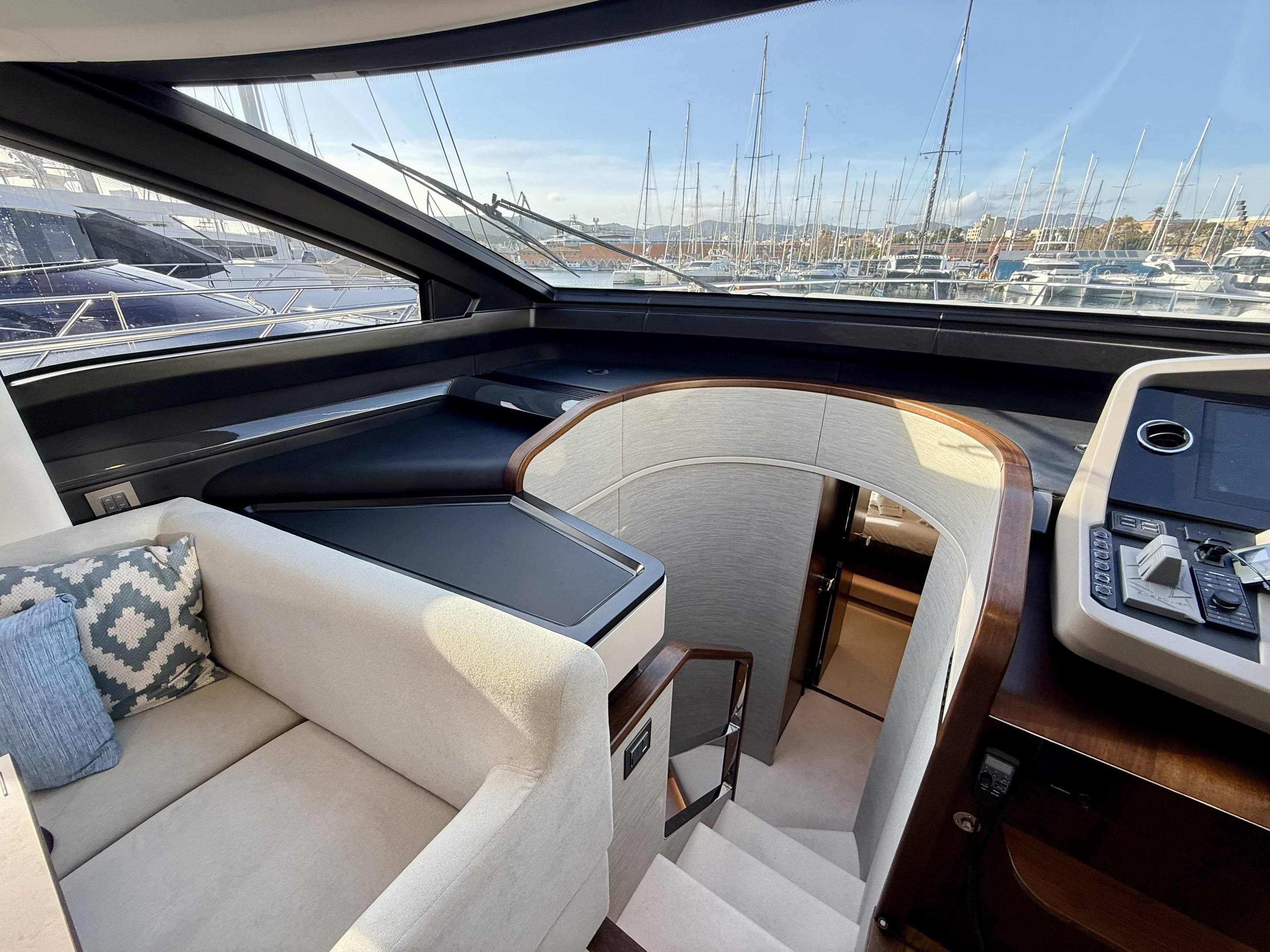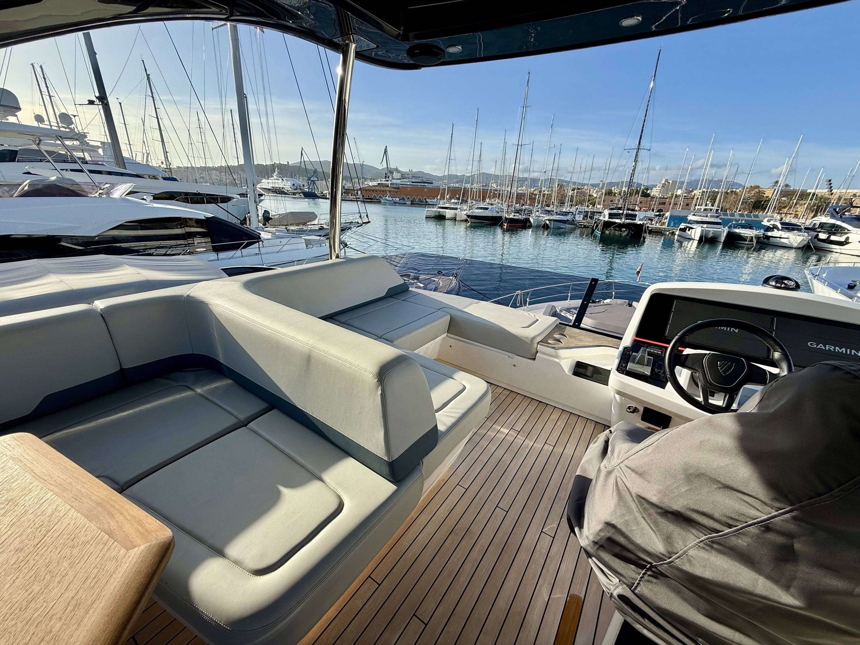 Welcoming a new to market LIKE NEW CONDITION 2025 Fairline Squadron 58: Fitted with twin Volvo Penta D13-100hp engines, currently running with just 240 hours. This is an extremely high specification including the top end interior finishes and all the technology too. The long list of additional options include: Gyroscopic Stabiliser / Hide and slide platform / Hydraulic passerelle / Beach club balconies, Modula furniture, glass transom and electric BBQ/Sink to aft / Flybridge hard top with integrated sliding roof / White LED mood lighting throughout / Underwater lights / Electric adjusting cockpit table / Crew cabin / Third control station / Fusion audio surround sound system / Stainless steel ultra anchor upgrade / Twin Garmin plotters to both helms / Joystick control / Humphries automatic trim tabs / Saloon drop down windows to galley area and forward saloon / Satin walnut interior wood / Deep pile cream carpets / Additional sideboard to saloon in lieu of sofa / Smart TVs to saloon and all guests cabins and the list is endless. This is one of the nicest colour pallet specifications chosen to the market and a full specification with all the technical upgrades included. A fantastic opportunity to own one of the first second hand 58's still with warranty on the market and in Like new condition! Contact BoatsCo today for all the details and to arrange a viewing.