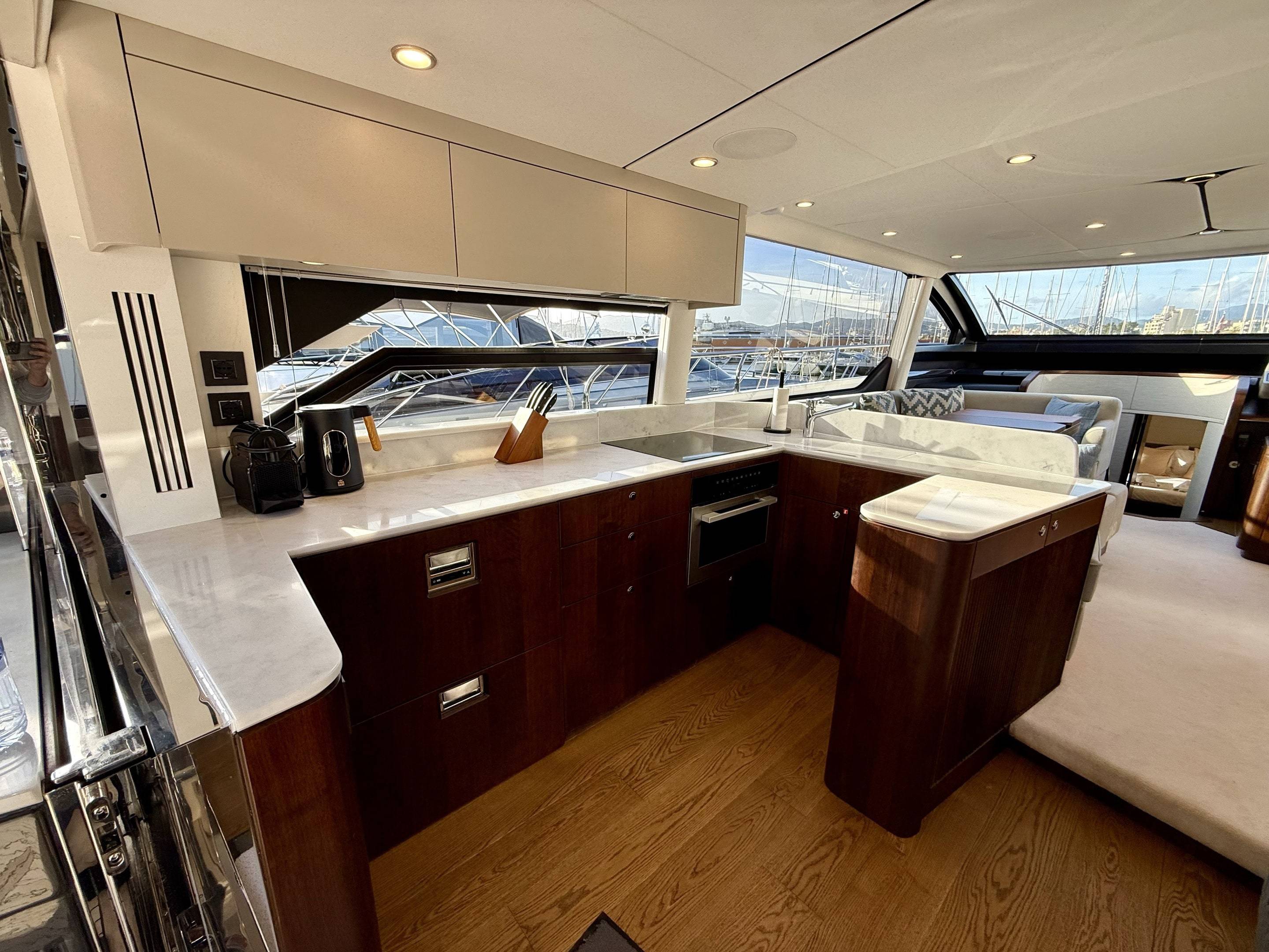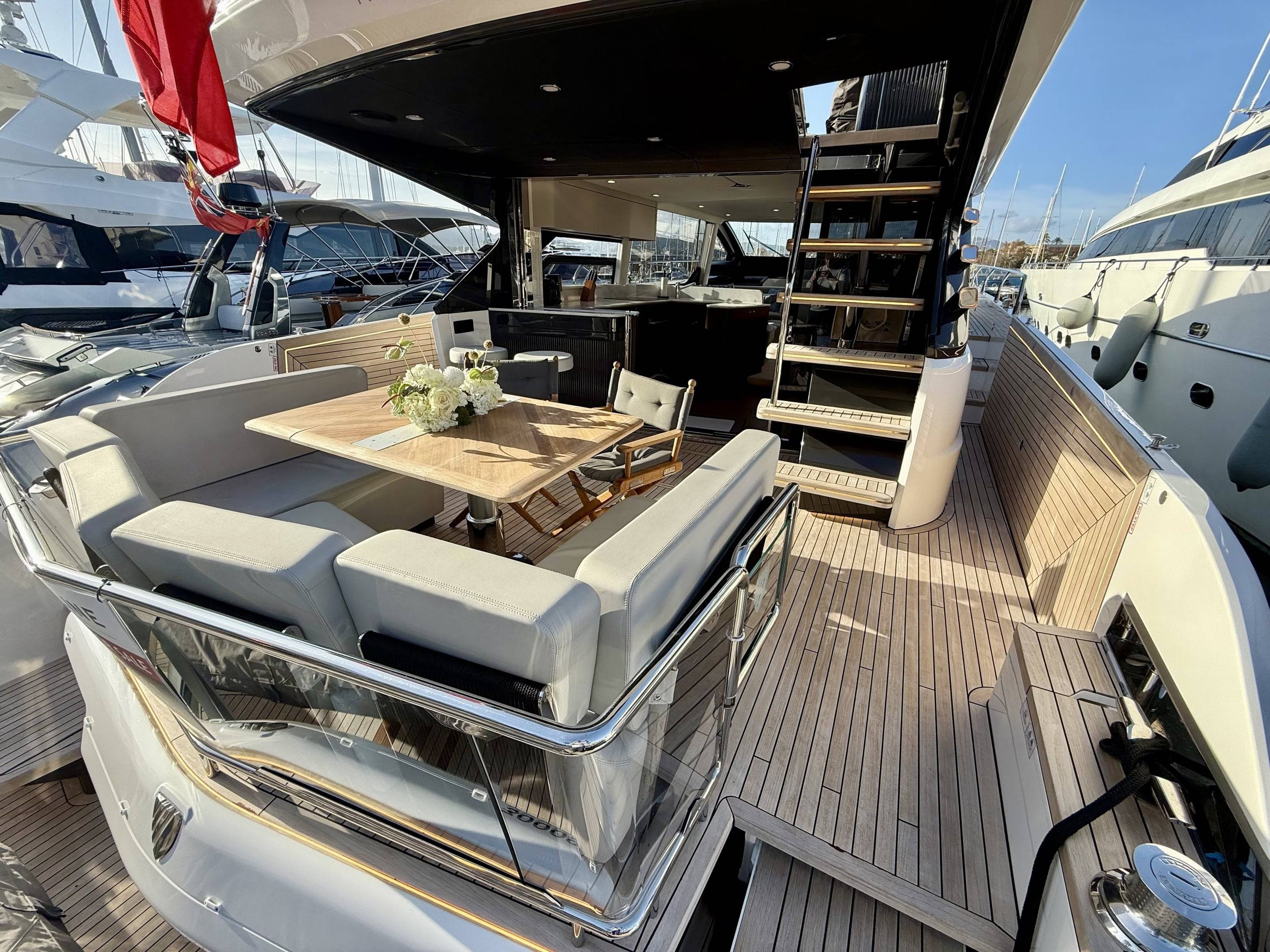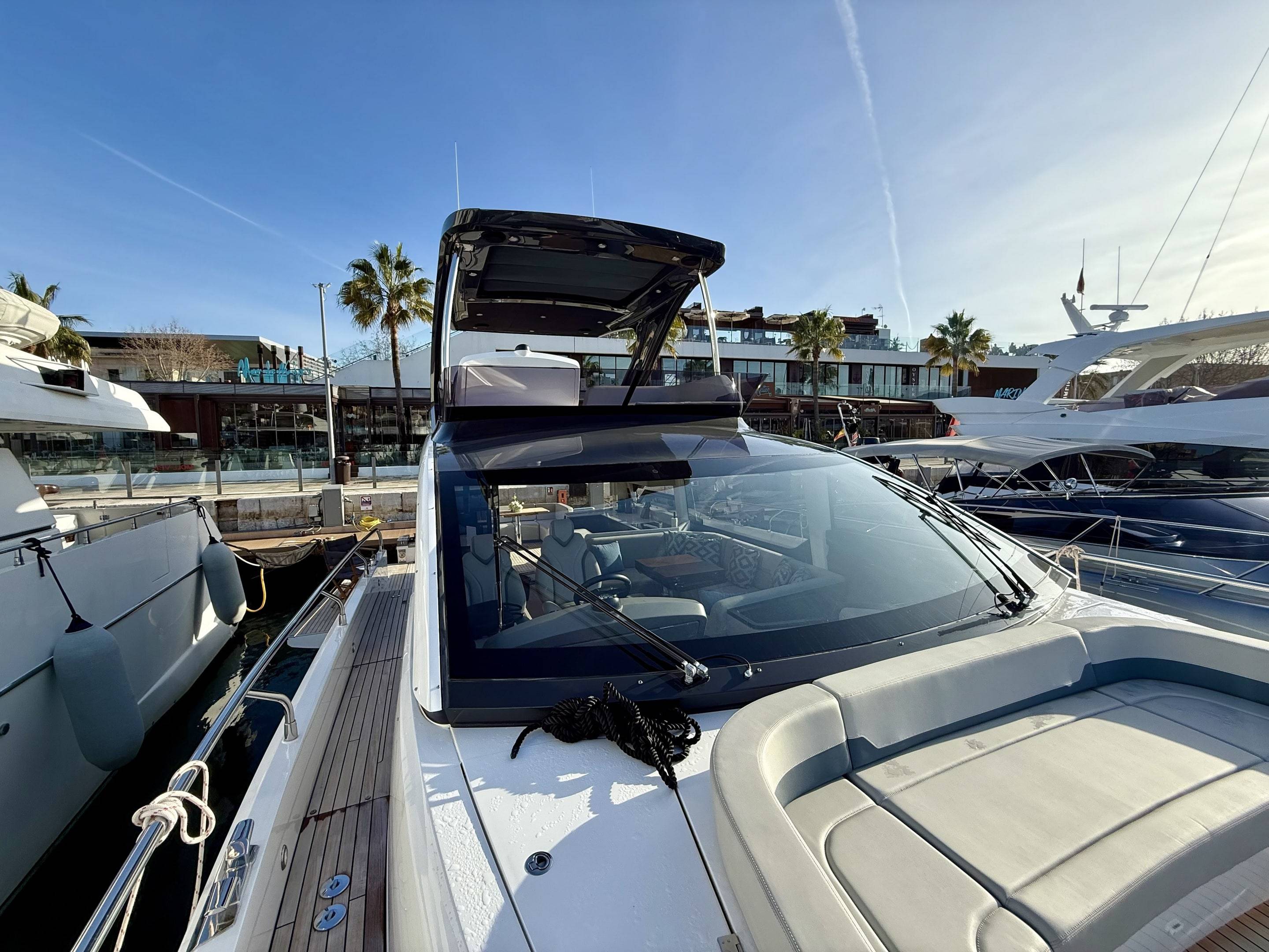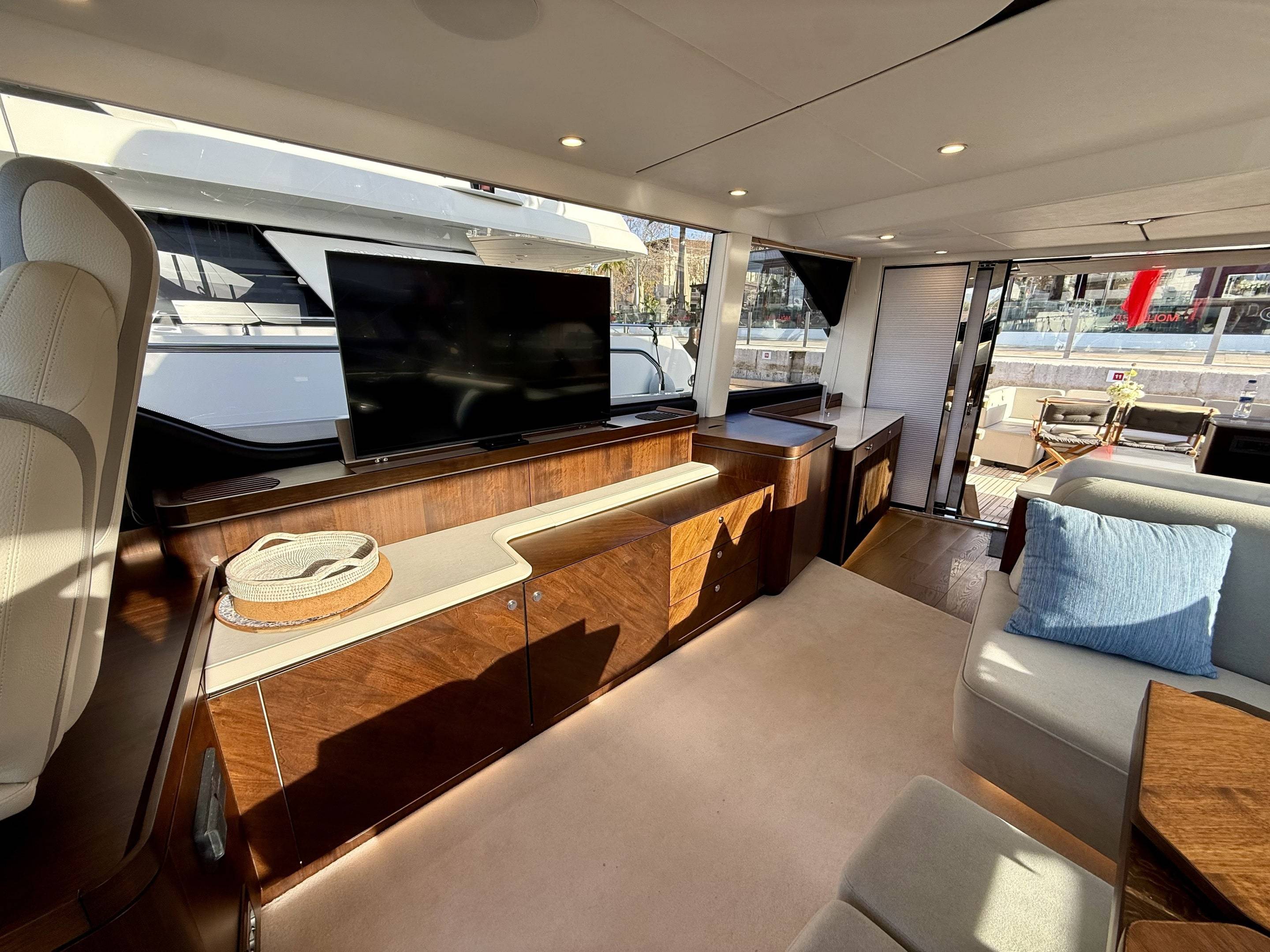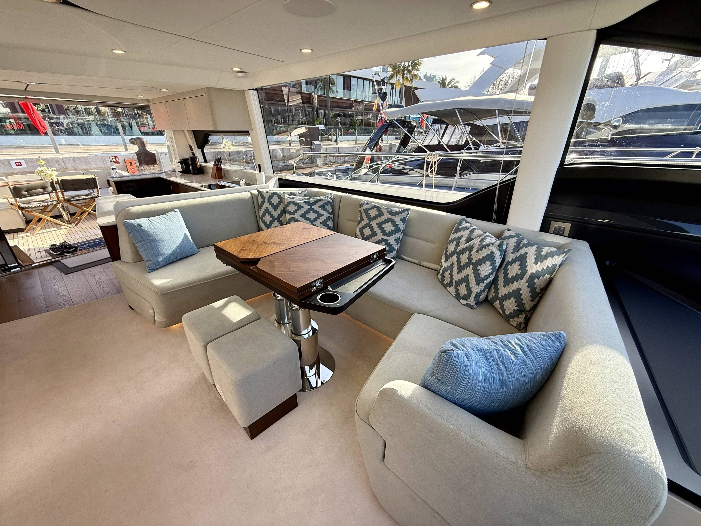 Welcoming a new to market LIKE NEW CONDITION 2025 Fairline Squadron 58: Fitted with twin Volvo Penta D13-100hp engines, currently running with just 240 hours. This is an extremely high specification including the top end interior finishes and all the technology too. The long list of additional options include: Gyroscopic Stabiliser / Hide and slide platform / Hydraulic passerelle / Beach club balconies, Modula furniture, glass transom and electric BBQ/Sink to aft / Flybridge hard top with integrated sliding roof / White LED mood lighting throughout / Underwater lights / Electric adjusting cockpit table / Crew cabin / Third control station / Fusion audio surround sound system / Stainless steel ultra anchor upgrade / Twin Garmin plotters to both helms / Joystick control / Humphries automatic trim tabs / Saloon drop down windows to galley area and forward saloon / Satin walnut interior wood / Deep pile cream carpets / Additional sideboard to saloon in lieu of sofa / Smart TVs to saloon and all guests cabins and the list is endless. This is one of the nicest colour pallet specifications chosen to the market and a full specification with all the technical upgrades included. A fantastic opportunity to own one of the first second hand 58's still with warranty on the market and in Like new condition! Contact BoatsCo today for all the details and to arrange a viewing.