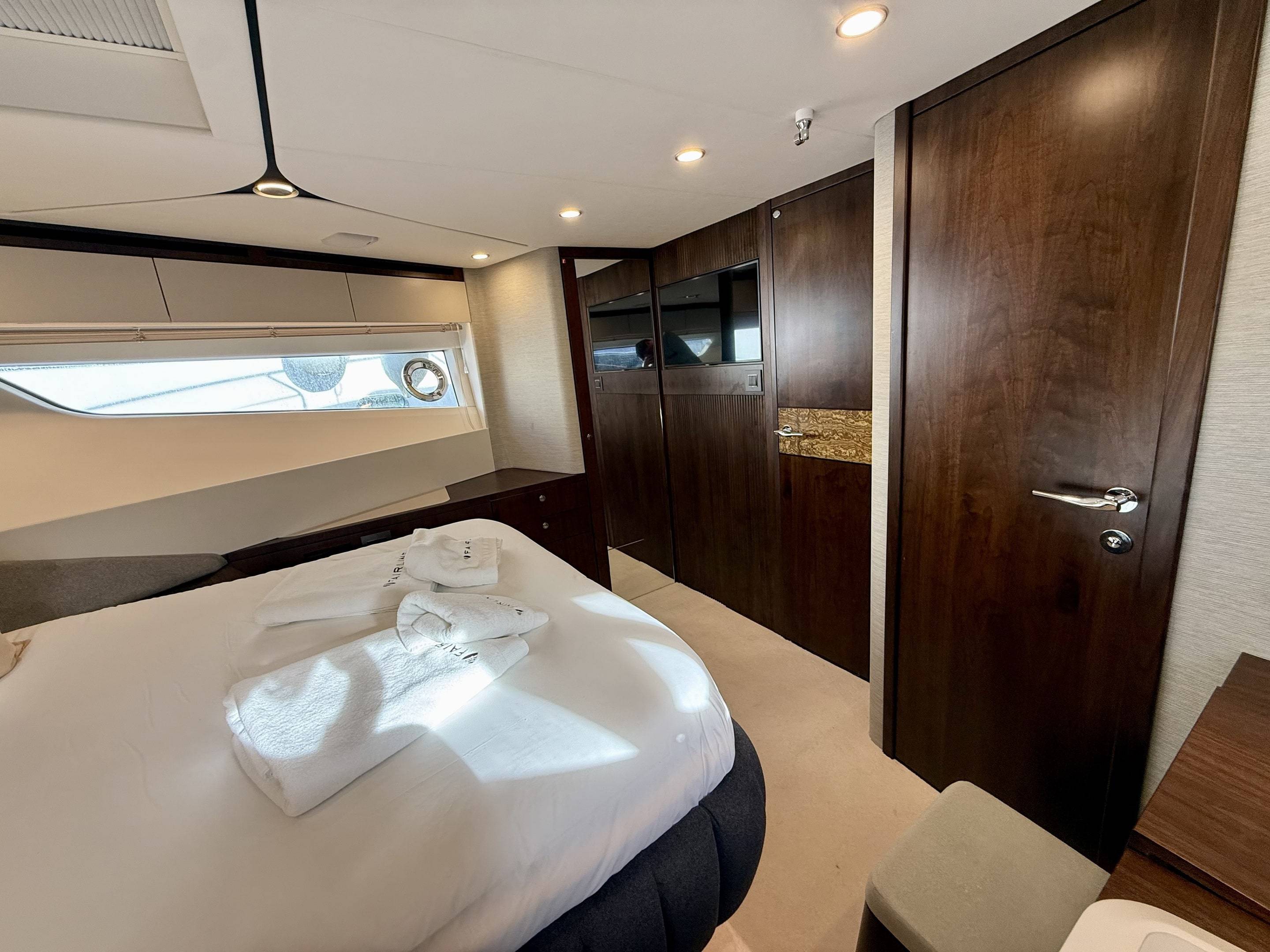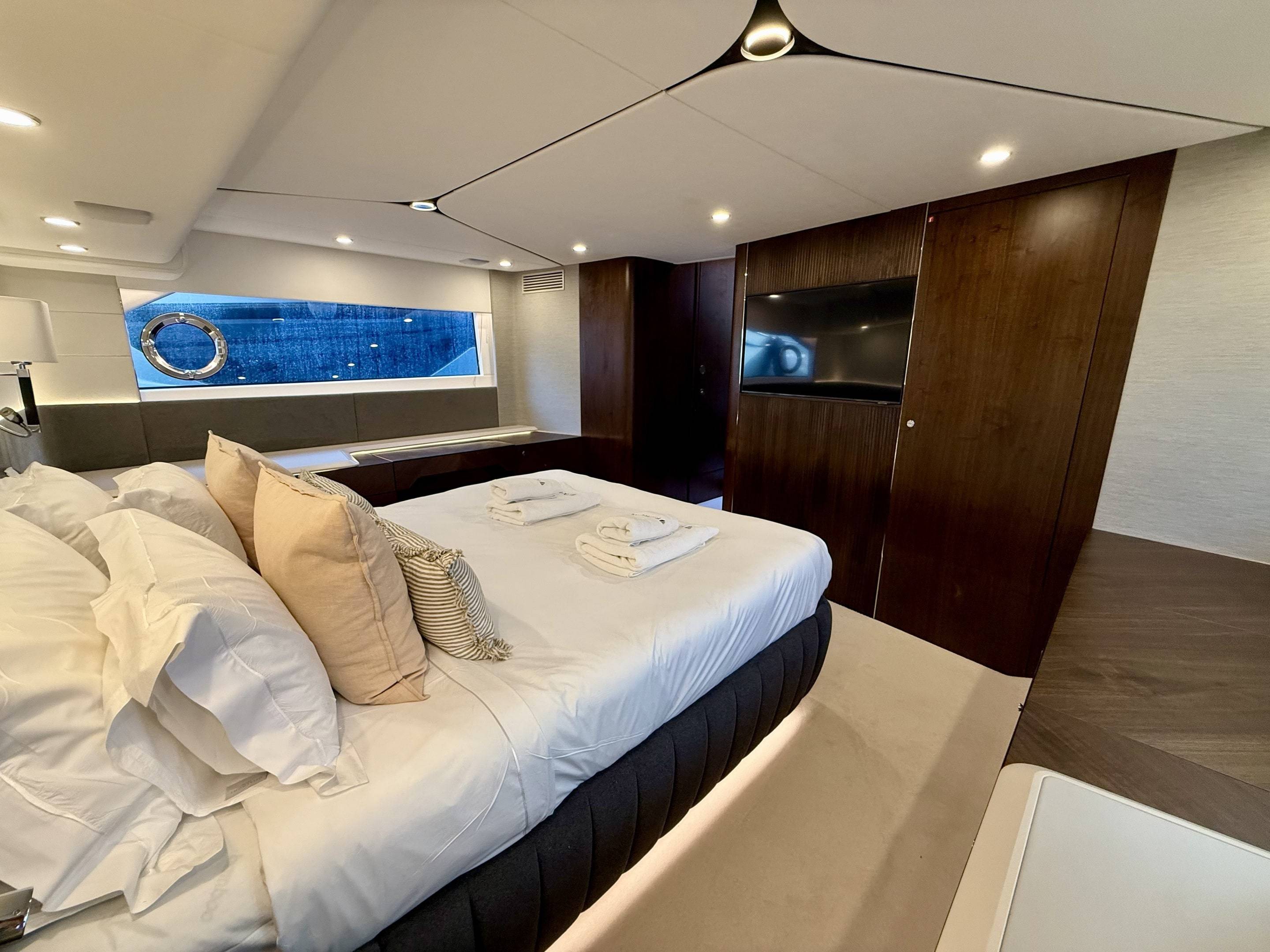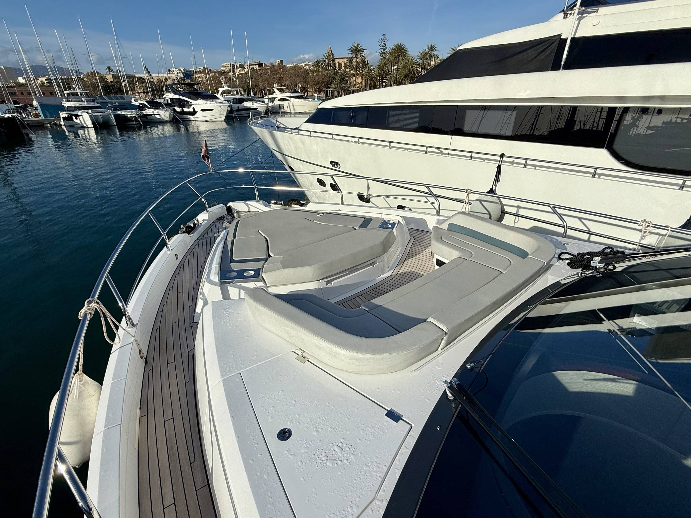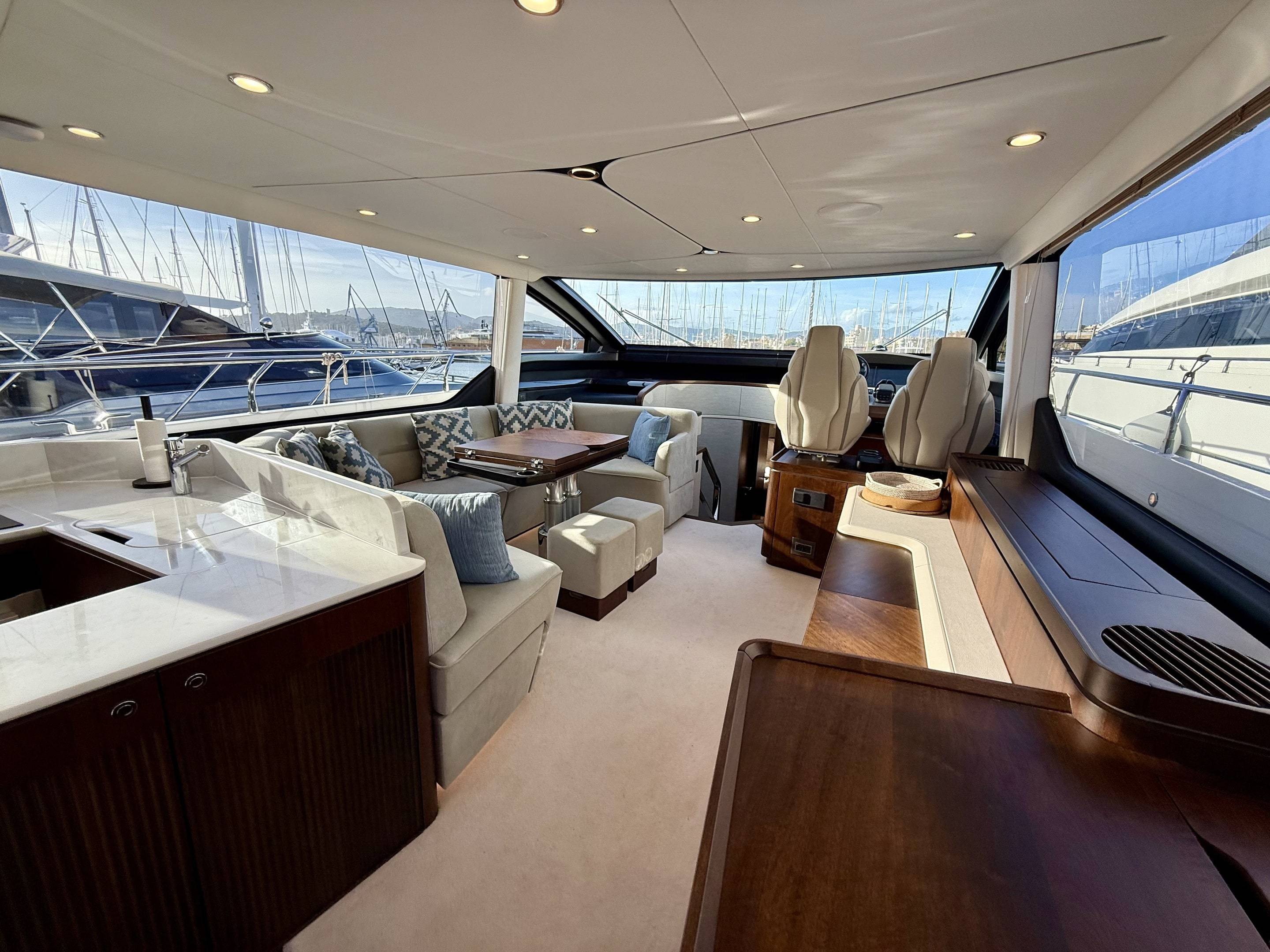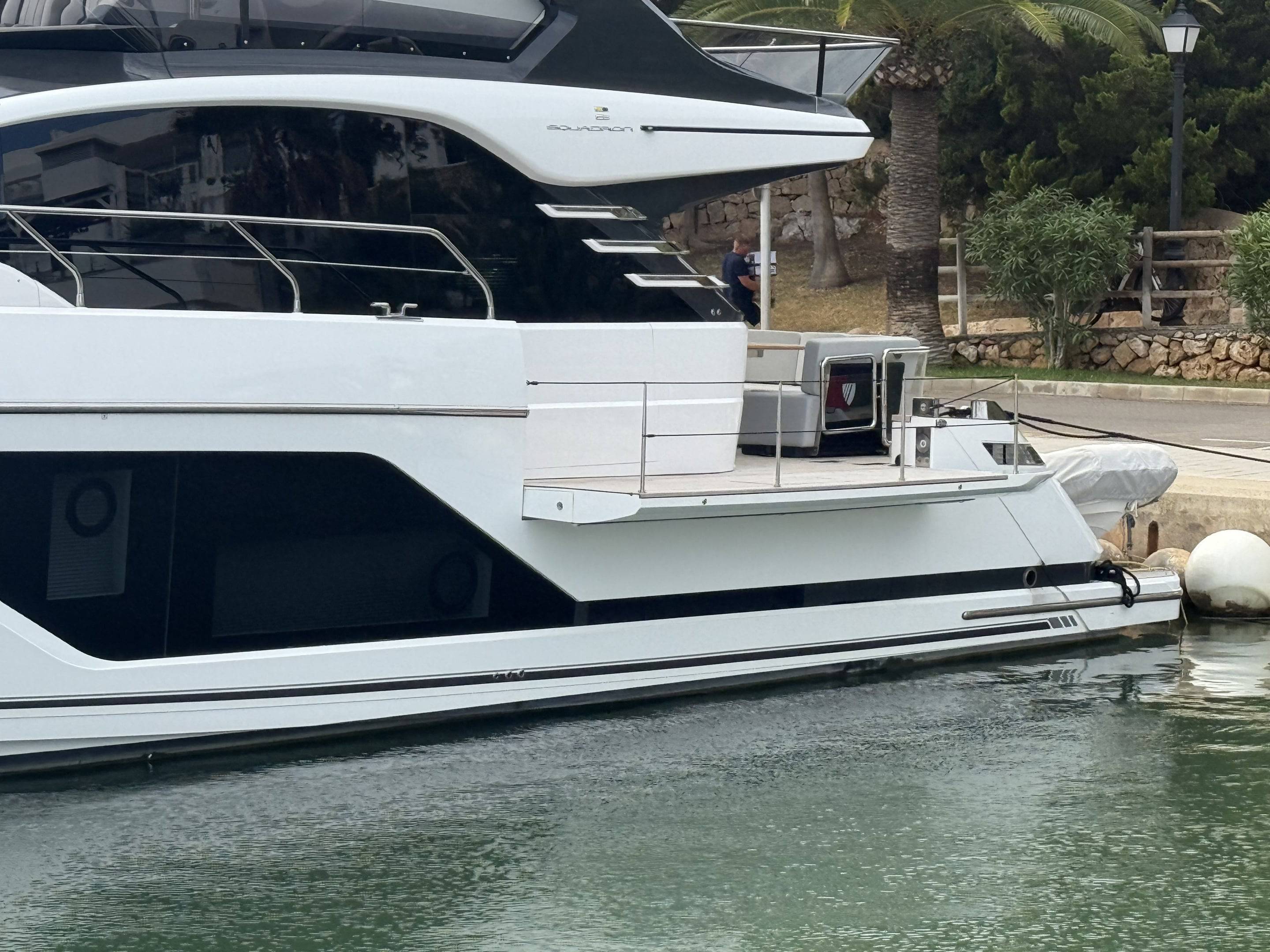 Welcoming a new to market LIKE NEW CONDITION 2025 Fairline Squadron 58: Fitted with twin Volvo Penta D13-100hp engines, currently running with just 240 hours. This is an extremely high specification including the top end interior finishes and all the technology too. The long list of additional options include: Gyroscopic Stabiliser / Hide and slide platform / Hydraulic passerelle / Beach club balconies, Modula furniture, glass transom and electric BBQ/Sink to aft / Flybridge hard top with integrated sliding roof / White LED mood lighting throughout / Underwater lights / Electric adjusting cockpit table / Crew cabin / Third control station / Fusion audio surround sound system / Stainless steel ultra anchor upgrade / Twin Garmin plotters to both helms / Joystick control / Humphries automatic trim tabs / Saloon drop down windows to galley area and forward saloon / Satin walnut interior wood / Deep pile cream carpets / Additional sideboard to saloon in lieu of sofa / Smart TVs to saloon and all guests cabins and the list is endless. This is one of the nicest colour pallet specifications chosen to the market and a full specification with all the technical upgrades included. A fantastic opportunity to own one of the first second hand 58's still with warranty on the market and in Like new condition! Contact BoatsCo today for all the details and to arrange a viewing.