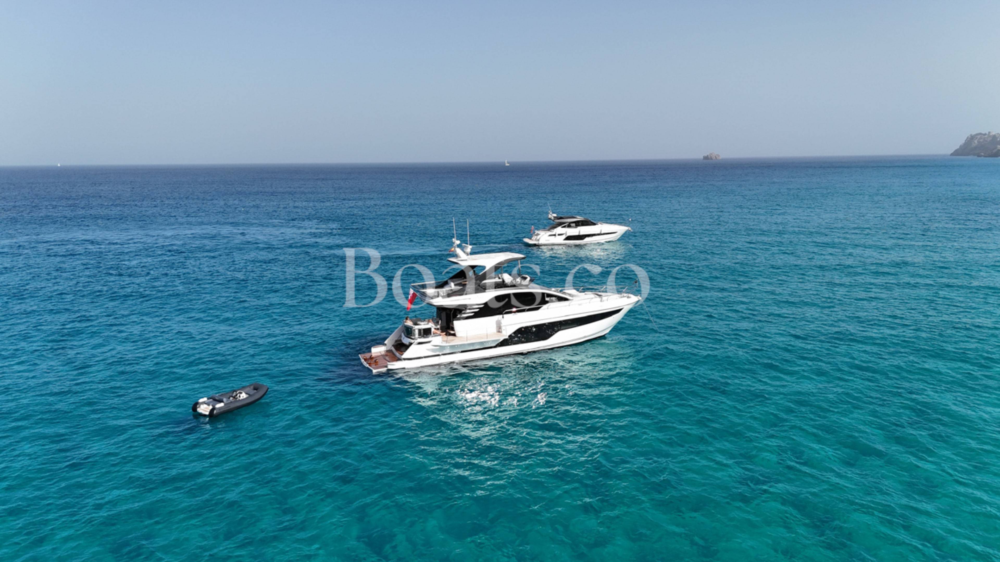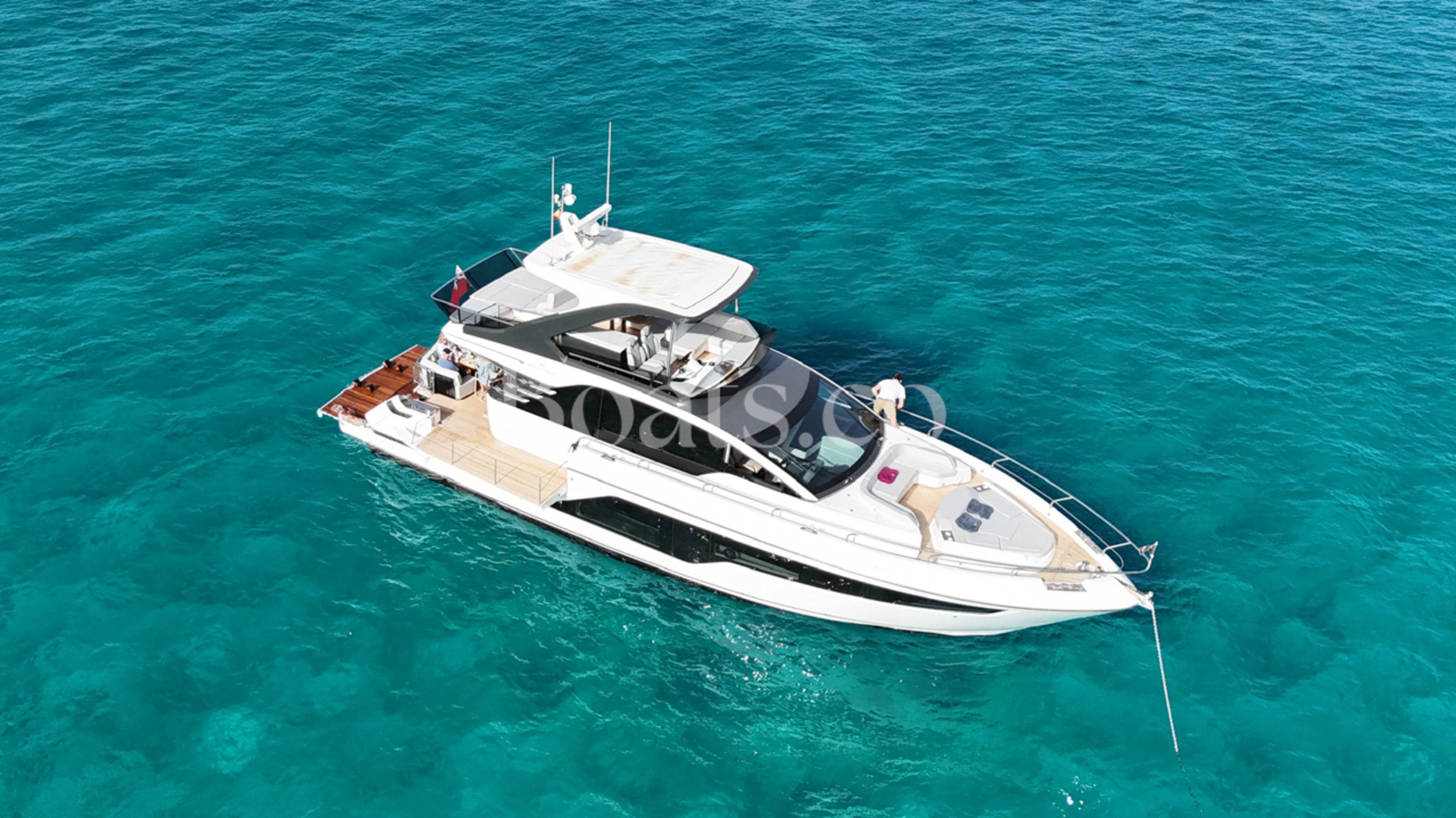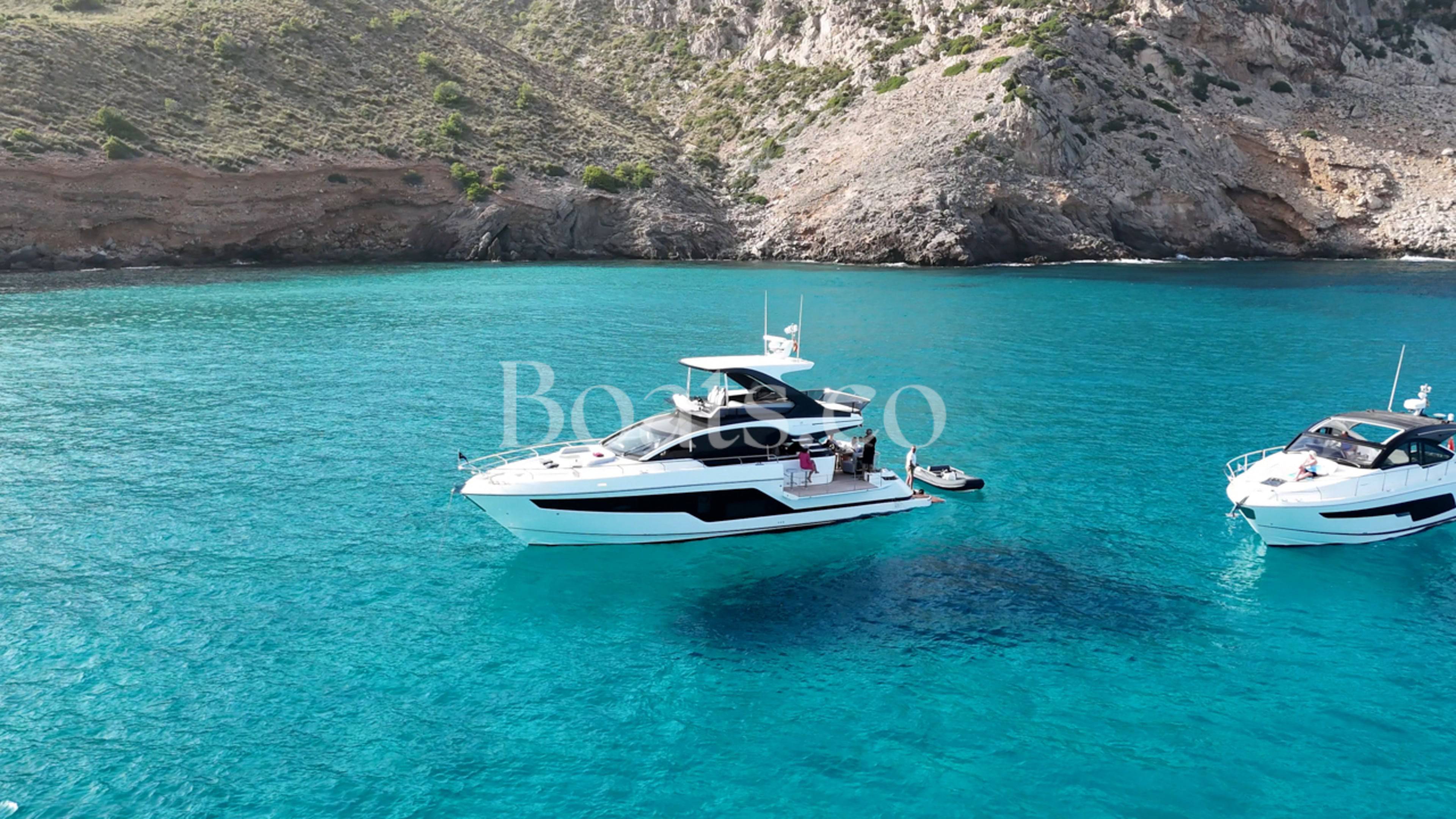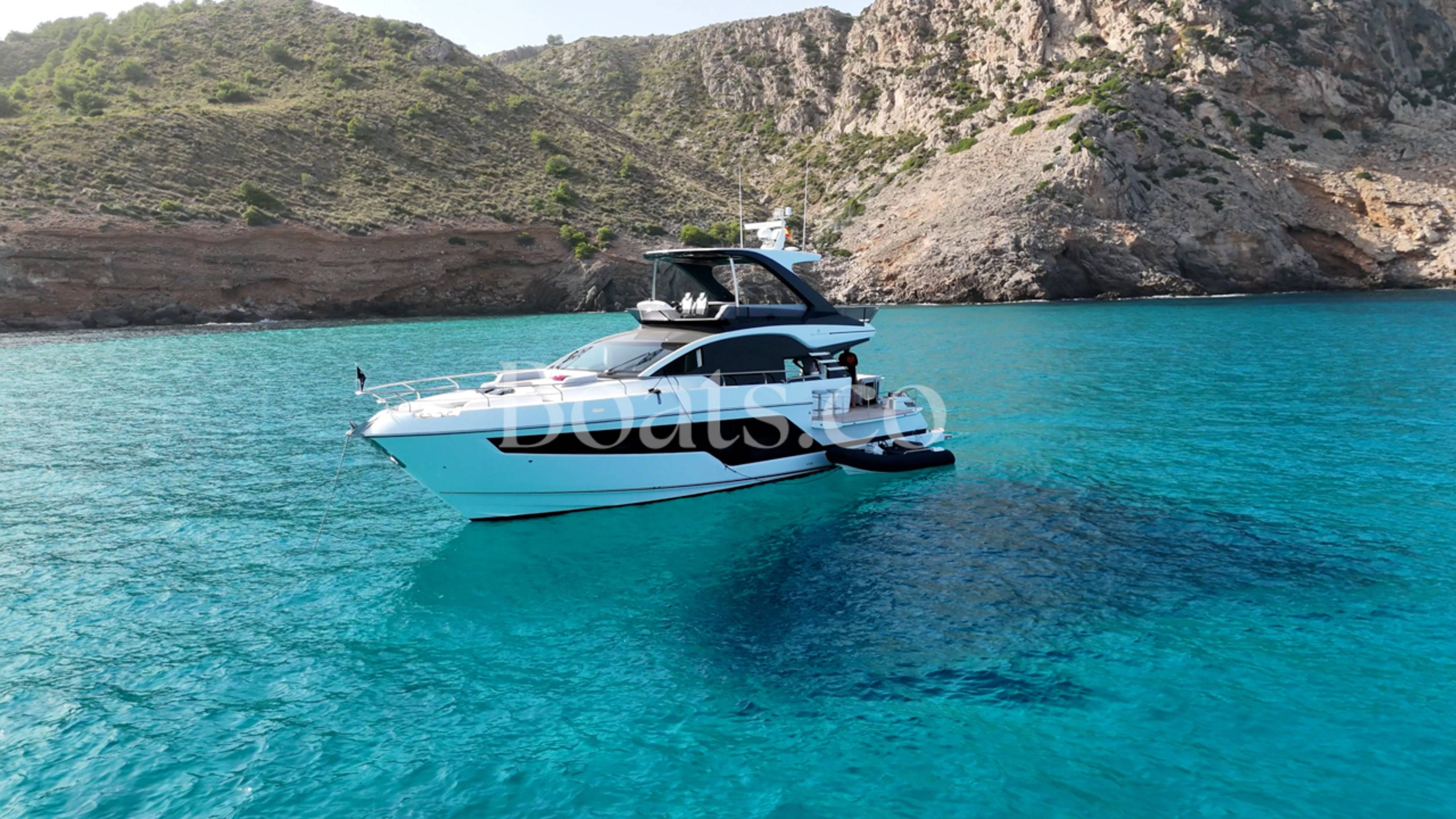 Welcoming a new to market LIKE NEW CONDITION 2025 Fairline Squadron 58: Fitted with twin Volvo Penta D13-100hp engines, currently running with just 240 hours. This is an extremely high specification including the top end interior finishes and all the technology too. The long list of additional options include: Gyroscopic Stabiliser / Hide and slide platform / Hydraulic passerelle / Beach club balconies, Modula furniture, glass transom and electric BBQ/Sink to aft / Flybridge hard top with integrated sliding roof / White LED mood lighting throughout / Underwater lights / Electric adjusting cockpit table / Crew cabin / Third control station / Fusion audio surround sound system / Stainless steel ultra anchor upgrade / Twin Garmin plotters to both helms / Joystick control / Humphries automatic trim tabs / Saloon drop down windows to galley area and forward saloon / Satin walnut interior wood / Deep pile cream carpets / Additional sideboard to saloon in lieu of sofa / Smart TVs to saloon and all guests cabins and the list is endless. This is one of the nicest colour pallet specifications chosen to the market and a full specification with all the technical upgrades included. A fantastic opportunity to own one of the first second hand 58's still with warranty on the market and in Like new condition! Contact BoatsCo today for all the details and to arrange a viewing.