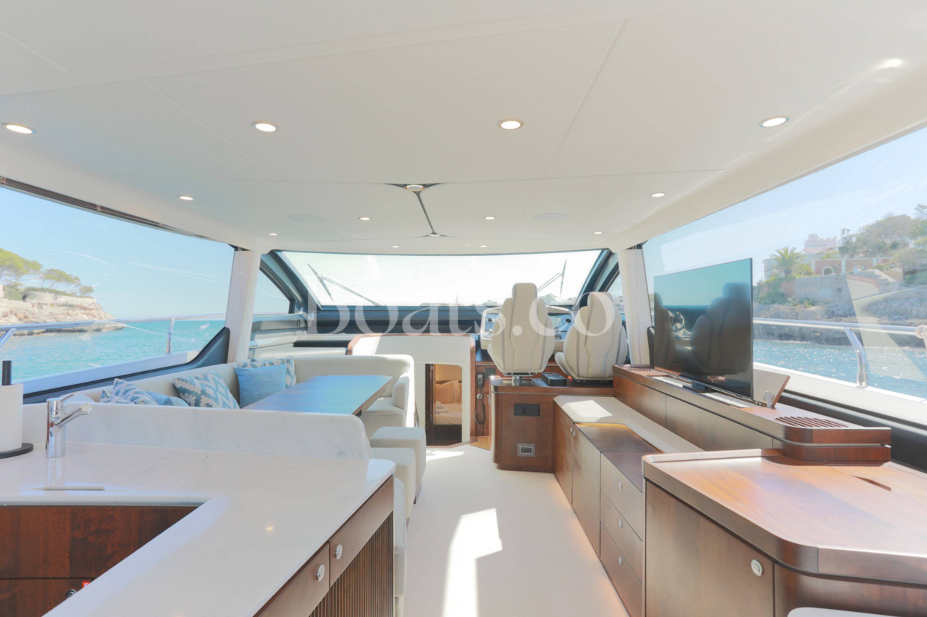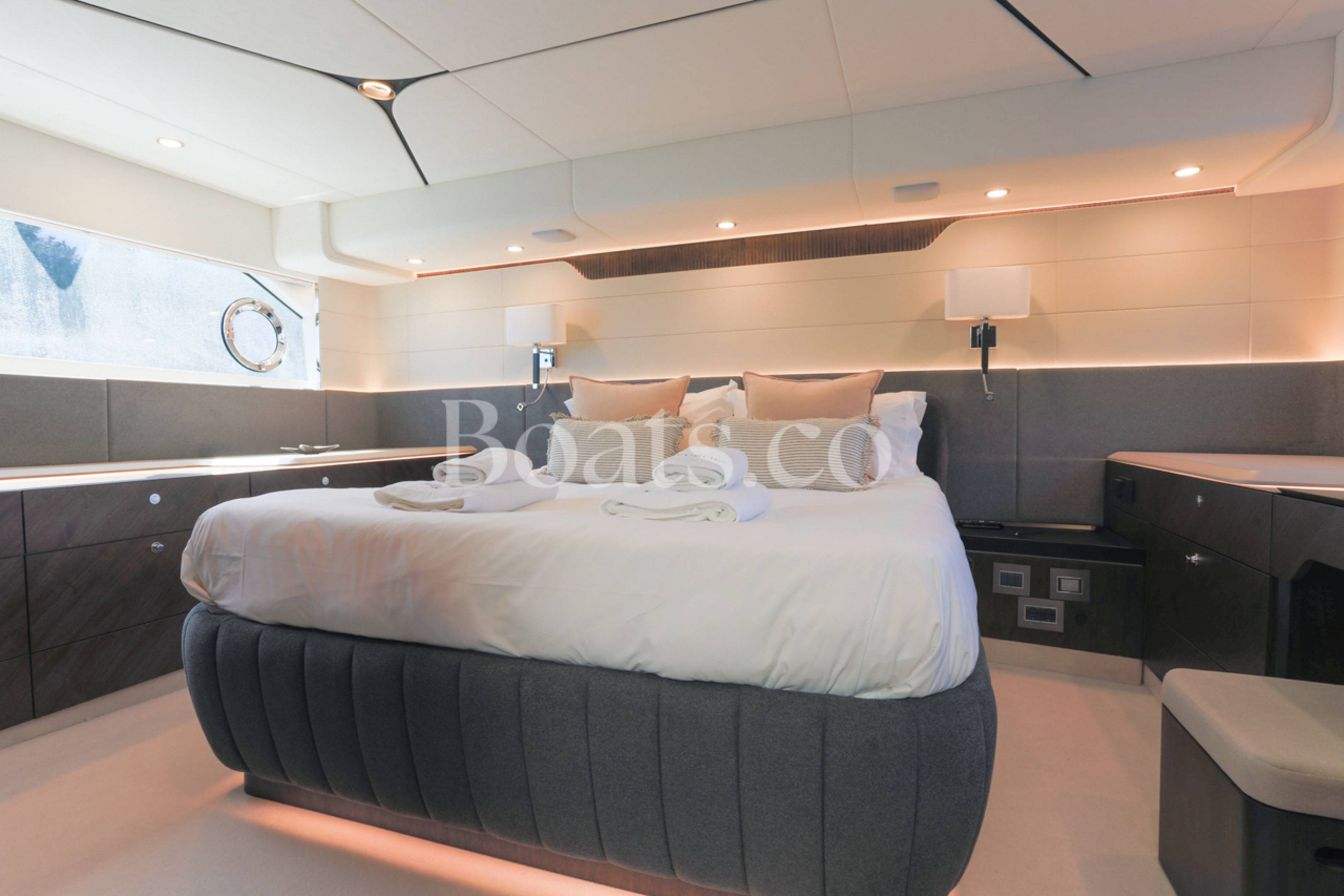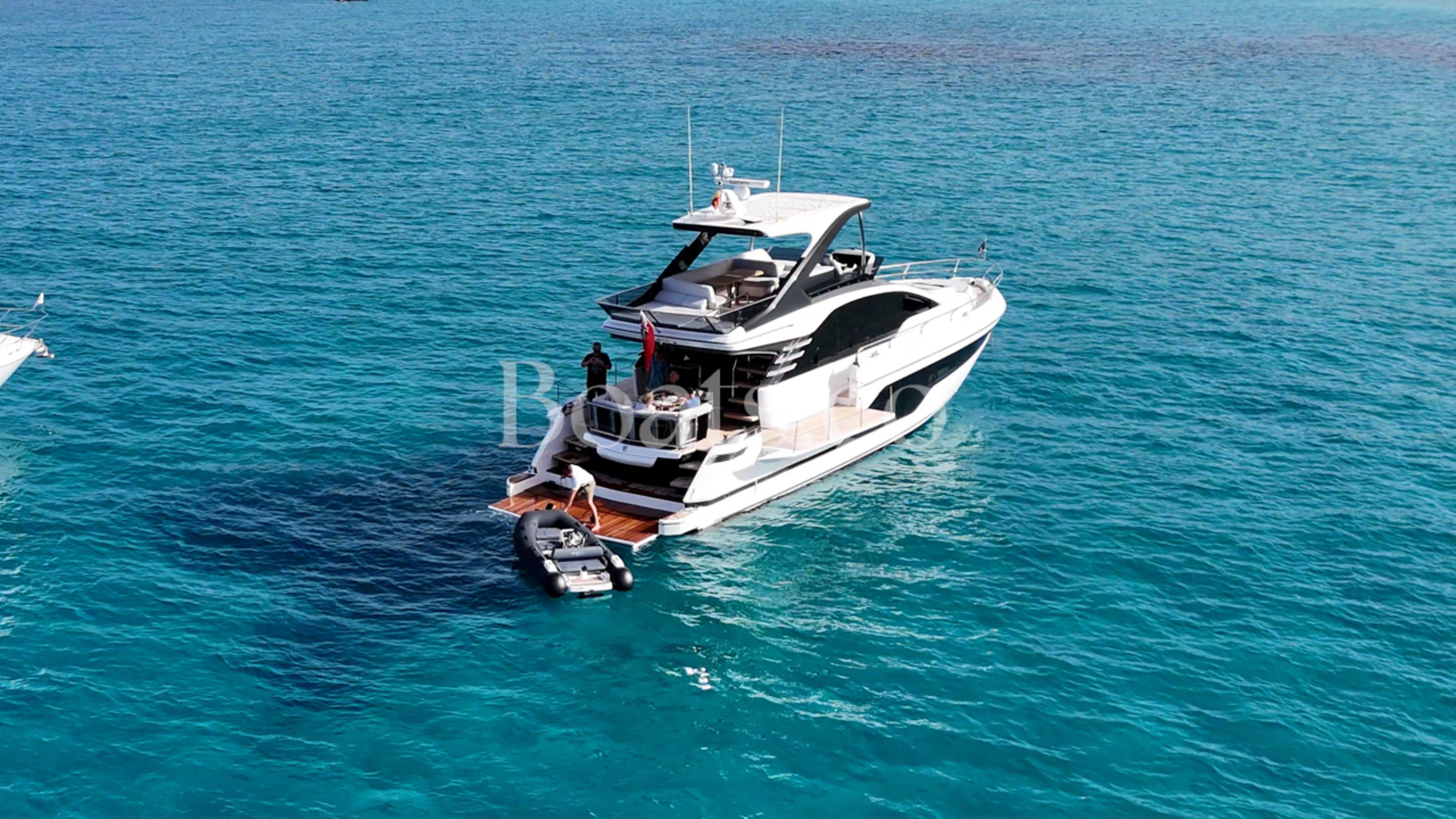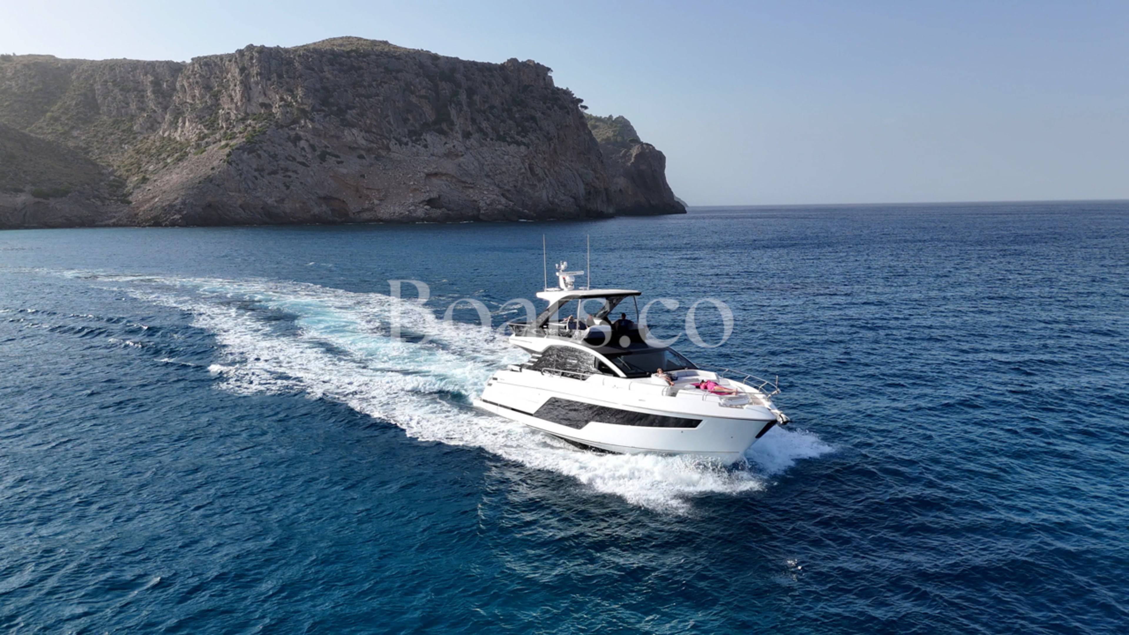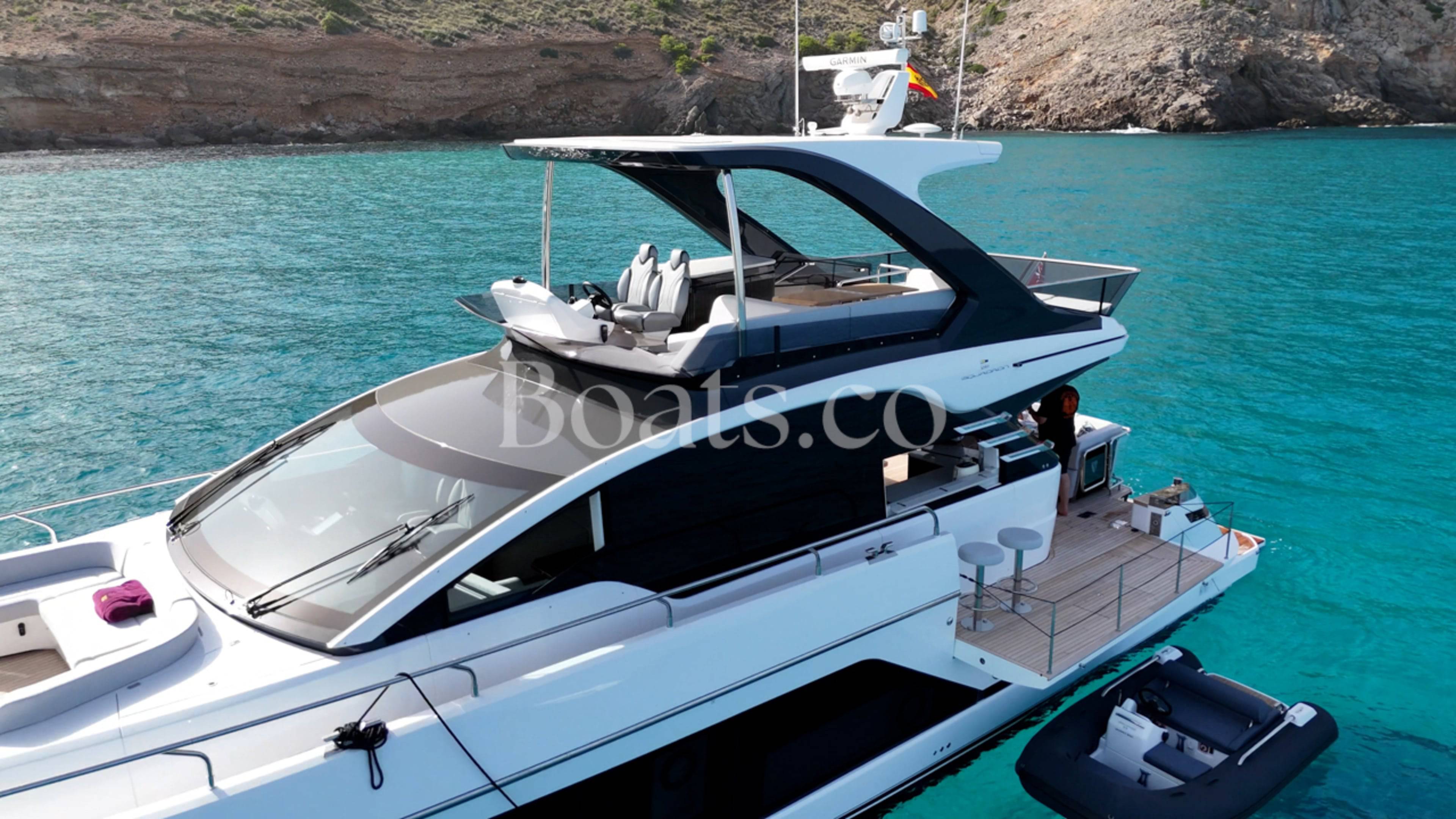 Welcoming a new to market LIKE NEW CONDITION 2025 Fairline Squadron 58: Fitted with twin Volvo Penta D13-100hp engines, currently running with just 240 hours. This is an extremely high specification including the top end interior finishes and all the technology too. The long list of additional options include: Gyroscopic Stabiliser / Hide and slide platform / Hydraulic passerelle / Beach club balconies, Modula furniture, glass transom and electric BBQ/Sink to aft / Flybridge hard top with integrated sliding roof / White LED mood lighting throughout / Underwater lights / Electric adjusting cockpit table / Crew cabin / Third control station / Fusion audio surround sound system / Stainless steel ultra anchor upgrade / Twin Garmin plotters to both helms / Joystick control / Humphries automatic trim tabs / Saloon drop down windows to galley area and forward saloon / Satin walnut interior wood / Deep pile cream carpets / Additional sideboard to saloon in lieu of sofa / Smart TVs to saloon and all guests cabins and the list is endless. This is one of the nicest colour pallet specifications chosen to the market and a full specification with all the technical upgrades included. A fantastic opportunity to own one of the first second hand 58's still with warranty on the market and in Like new condition! Contact BoatsCo today for all the details and to arrange a viewing.