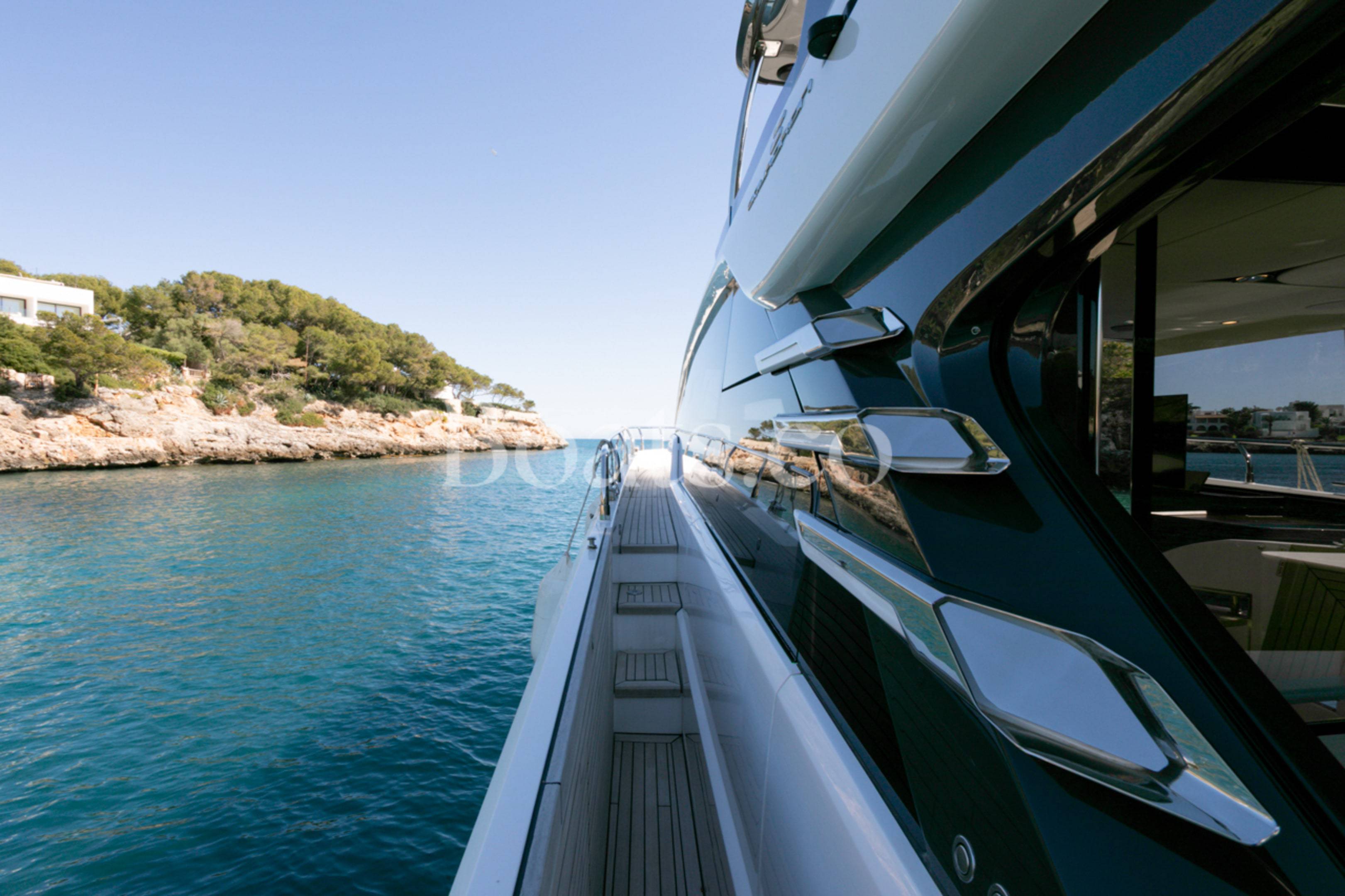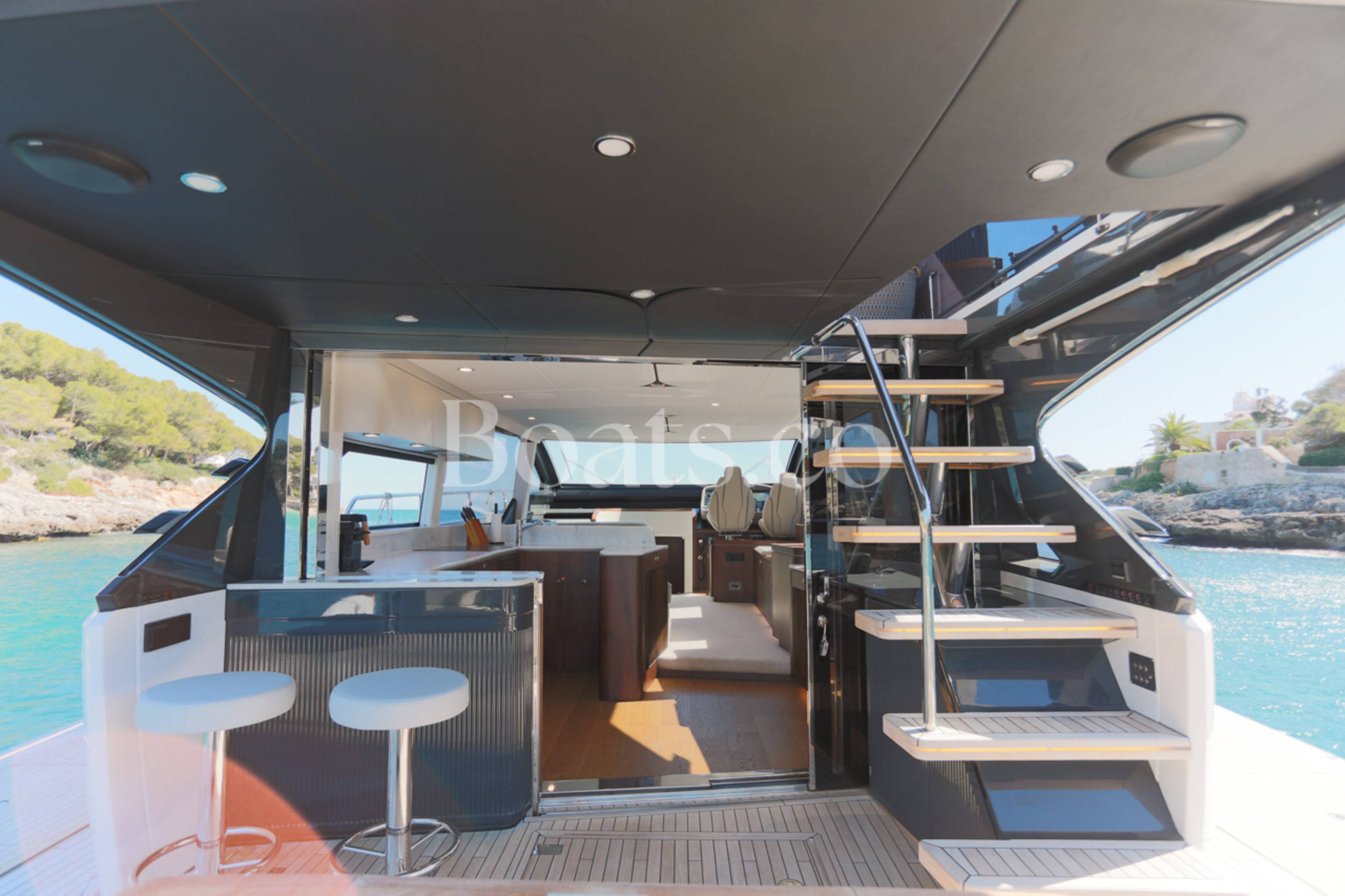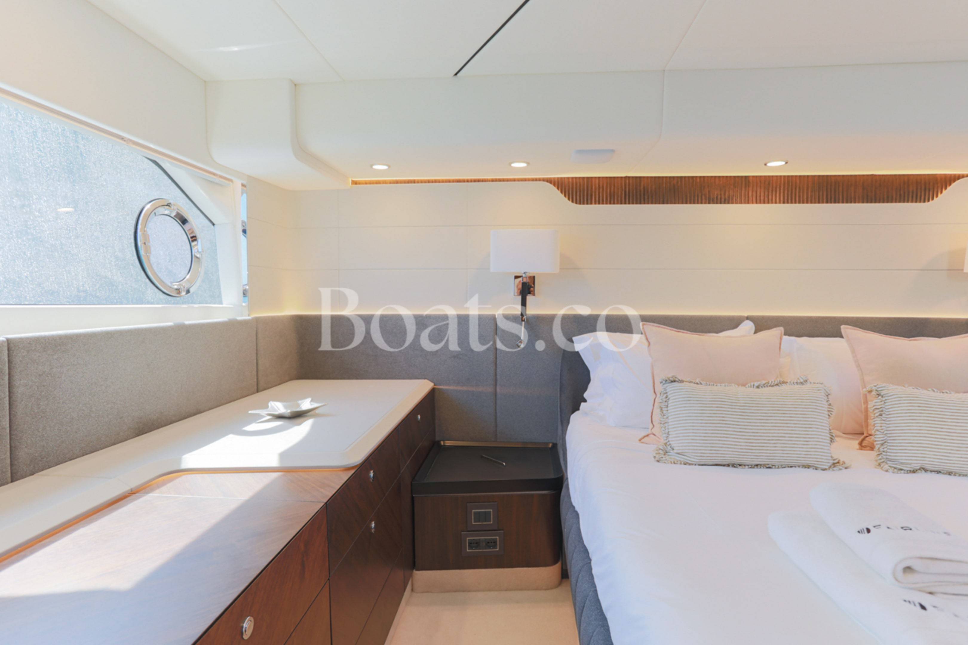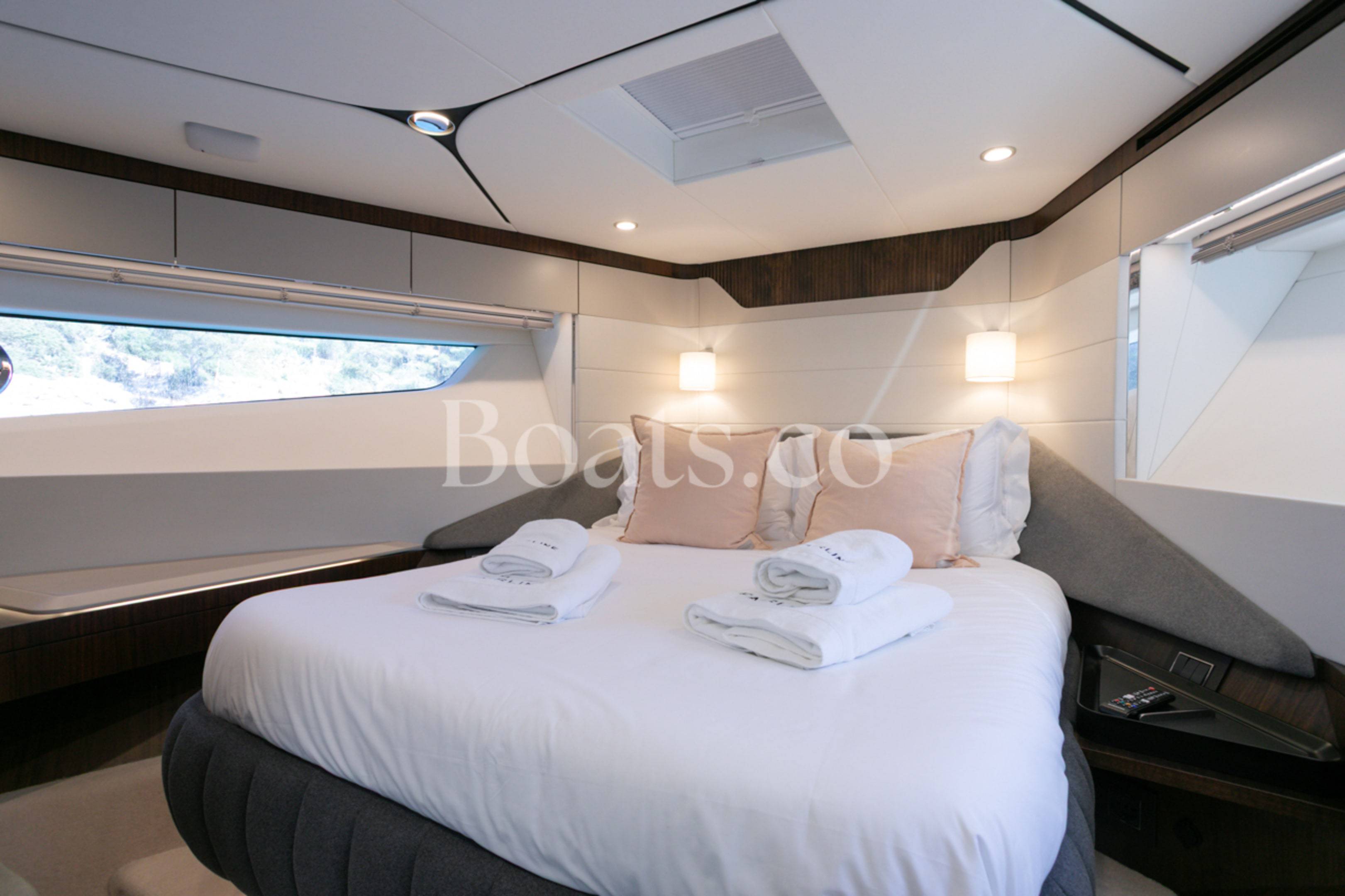 Welcoming a new to market LIKE NEW CONDITION 2025 Fairline Squadron 58: Fitted with twin Volvo Penta D13-100hp engines, currently running with just 240 hours. This is an extremely high specification including the top end interior finishes and all the technology too. The long list of additional options include: Gyroscopic Stabiliser / Hide and slide platform / Hydraulic passerelle / Beach club balconies, Modula furniture, glass transom and electric BBQ/Sink to aft / Flybridge hard top with integrated sliding roof / White LED mood lighting throughout / Underwater lights / Electric adjusting cockpit table / Crew cabin / Third control station / Fusion audio surround sound system / Stainless steel ultra anchor upgrade / Twin Garmin plotters to both helms / Joystick control / Humphries automatic trim tabs / Saloon drop down windows to galley area and forward saloon / Satin walnut interior wood / Deep pile cream carpets / Additional sideboard to saloon in lieu of sofa / Smart TVs to saloon and all guests cabins and the list is endless. This is one of the nicest colour pallet specifications chosen to the market and a full specification with all the technical upgrades included. A fantastic opportunity to own one of the first second hand 58's still with warranty on the market and in Like new condition! Contact BoatsCo today for all the details and to arrange a viewing.