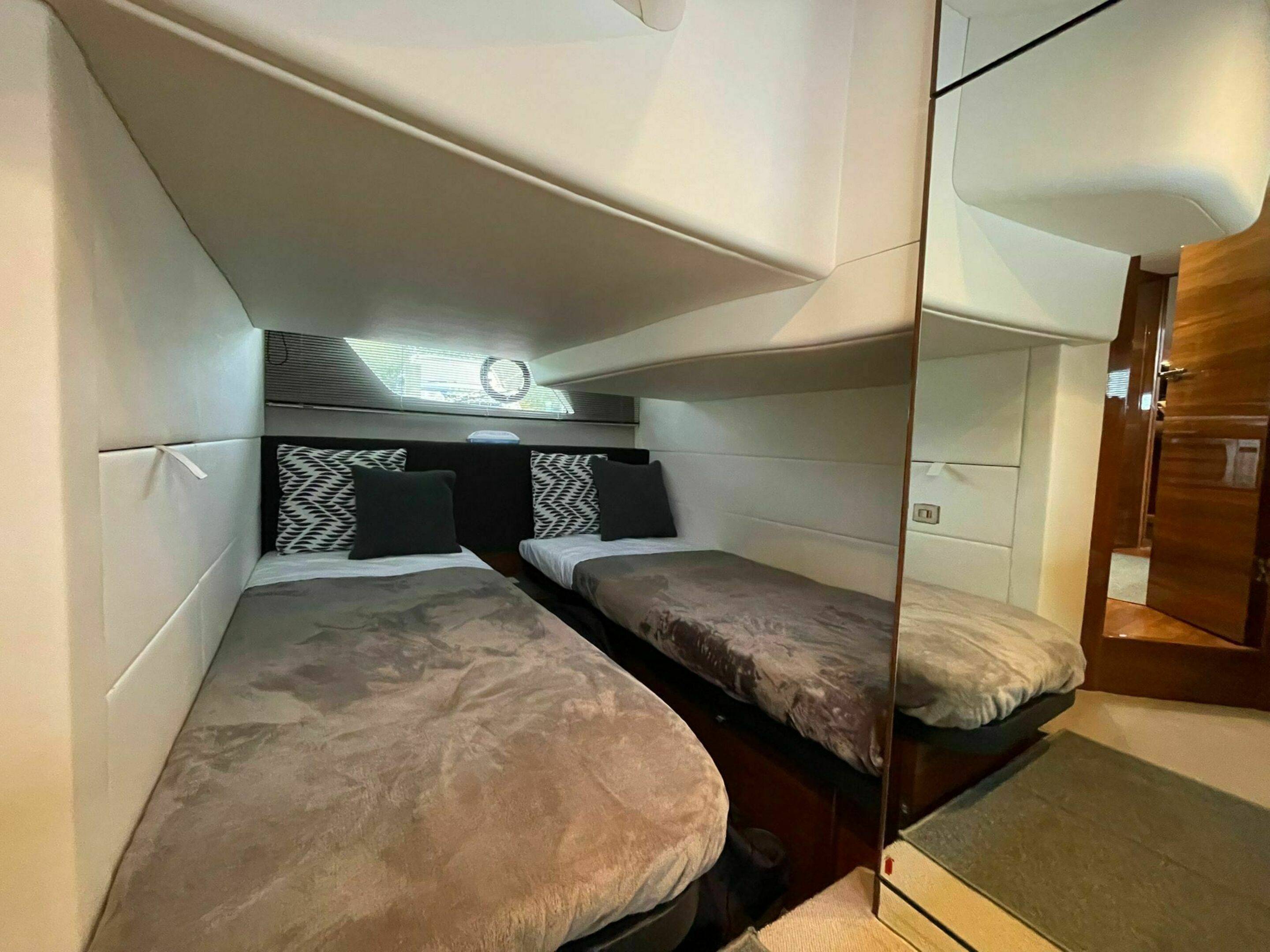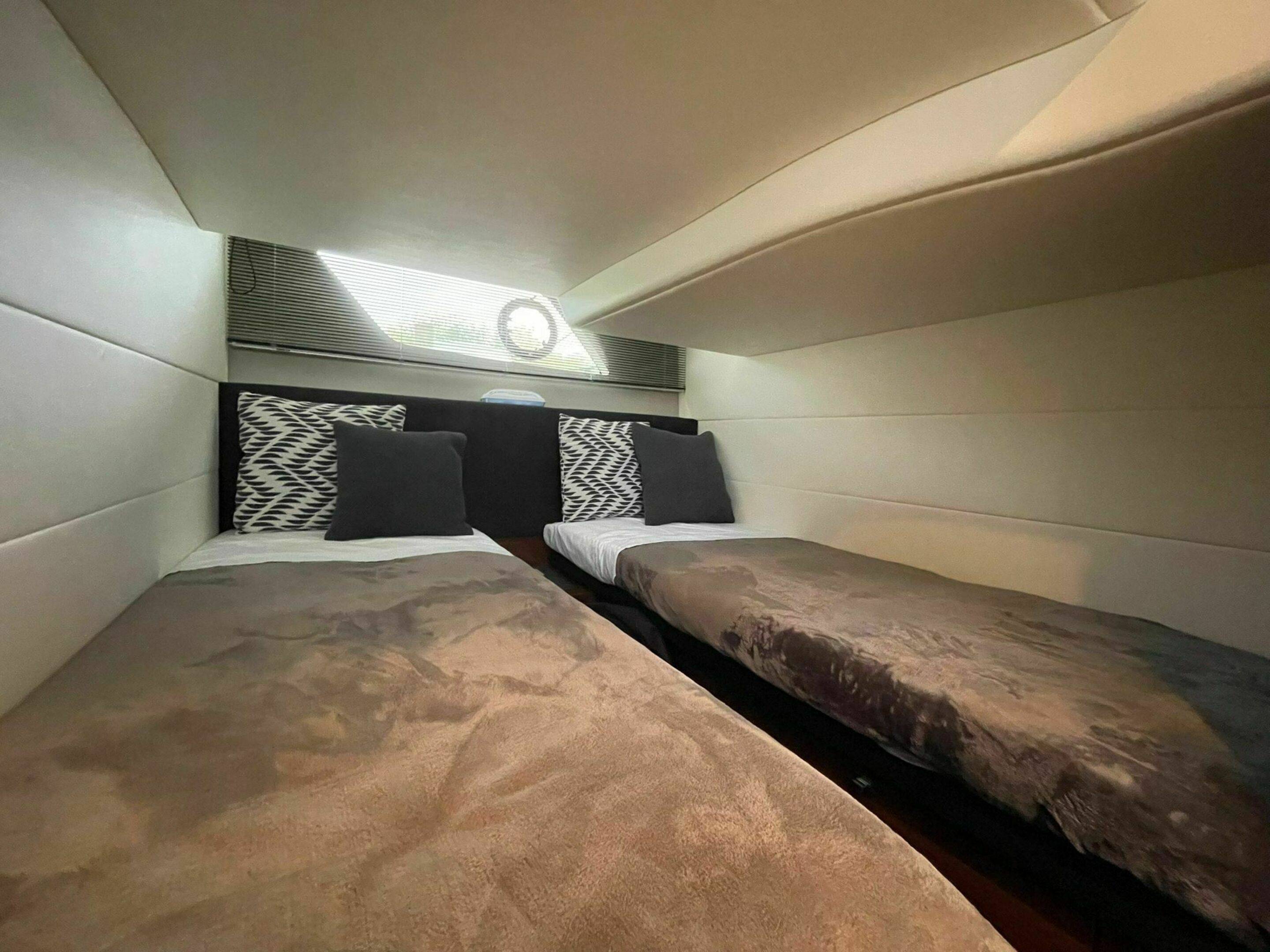 Accommodation - Four berth accommodation with a forward master double berth. Twin berth and toilet & shower cubicle