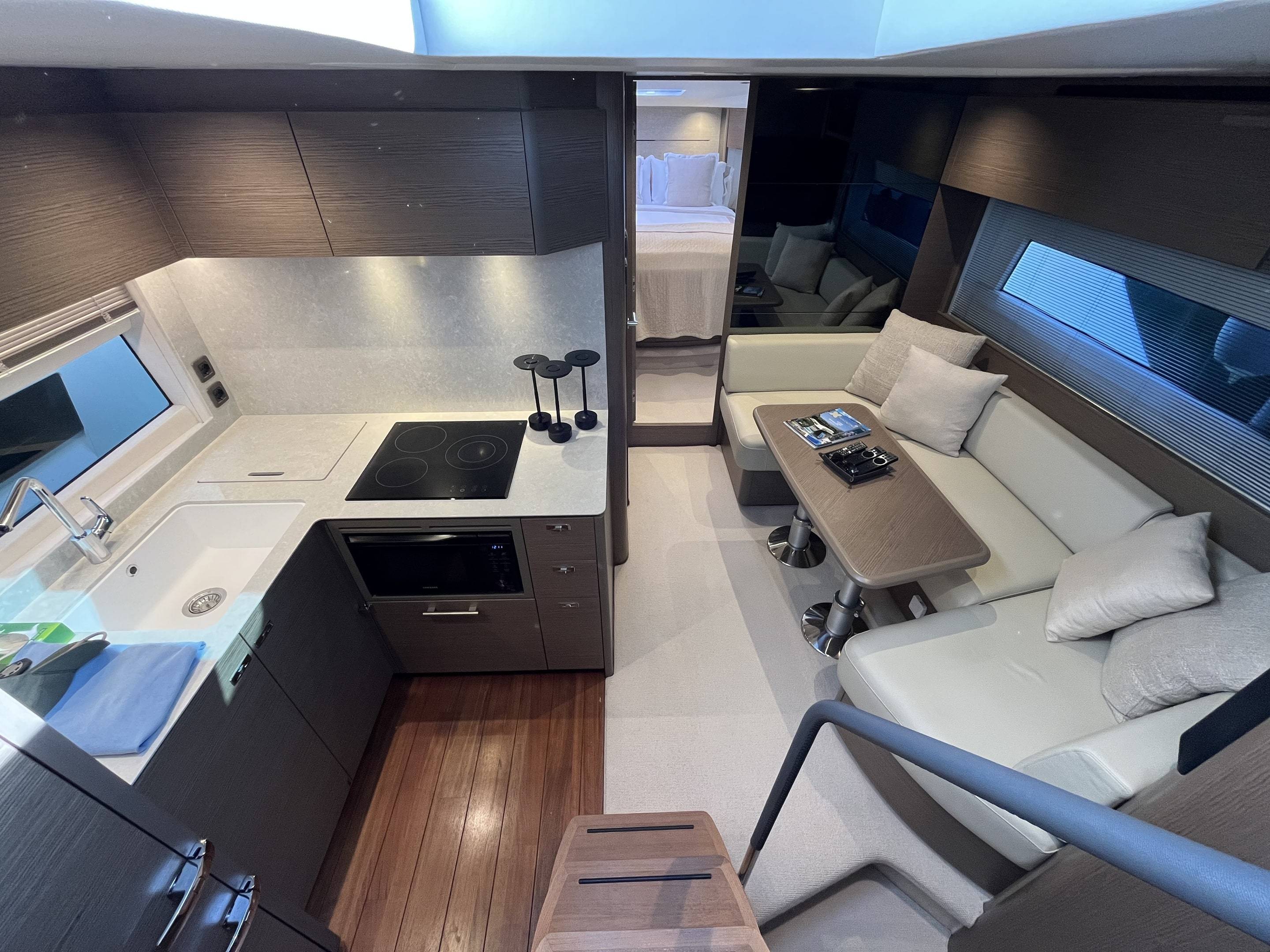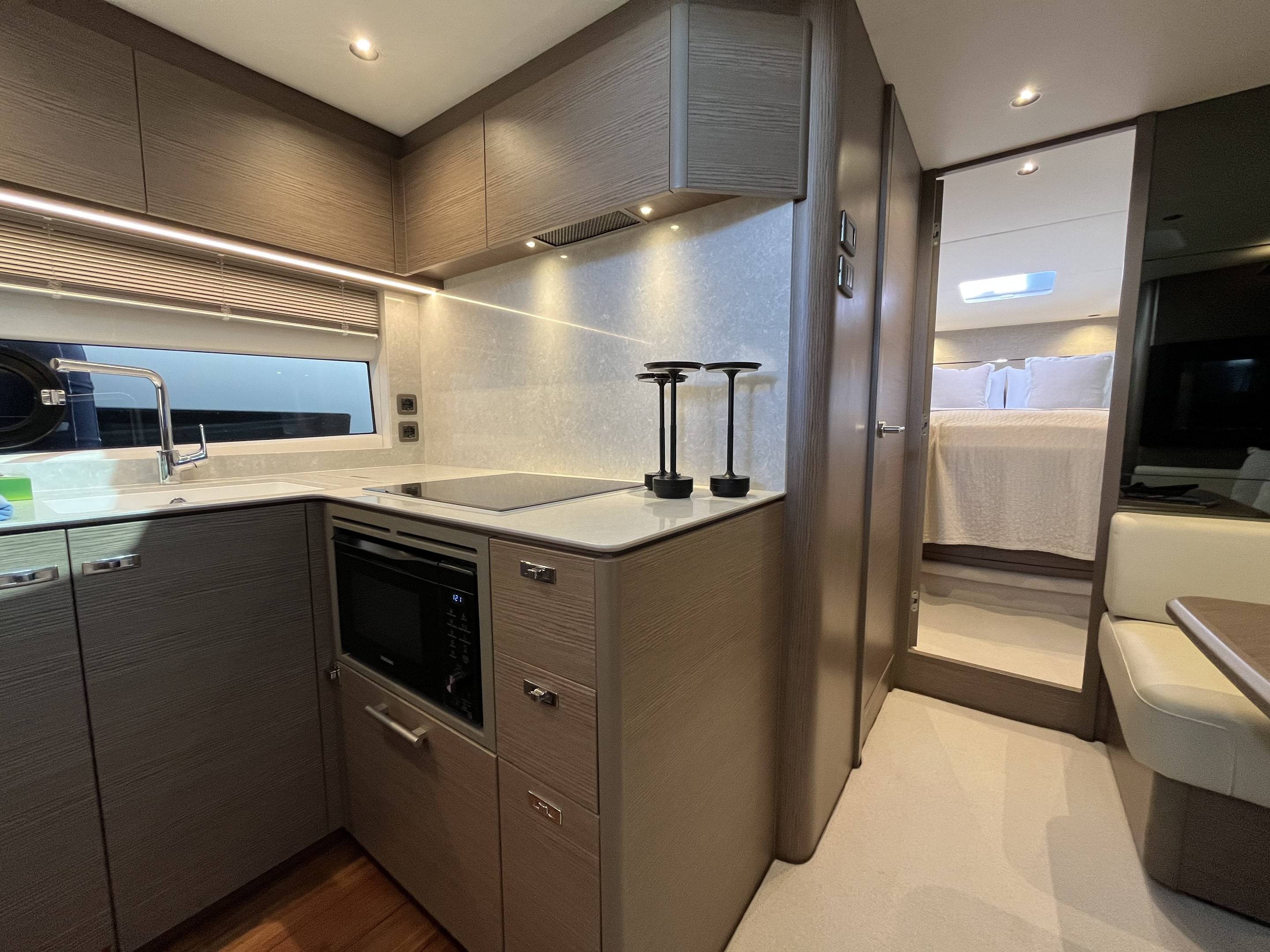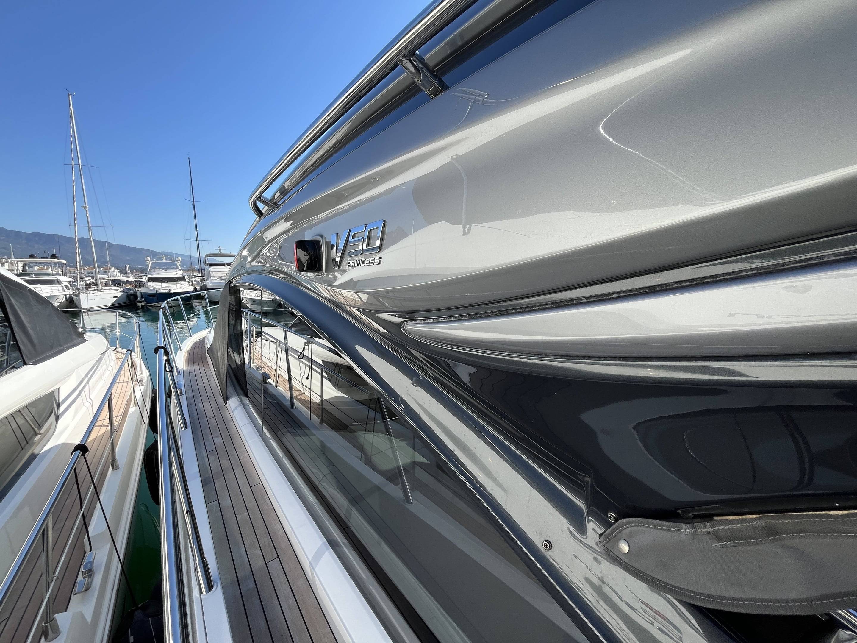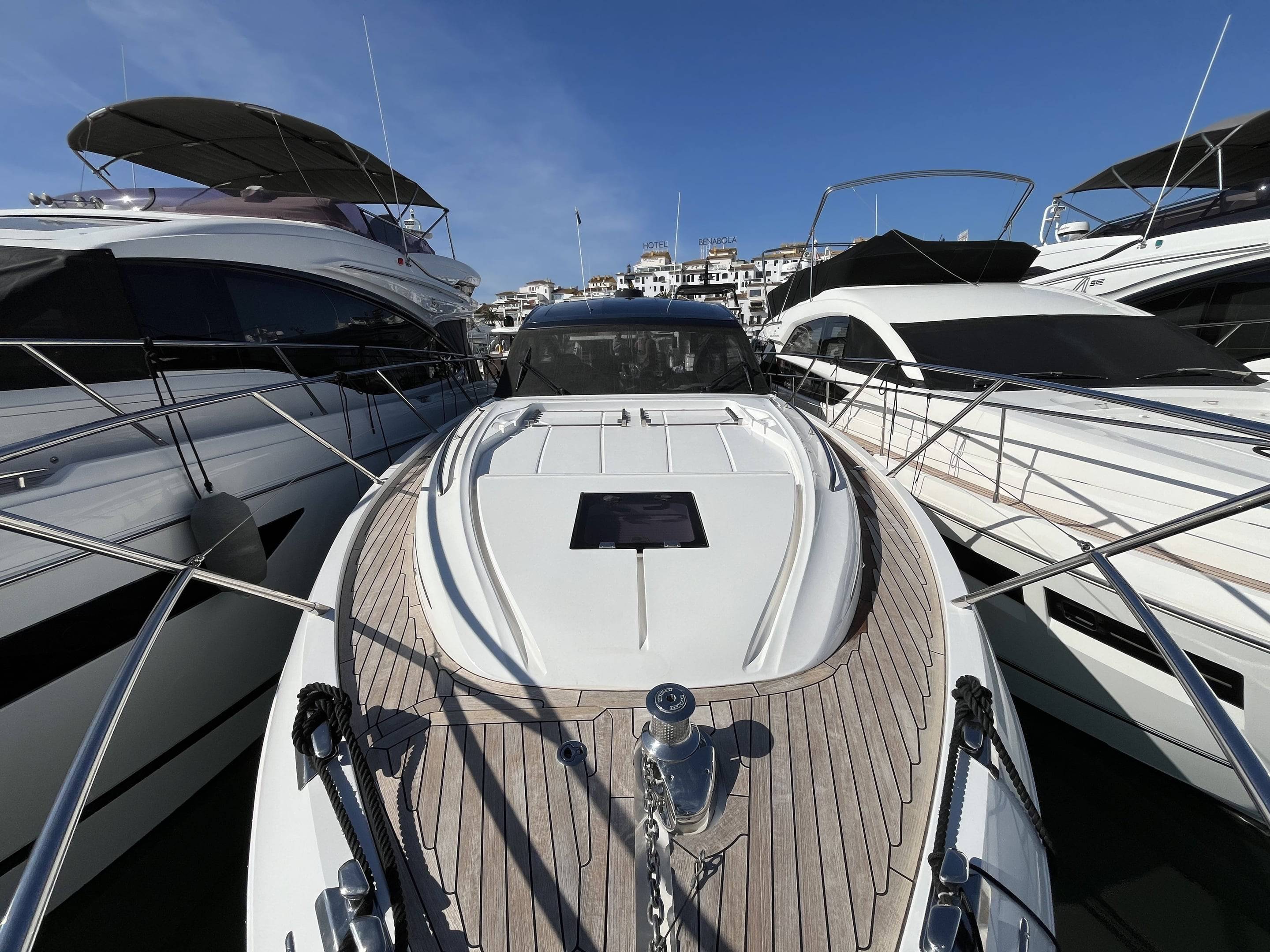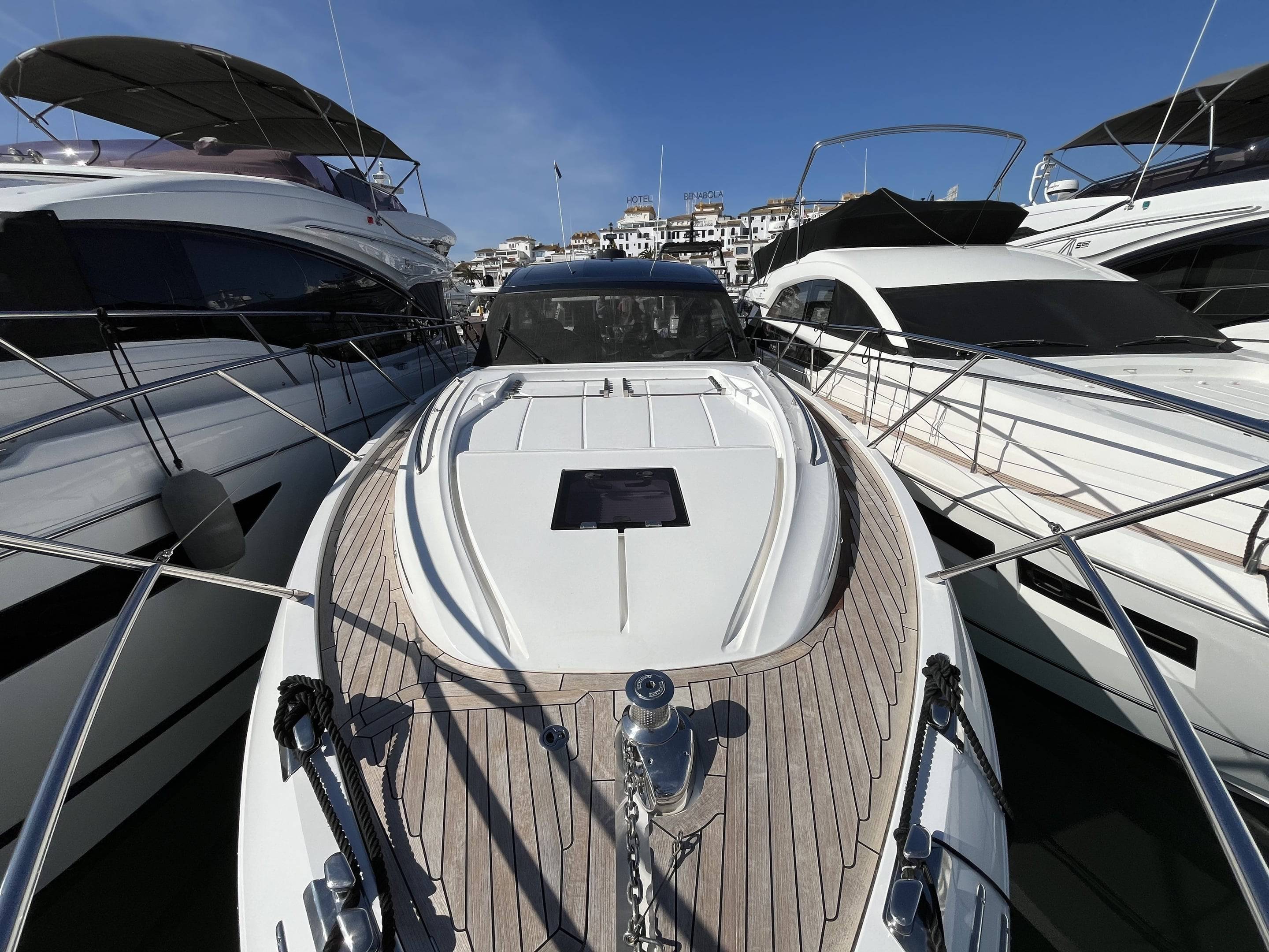 As new condition, with every option chosen 2023 Princess V50 open fitted with twin Volvo Penta IPS650 480hp engines currently running approx 250 engine hours. This particular V50 is a standout against the rest with every option and more, as well as being EU Spanish Tax Paid. Some highlights of her long list of extras include: Seakeeper Gyroscopic stabiliser / Water maker / Hydraulic hi-low bathing platform / Hydraulic passerelle / Teak laid throughout: cockpit, side decks and bathing platform / Wet bar with cool-box, sink and griddle / Volvos joystick control / Yacht controller / Bow thruster / Autopilot / Radar / Twin Garmin touch screen multifunctional displays / Light oak grey wood interior / Galley fitted with: Dishwasher, sink, storage, 3x burner hob and full height fridge freezer / Smart TVs to both cabins and saloon / Saloon table bed conversion and the list goes on. If your looking for the perfect 50 ft open cruiser that has got every factory option wanted and more look no further. She is EU Tax Paid and ready to go! Williams 325 in the garage available by separate negotiations. For more information and to arrange a viewing on this must see V50 please contact Boats.Co today! +34 614 216 390 (More pictures coming very soon...)