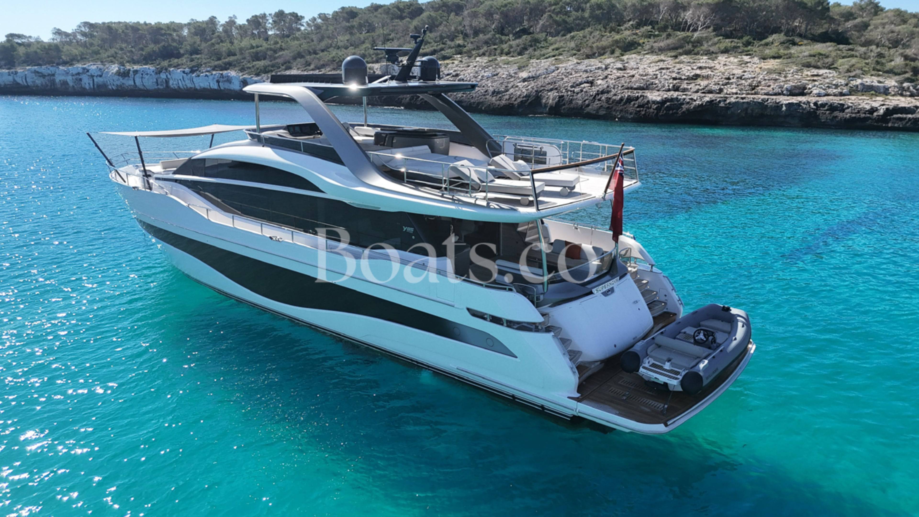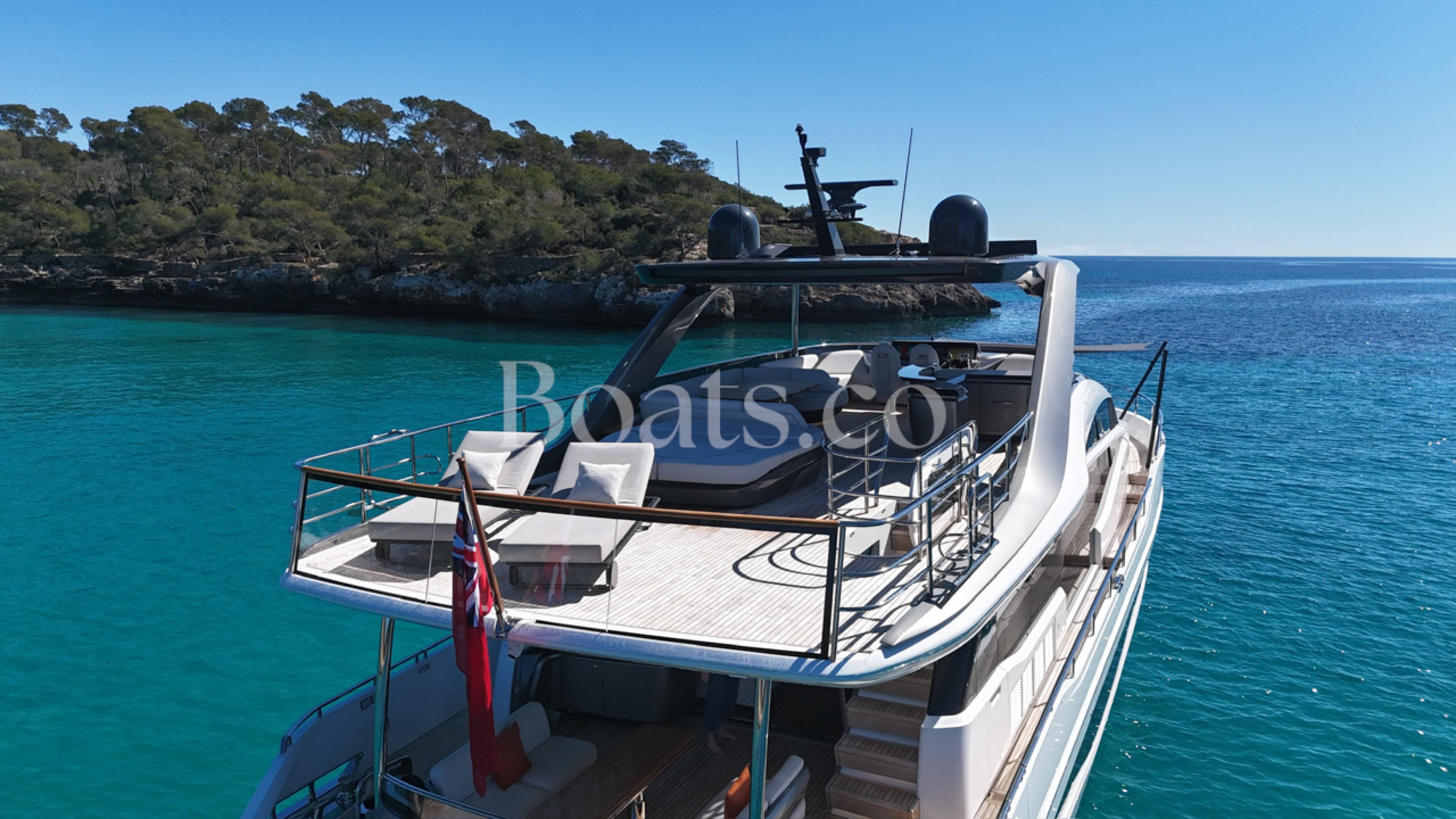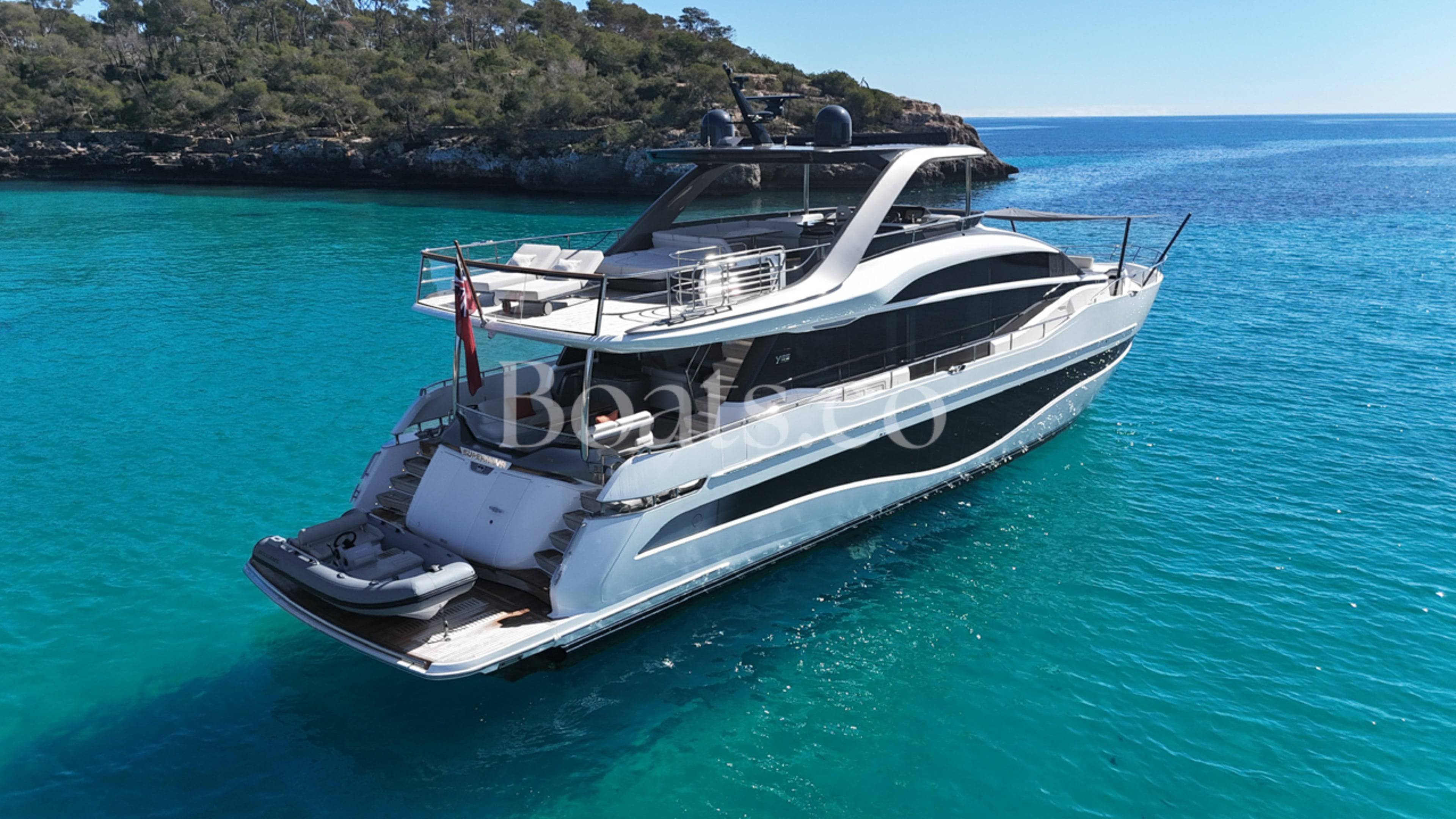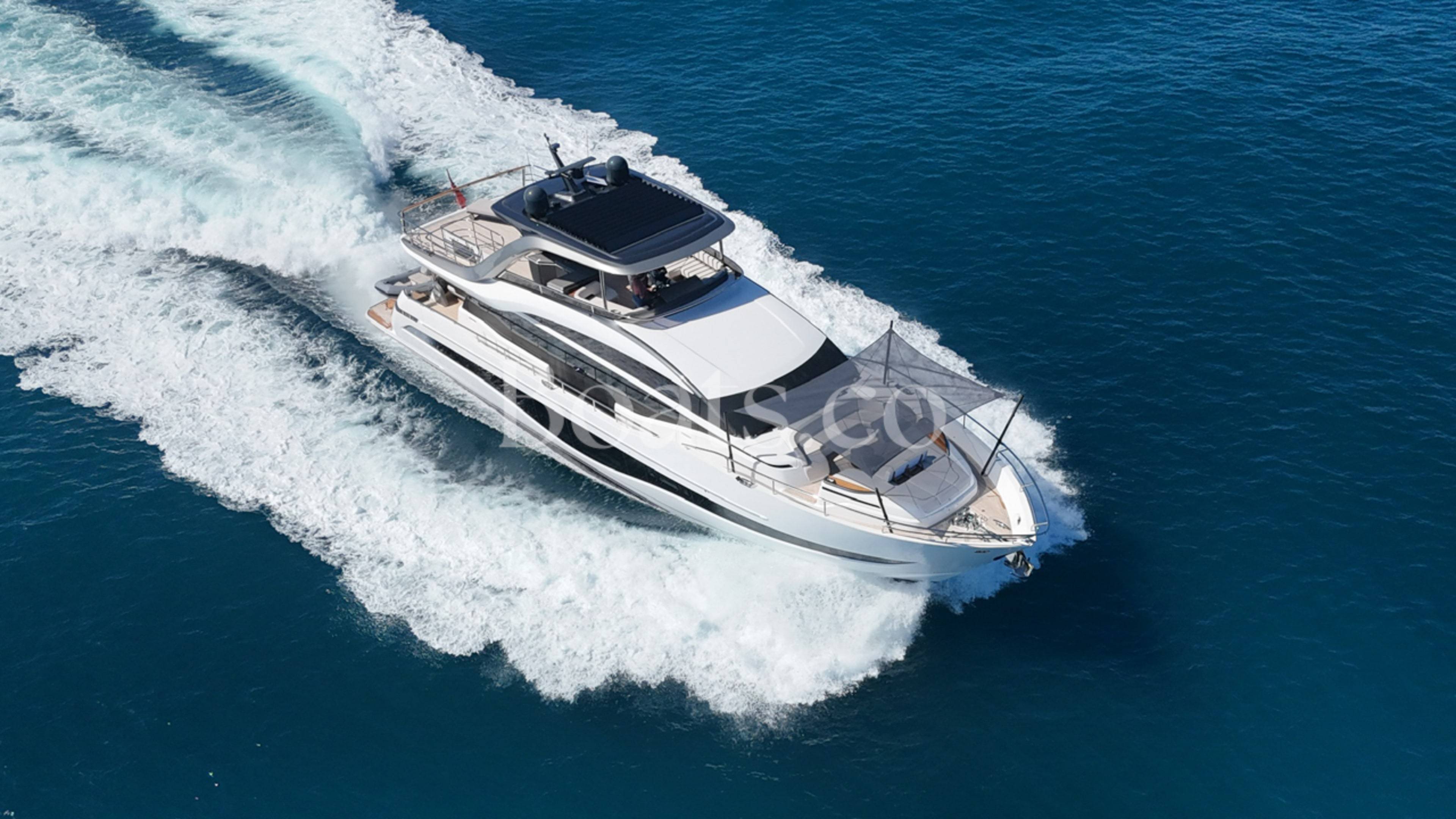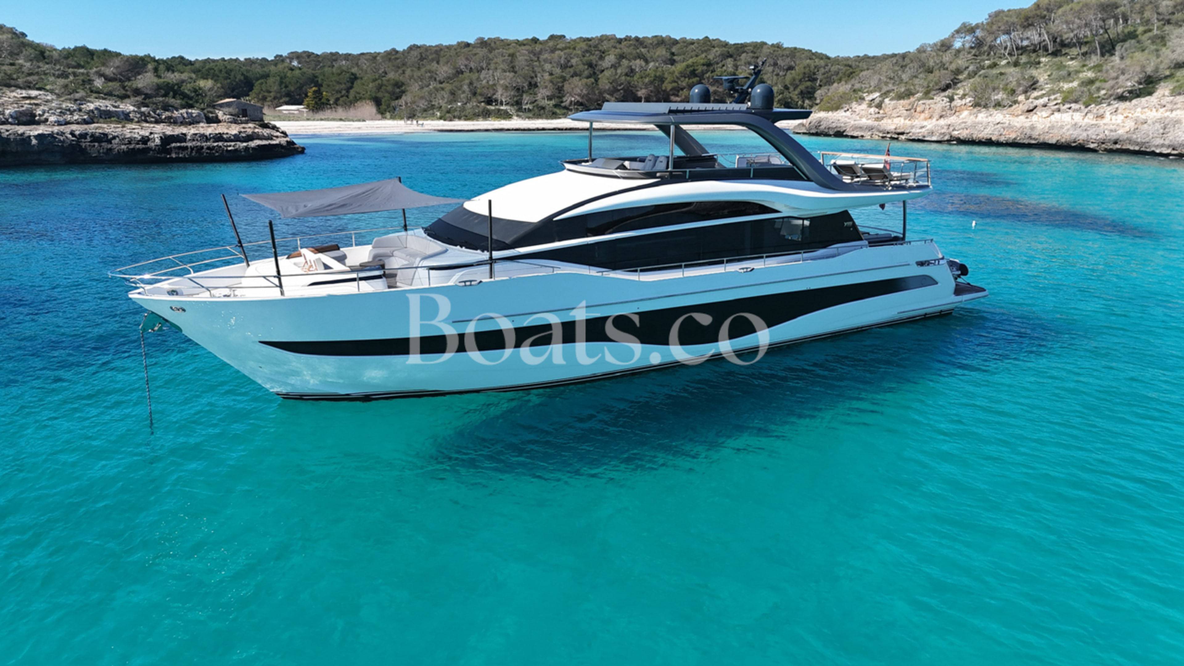A special opportunity to own a like new condition 2024 Princess Y85! She is fitted with twin MAN V12 1900hp engines, currently running with only 180 engine hours. The Y85 is a leader in her class for the obviously gorgeous design with sleek lines, while boasting enormous volume on deck and spacious interior finished to the highest quality fit and finish using the most premium luxury woods and soft furnishings. This specific vessel has an outstanding specification with a wonderful colour pallet interior and every option included. To just highlight some of the long list of extras. THE EXTERIOR: Hydraulic bathing platform, Hydraulic passerelle, Stern docking winches, Third control station, Electric cockpit seating configuration, Hardtop fitted with electric sun awning to aft and tilting louvres to the centre, Wetbar with all amenities and Portuguese bow seating. THE INTERIOR: Finished in satin walnut woods, circular extendable dining table, Electric mid ship access doors, Electric curtains to saloon, Wine cooler, Fully catered chefs kitchen, Upgraded audio and video systems, Starboard twin cabin with electric conversion, electric blinds to all cabins, heated floors and towel rails to all bathrooms. THE EQUIPMENTS: Twin Cummins Onan generators, Fin stabilisation, Watermaker, Bonning monitoring systems and the list is endless... For all the details on this wonderful vessel and to arrange a viewing on this must see Y85. Please contact BoatsCo today. (More pictures coming very soon...)