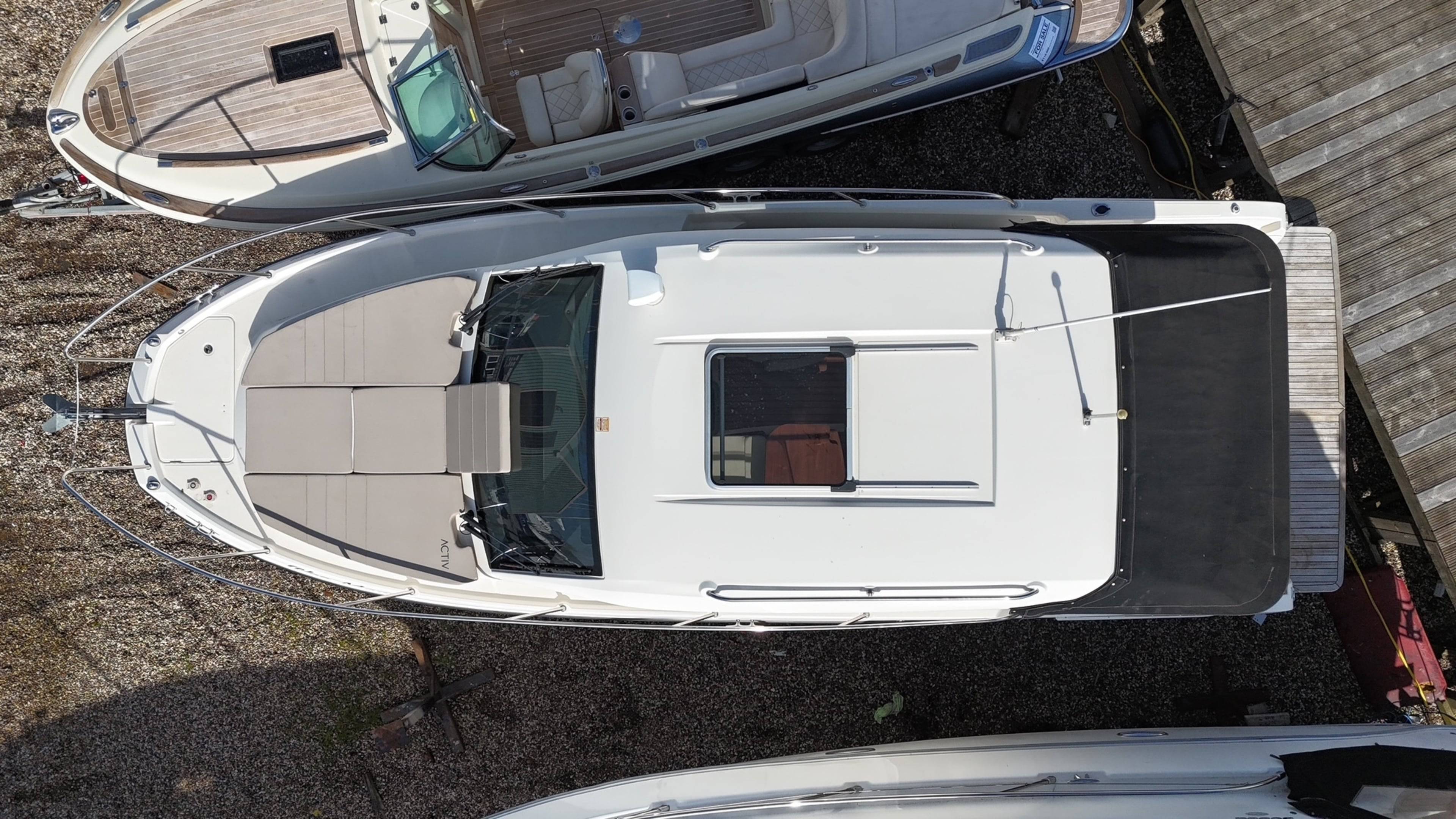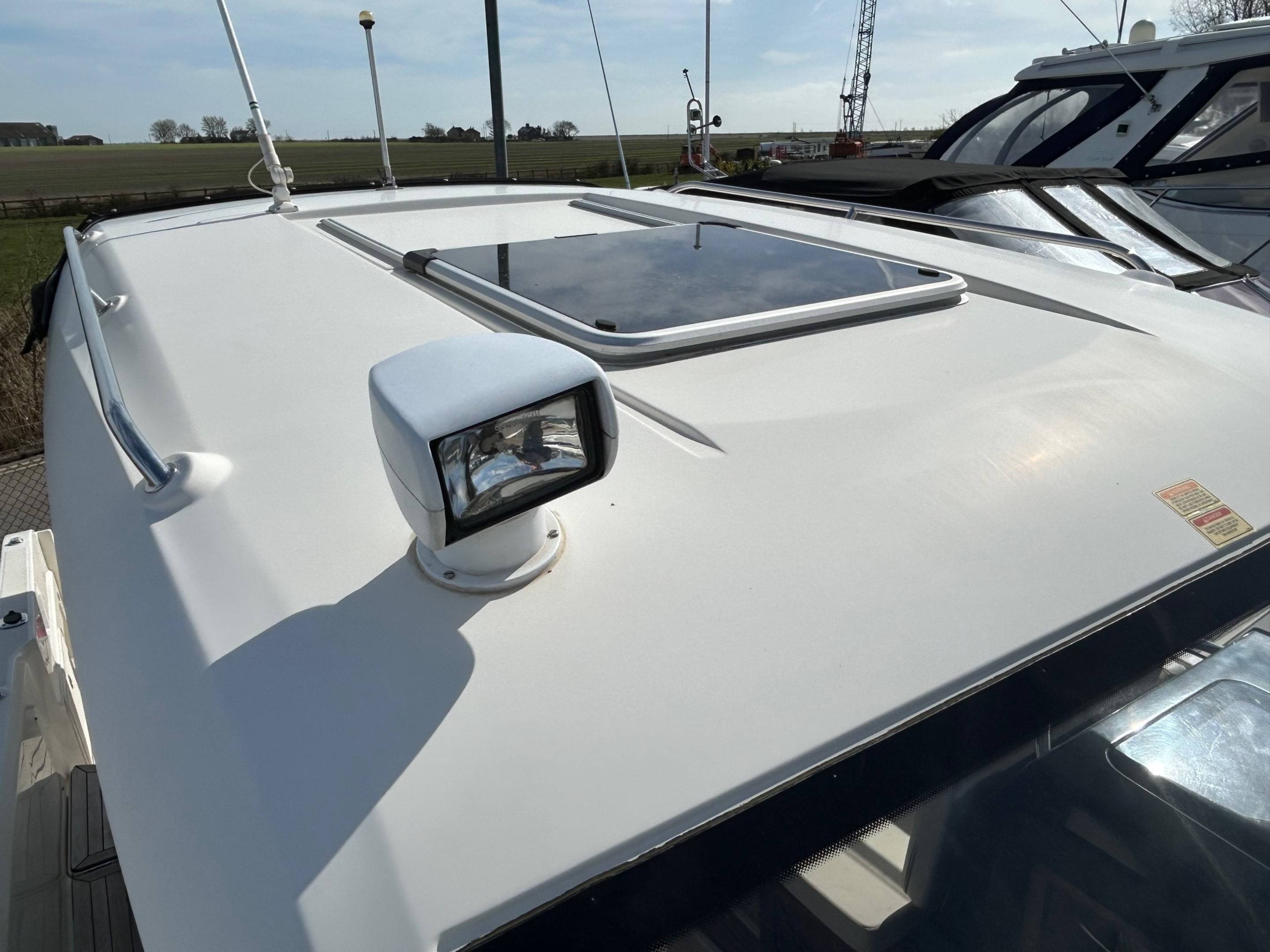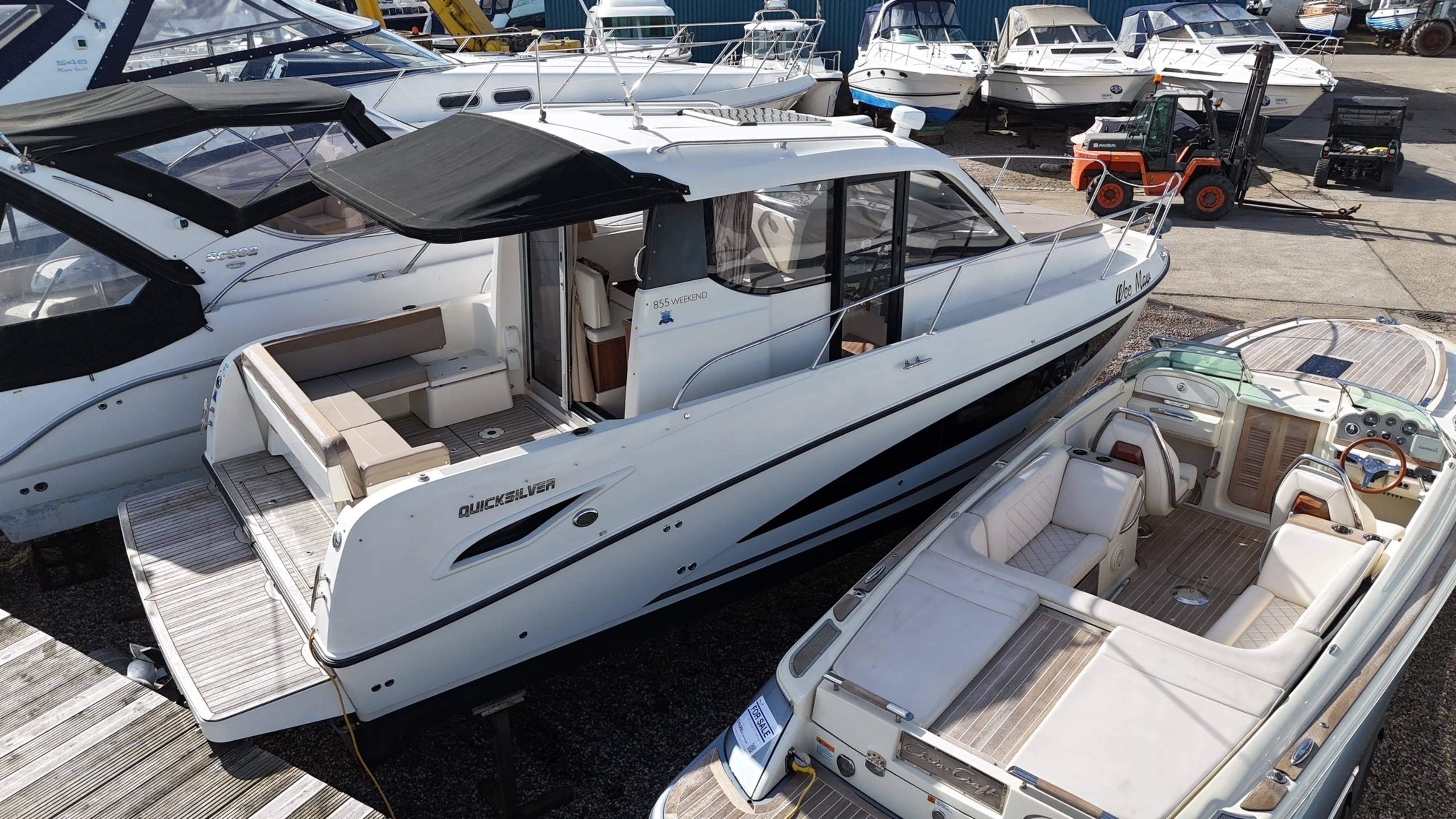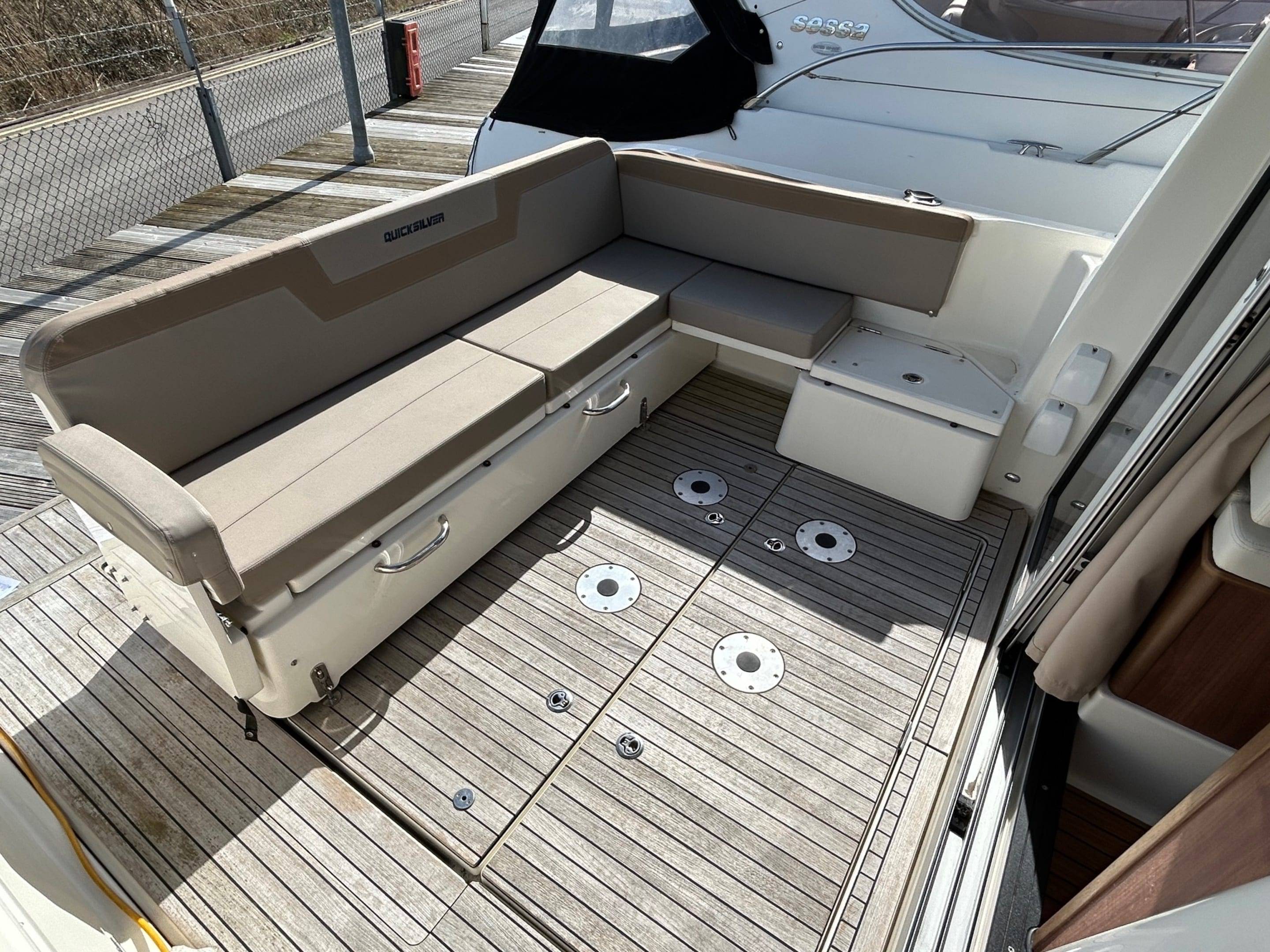 2017 Quicksilver 855 Weekender fitted with a Mercruiser 3.0L V6 TDI Diesel – approx 200 hours. Options to include Diesel heating // Bow Thruster // Simrad GPS/Sonar // VHF // Trim tabs // Shore power // Battery charger // Hot water // 4 Berths // Curtains // Sun pad cushions // Sliding side door to helm // Teak platform, cockpit & side deck // Dual batteries // TV to forward cabin & Galley // Bimini // Cockpit cushions // Cockpit table making this an ideal family weekender. For more information on this well presented boat please contact Boats.co.uk on 01702 258885 or email us at sales@boats.co.uk